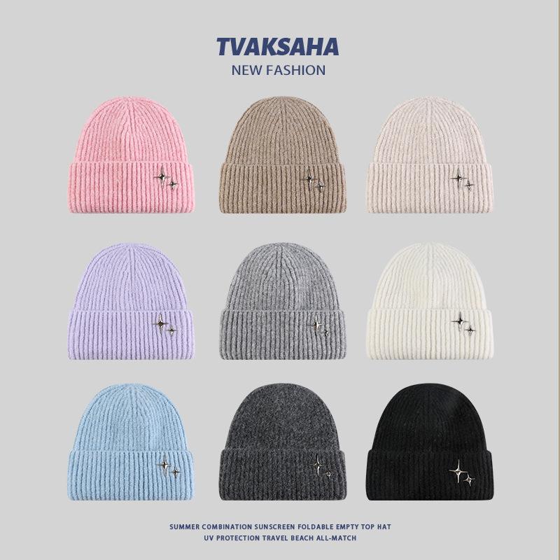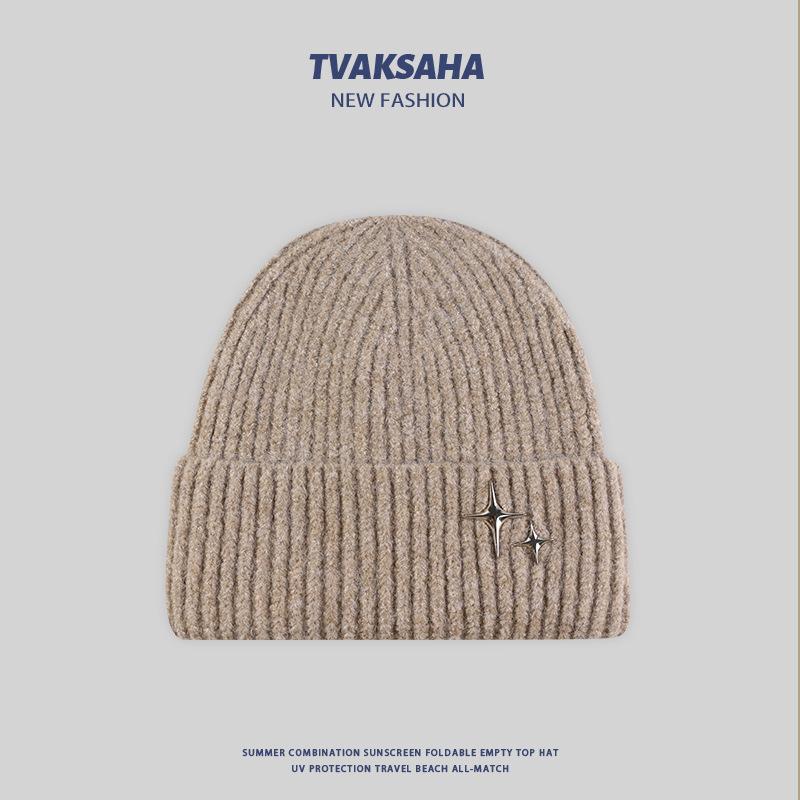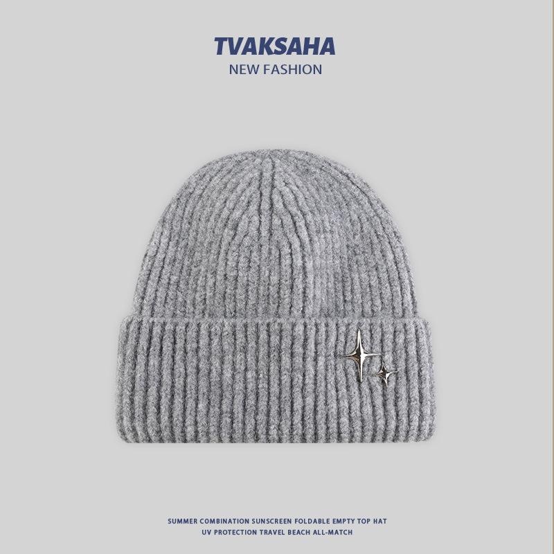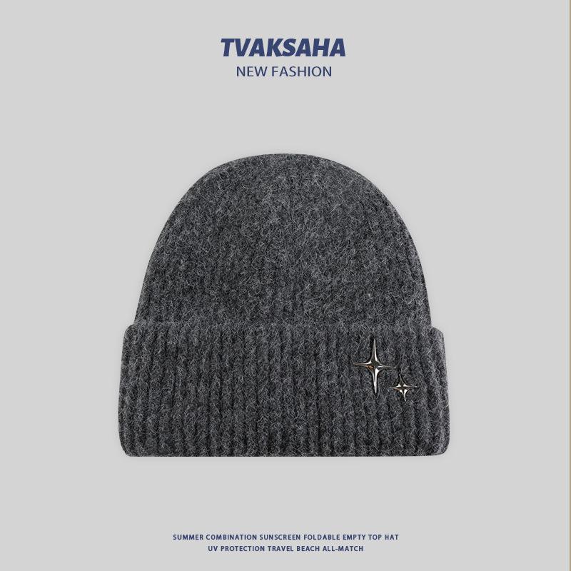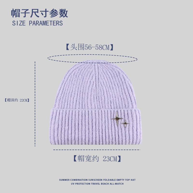 Gorro de lana para otoño e invierno para mujer, cálido, combinable con todo, con protección para las orejas, para mostrar el rostro, pequeño, de cabeza grande, a prueba de viento, de punto con forma de estrella para mujer.