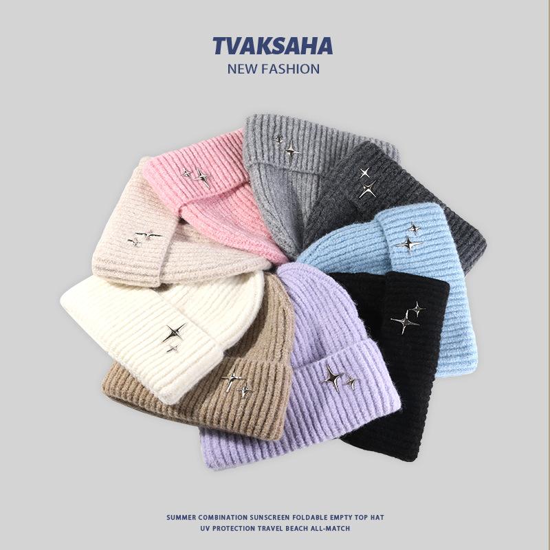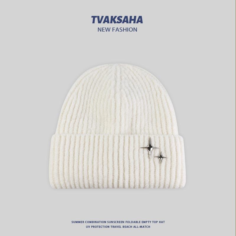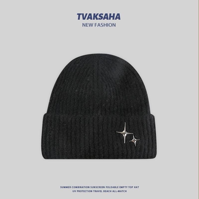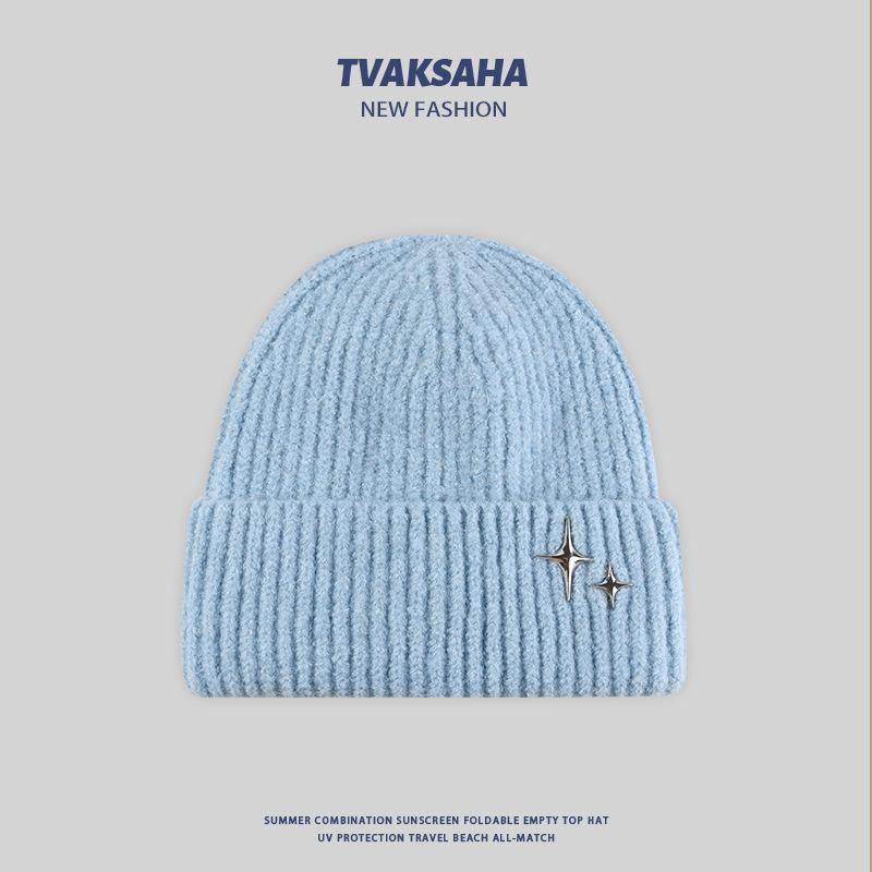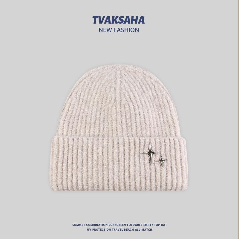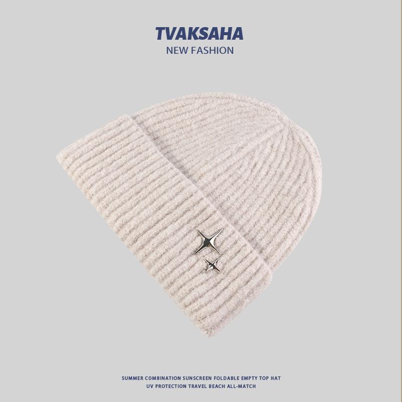 Gorro de lana para otoño e invierno para mujer, cálido, combinable con todo, con protección para las orejas, para mostrar el rostro, pequeño, de cabeza grande, a prueba de viento, de punto con forma de estrella para mujer.