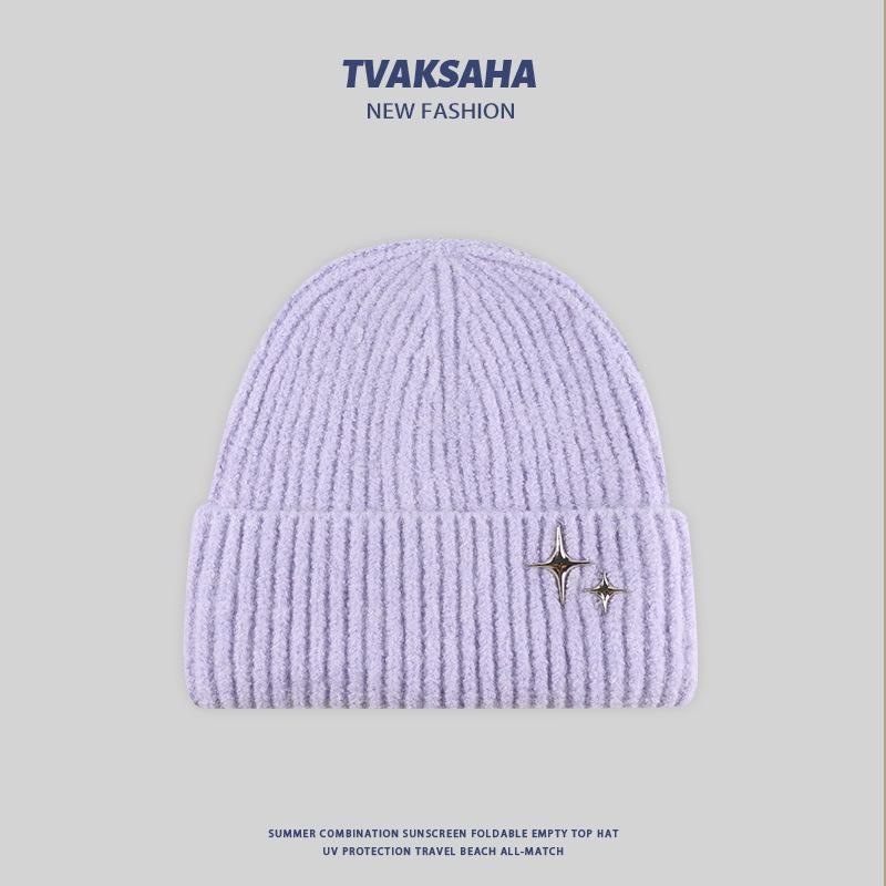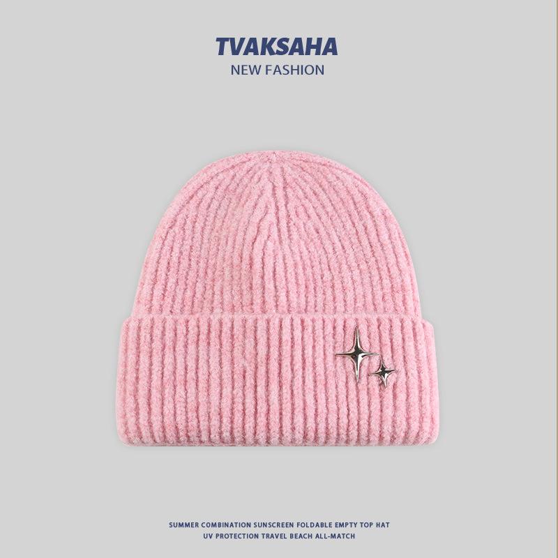 C4179 size double star slightly velvet knitted hat DIY pink, C4179 size double star slightly velvet knitted ha...