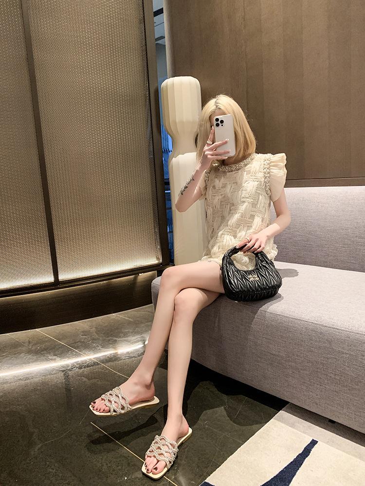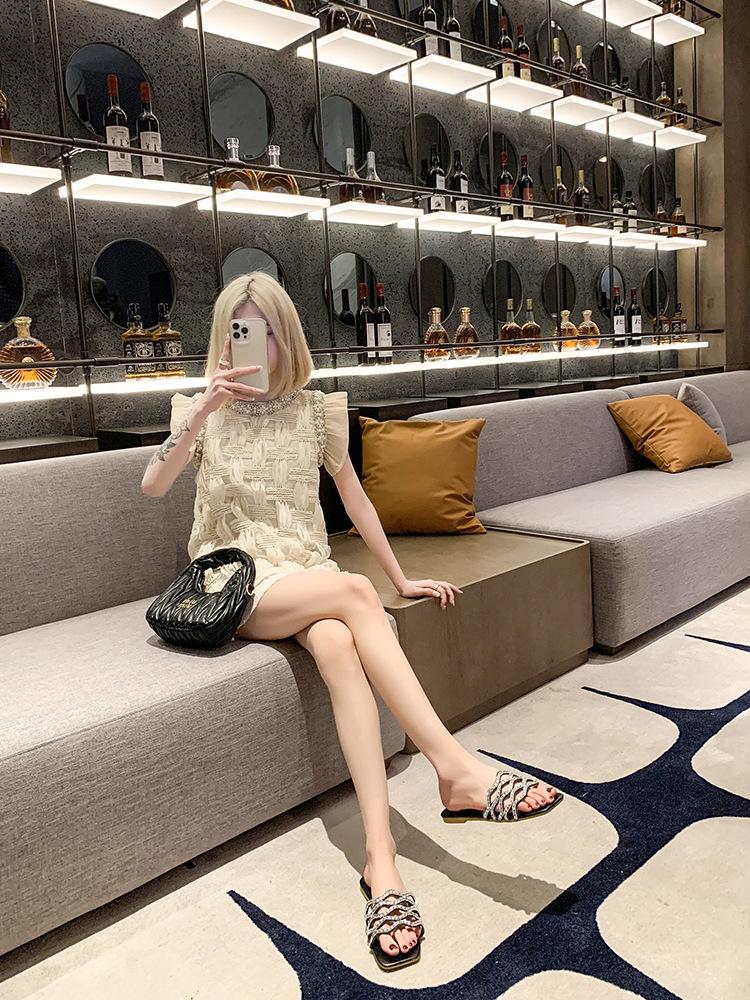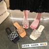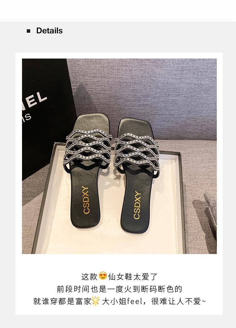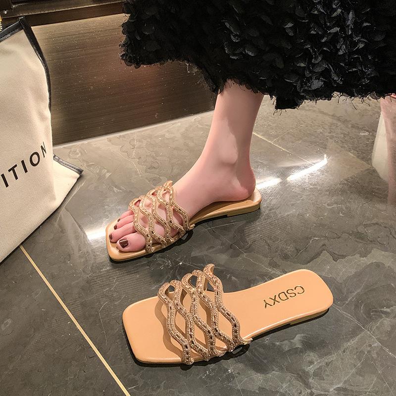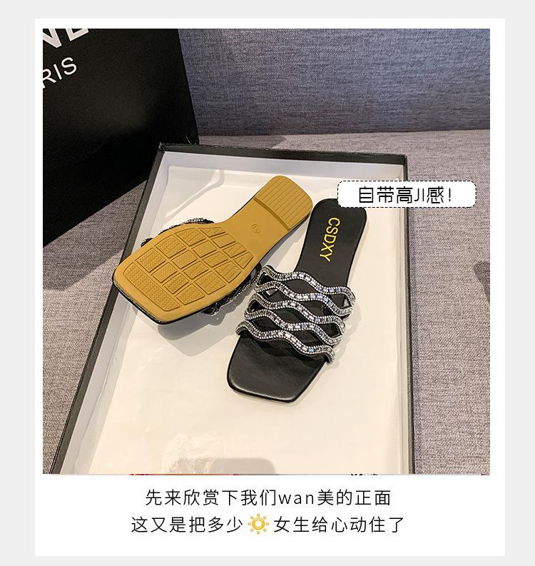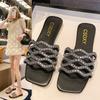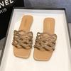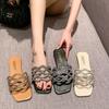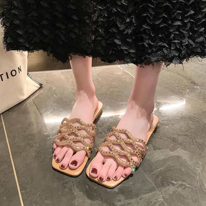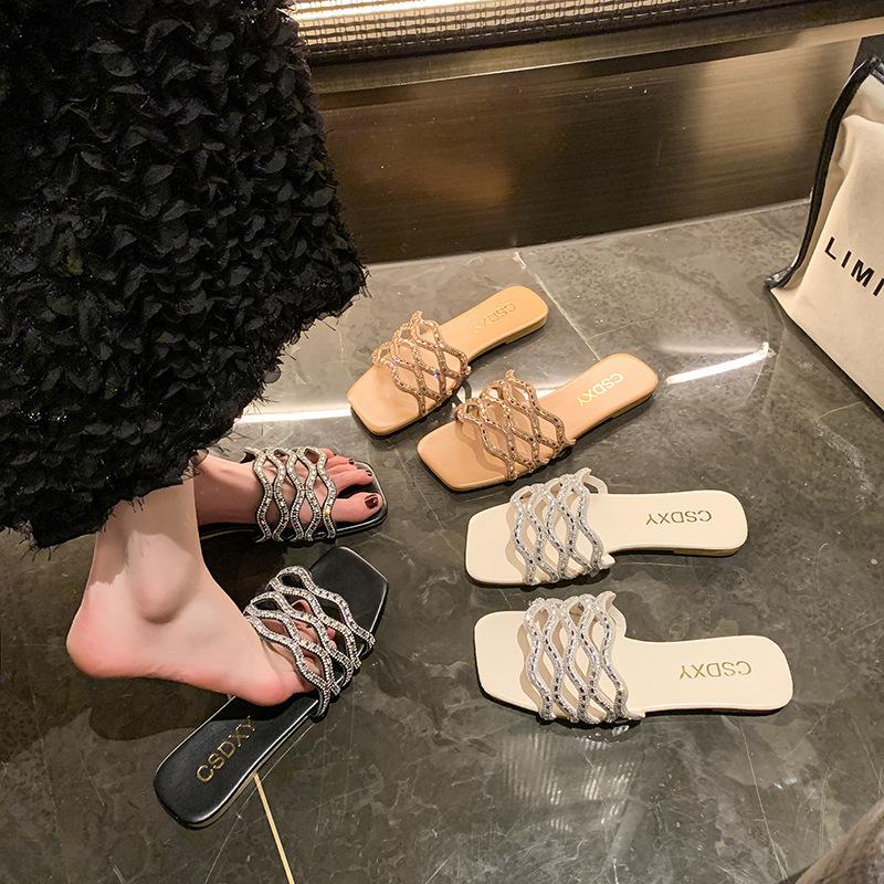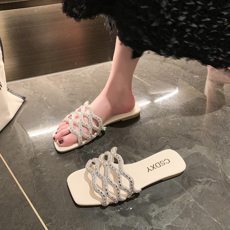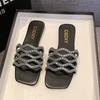 Zapatillas de malla con estampado ondulado de diamantes de imitación de gran tamaño para primavera y verano 2024, zapatillas de playa al aire libre que combinan con todo.