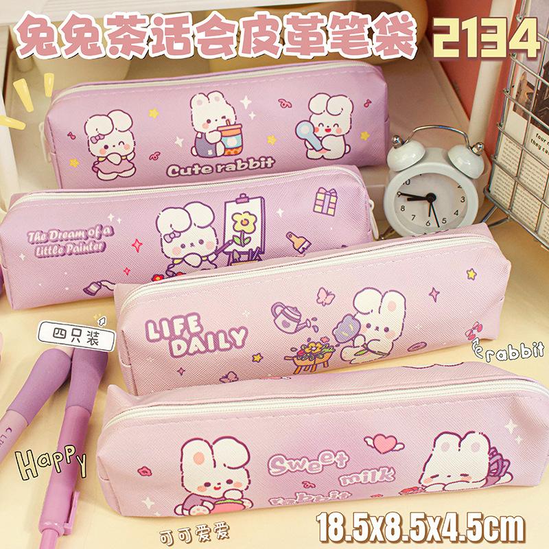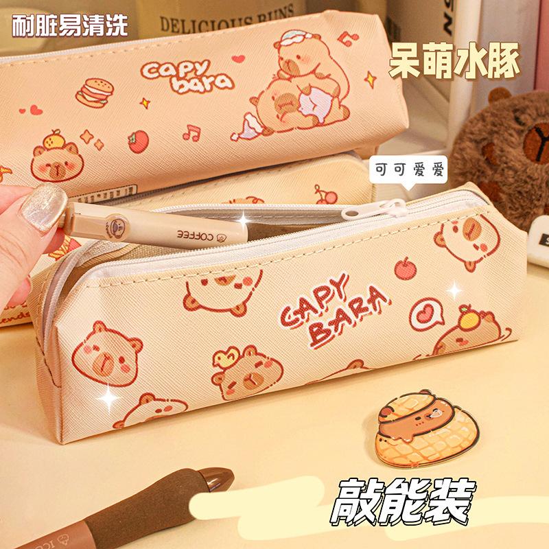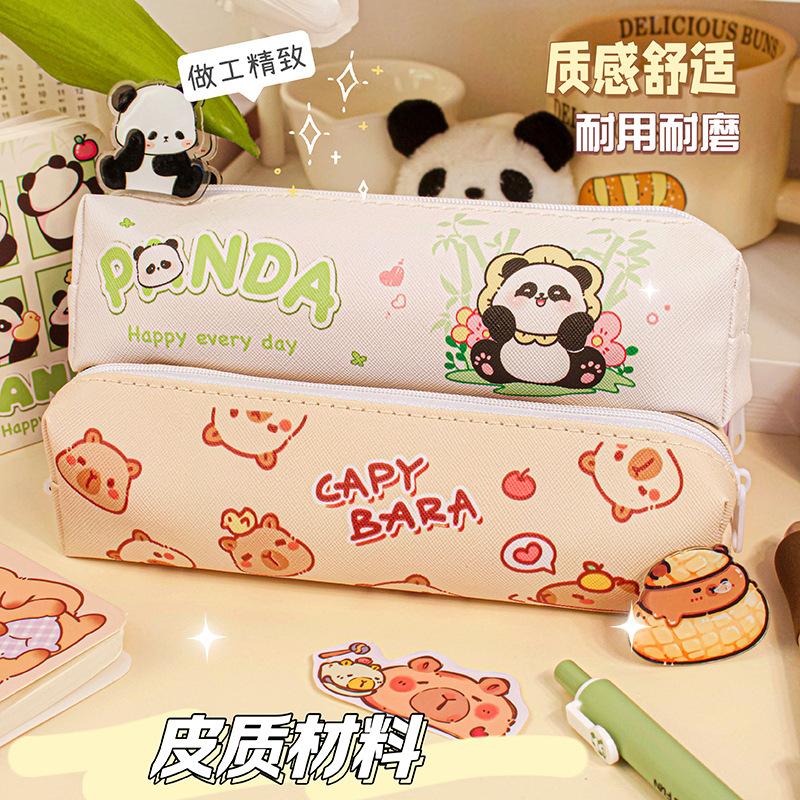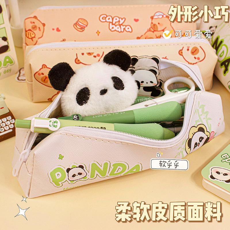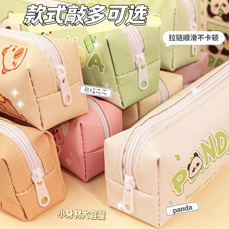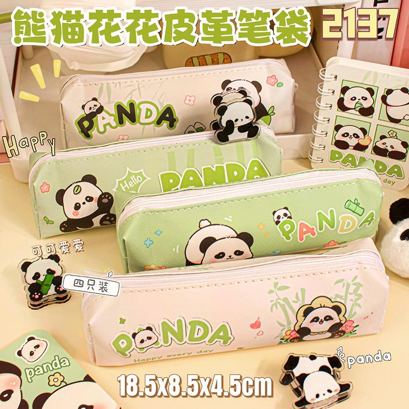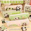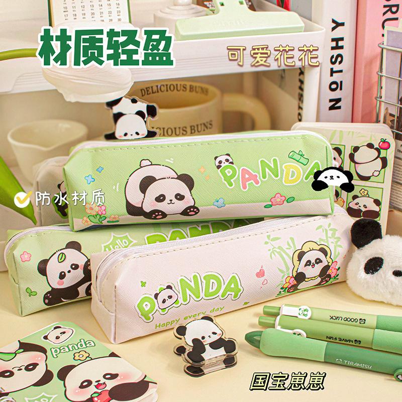 Estuche para lápices con diseño de panda y flores, papelería para estudiantes de primaria y secundaria, gran capacidad, bonito estuche impermeable de poliuretano, caja de papelería