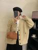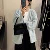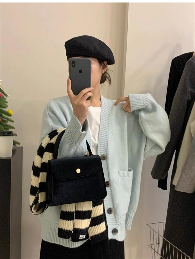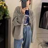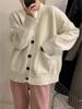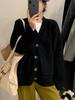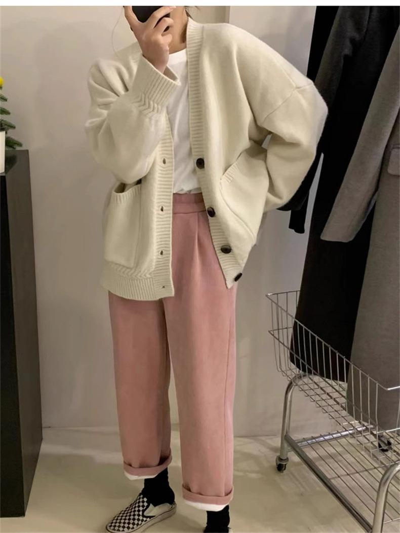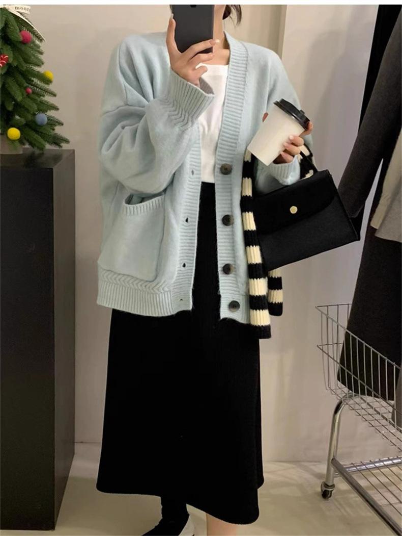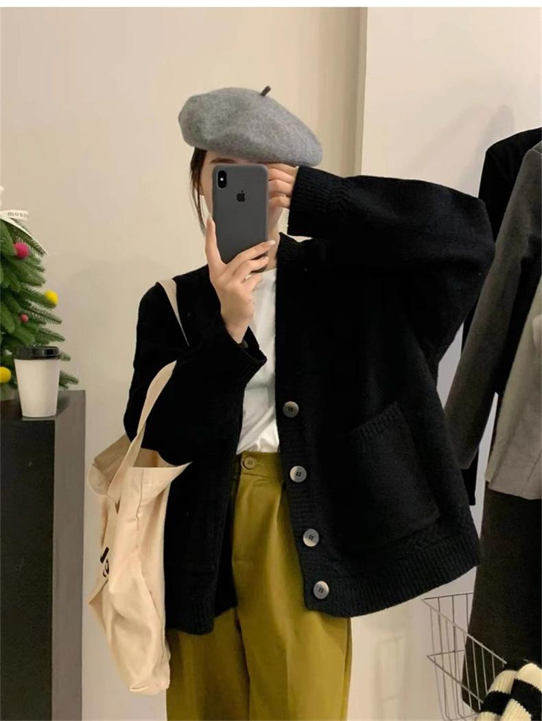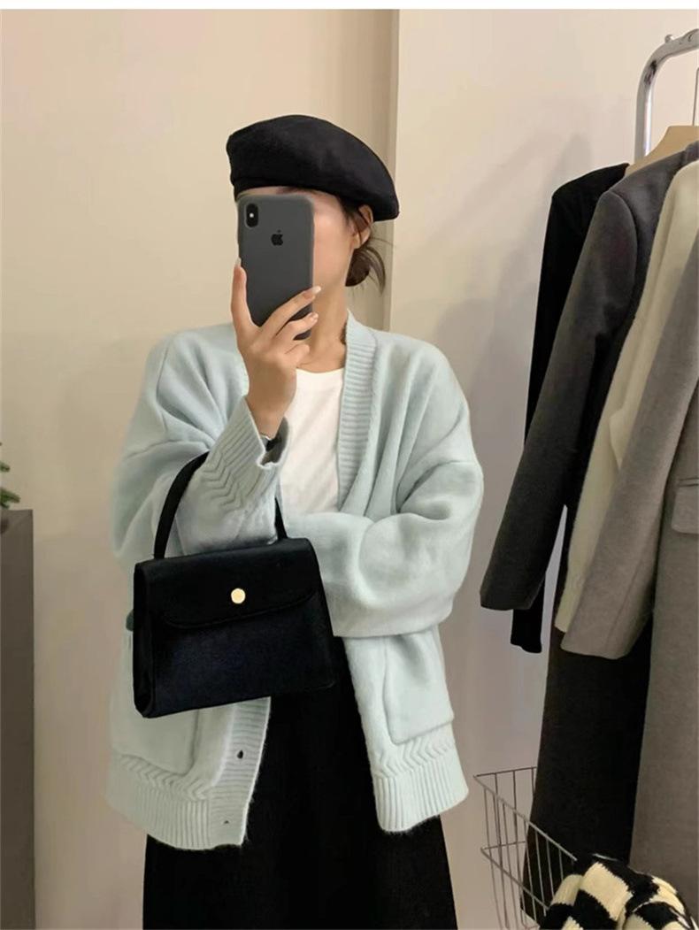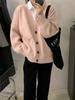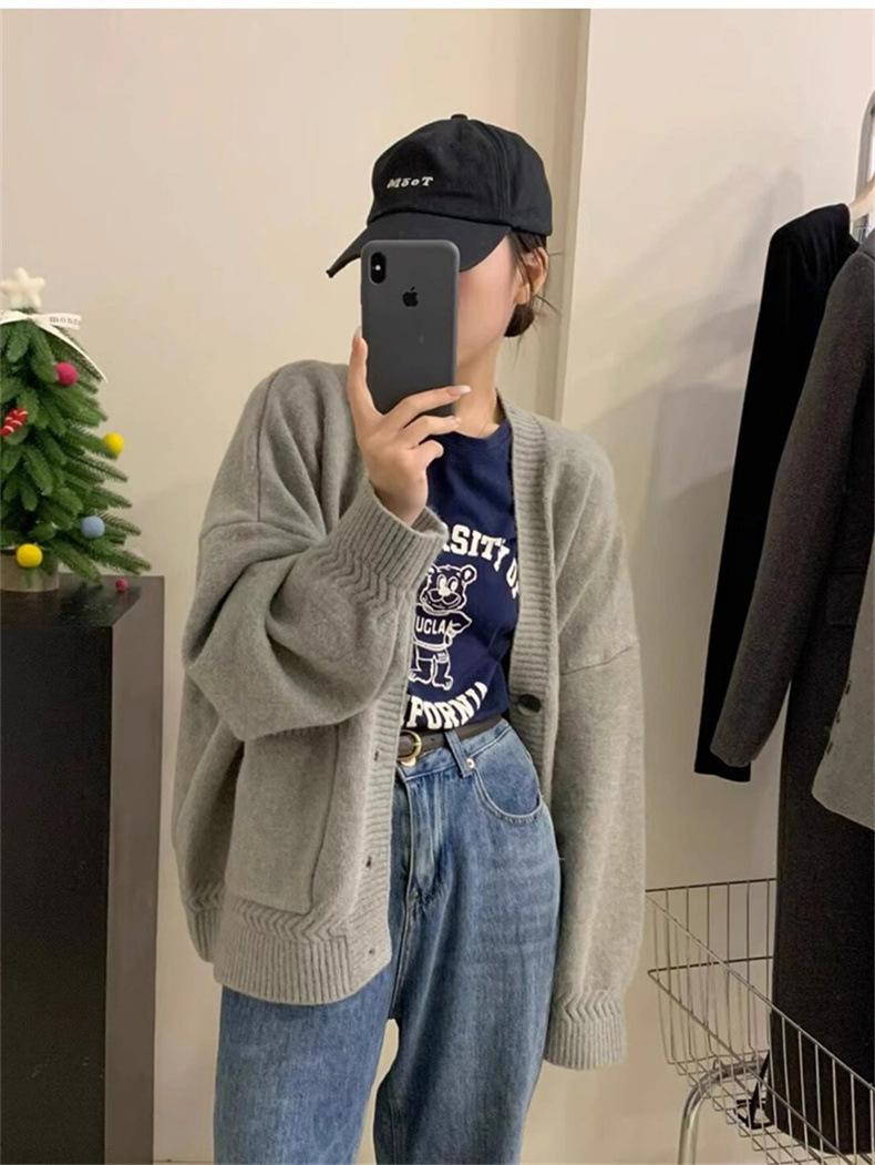 Otoño e Invierno Nuevo Suéter Holgado Perezoso Suave Ceroso Abrigo para Mujer Estilo Gentil Color Sólido Cuello en V Cárdigan de Punto para Mujer