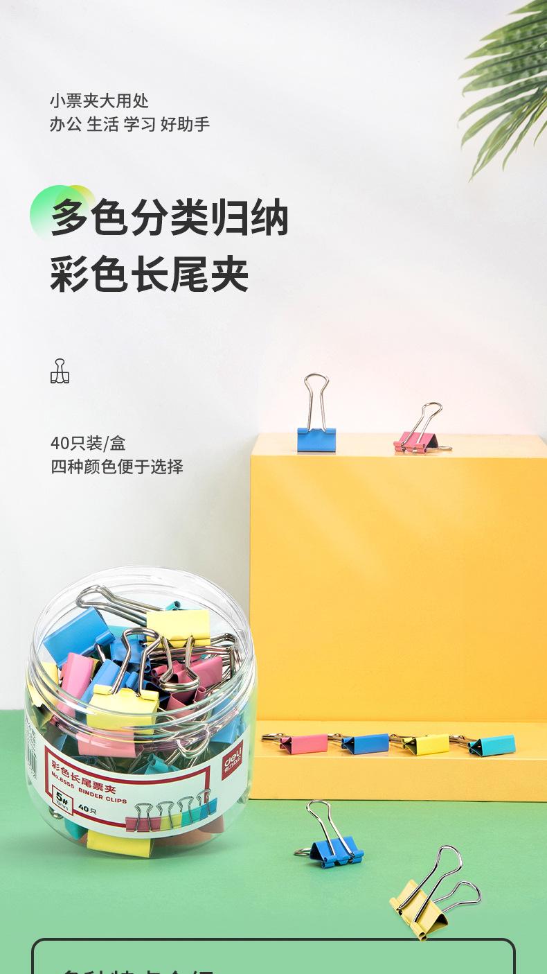 Clip de cola larga Deli, clip para billetes, clip para archivos, papelería, clip para billetes de metal de color, clip de cola de milano, clip grande para oficina