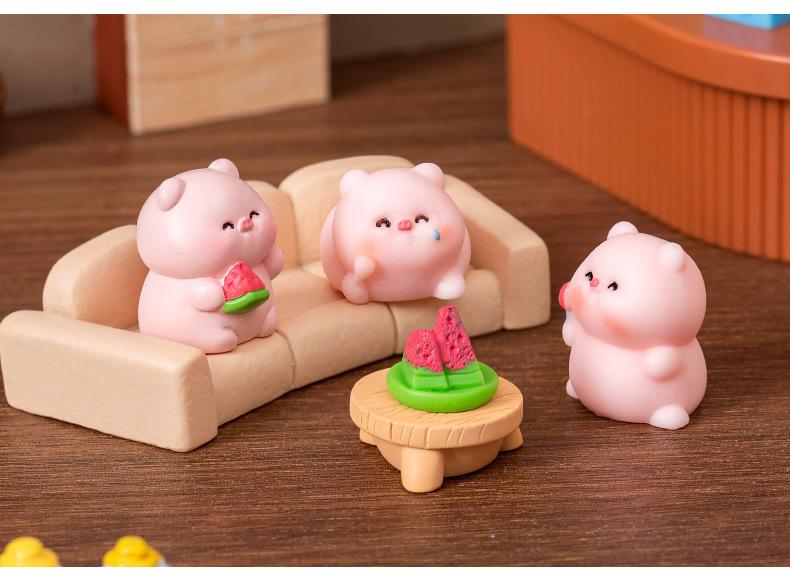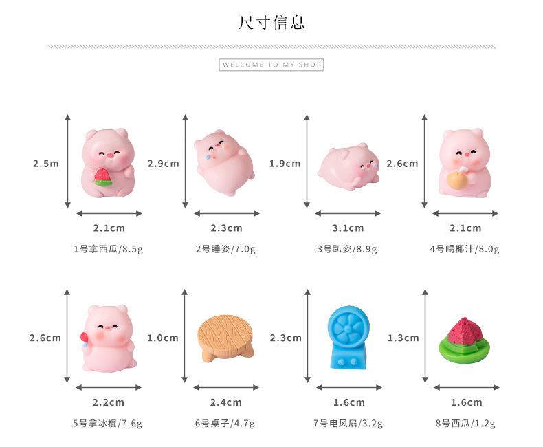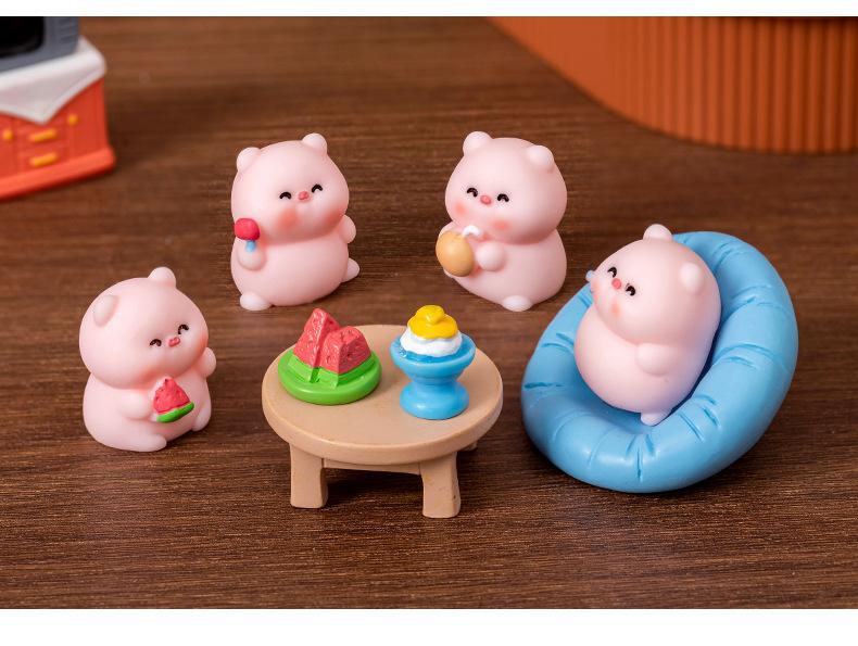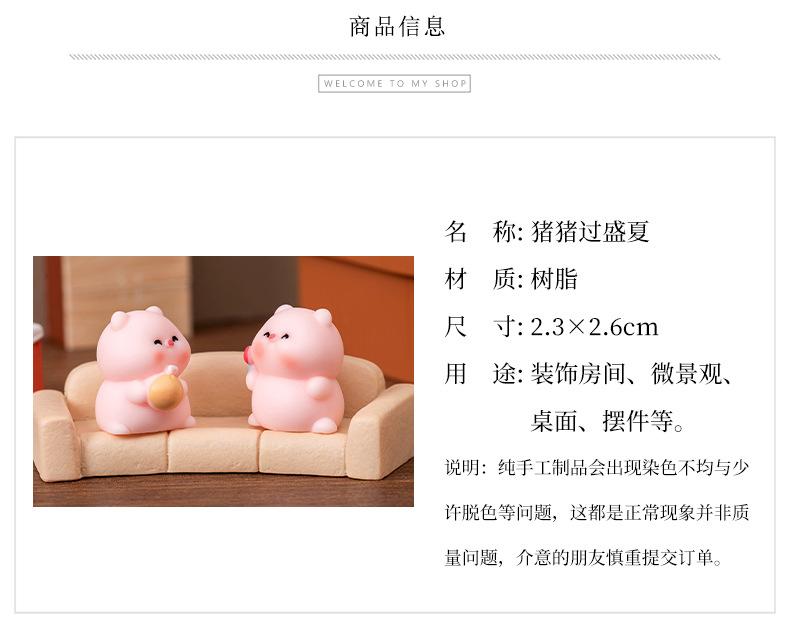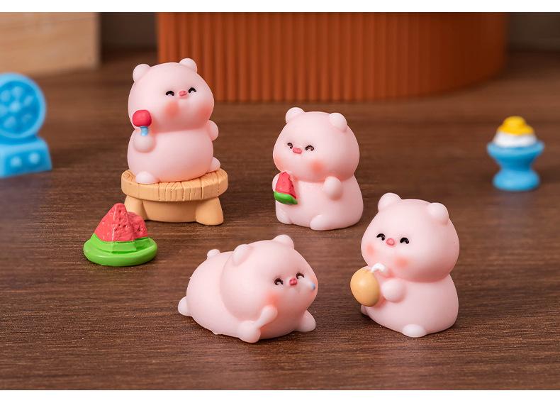 Adornos de micropaisaje creativos y lindos de verano con forma de cerdo, muñecos de animales, accesorios de bricolaje, adornos de escritorio para coche.
