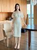 Vestido de Banquete Falda Larga 2026 Verano Nuevo Estilo para Mujer Elegante Estilo Socialité Mangas Abullonadas Cintura Ceñida Vestido 21312