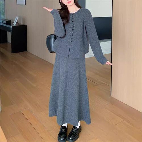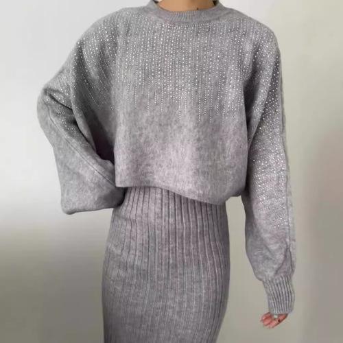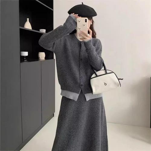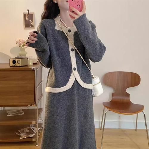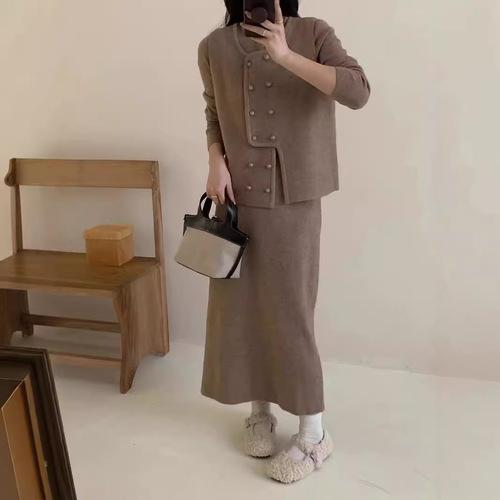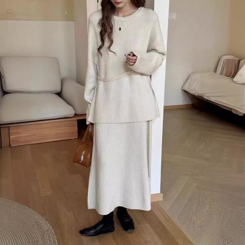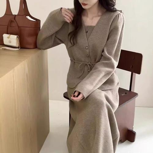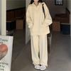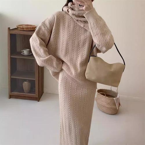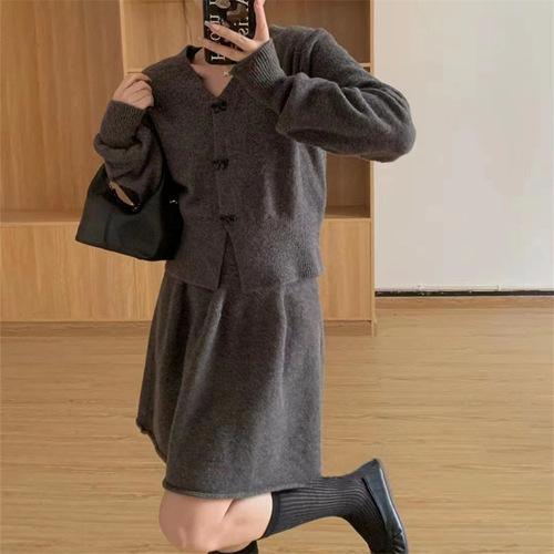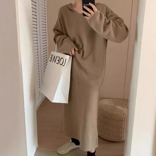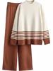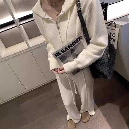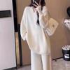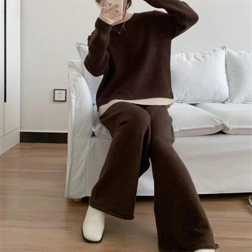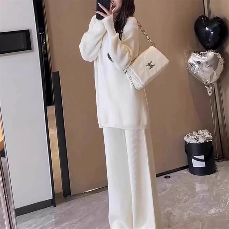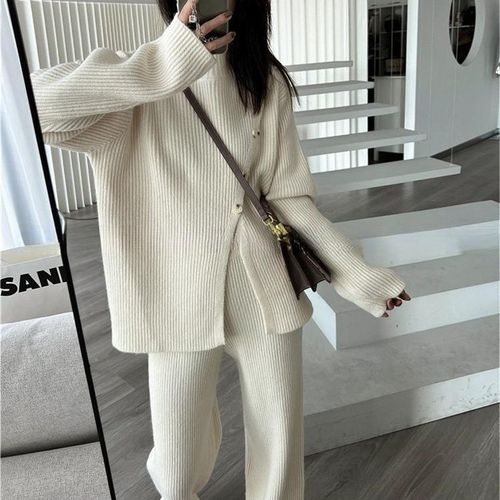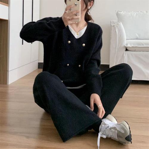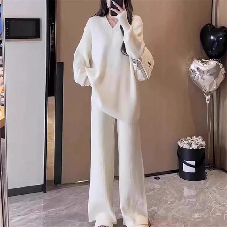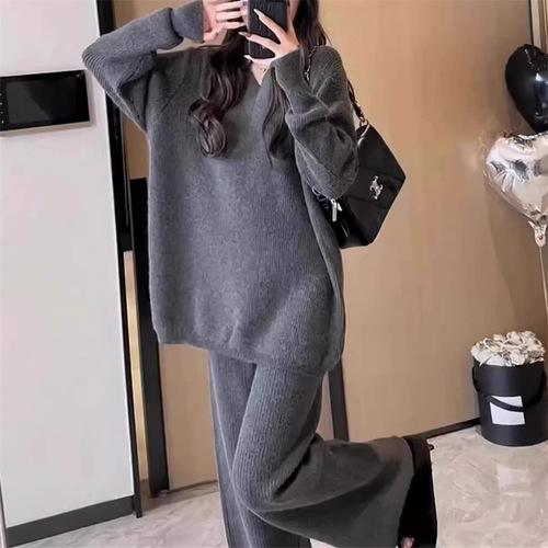 Suéter de punto con cuello en V estilo perezoso para mujer, conjunto de dos piezas de moda informal, pantalones anchos y rectos sueltos para otoño e invierno 2024