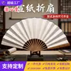 Abanico Plegable en Blanco con Superficie de Papel de Arroz para Pintar, Abanico Plegable Tradicional de Bambú y Papel, Abanico Publicitario DIY Personalización