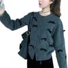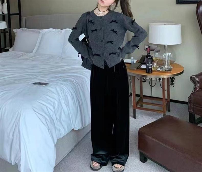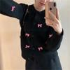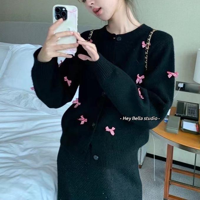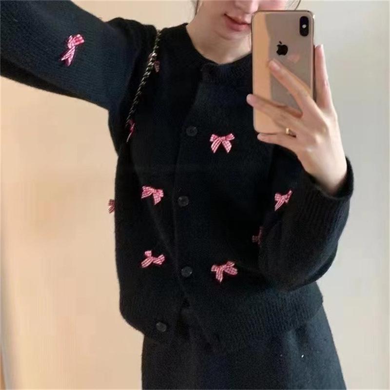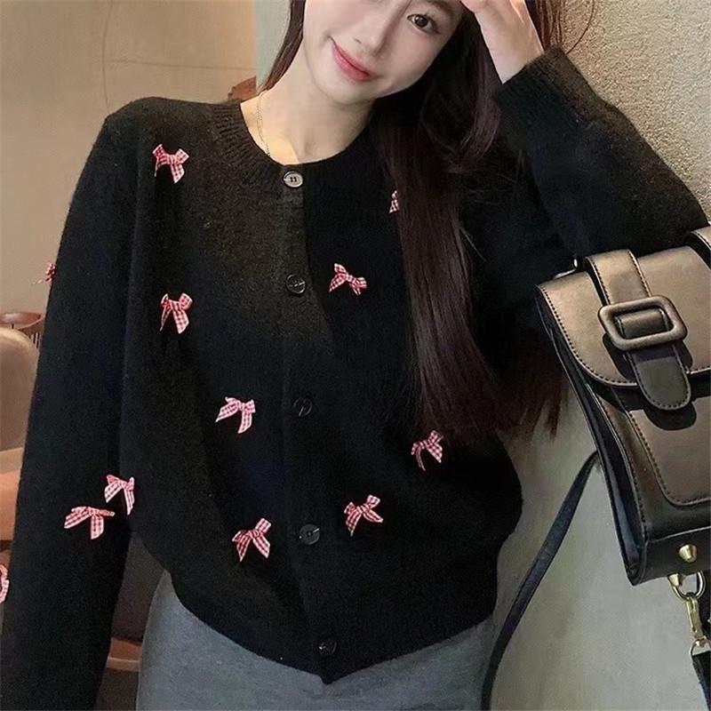 Abrigo Suéter de Punto Elegante de Nicho Estilo Coreano con Lazo de Cuello Redondo para Mujer Primavera y Otoño Nuevo Suelto Combinable Dulce Cárdigan de Punto