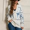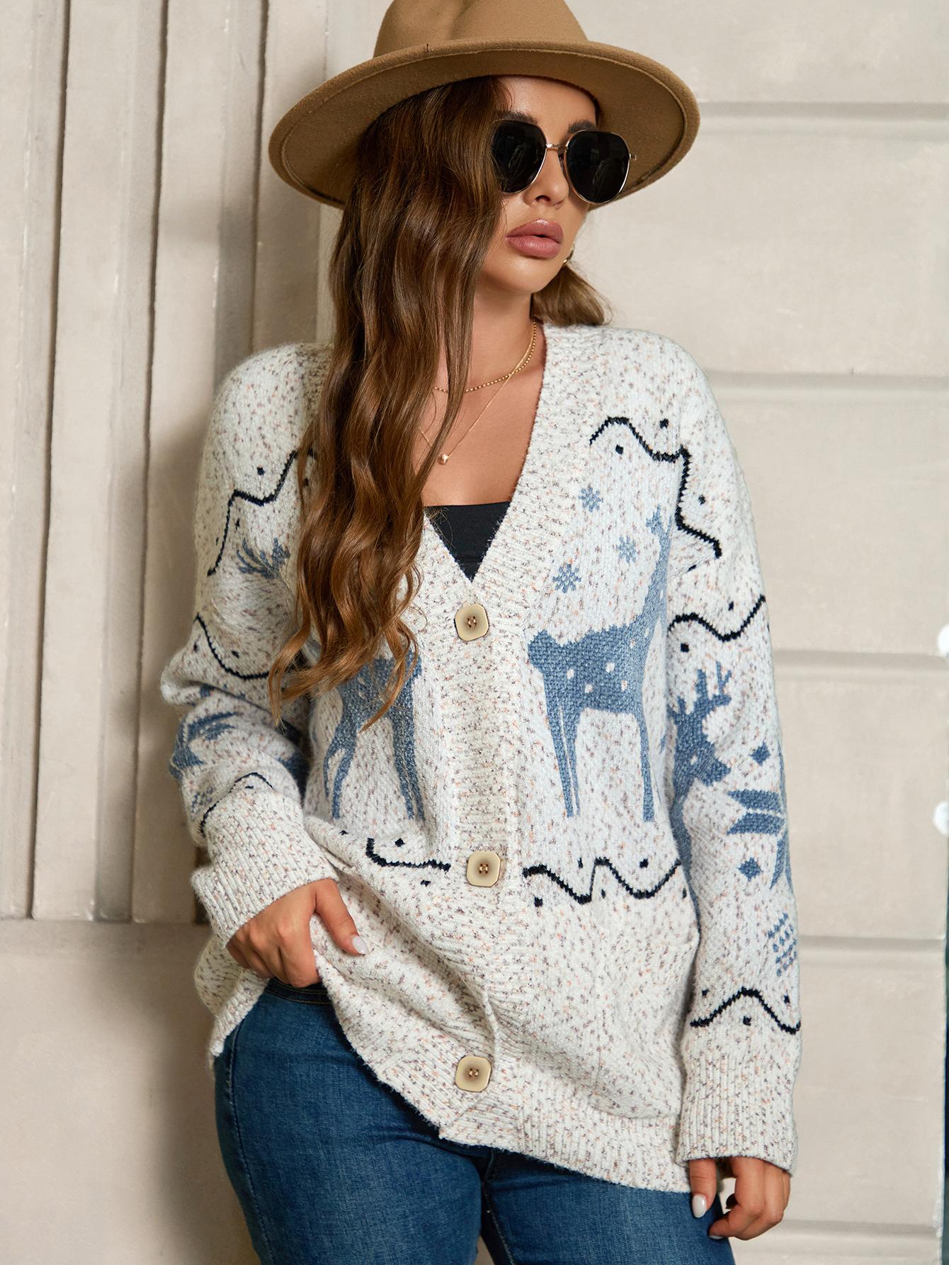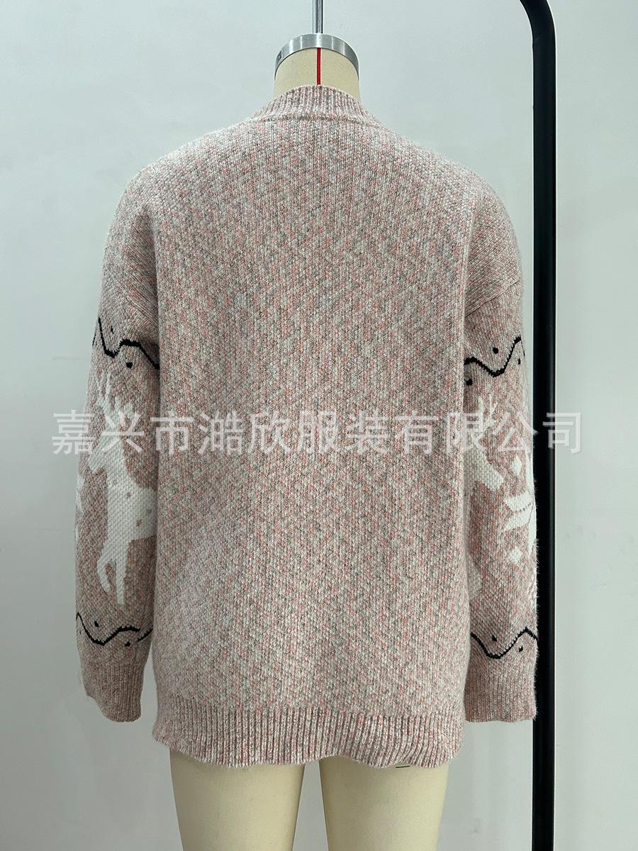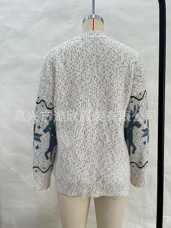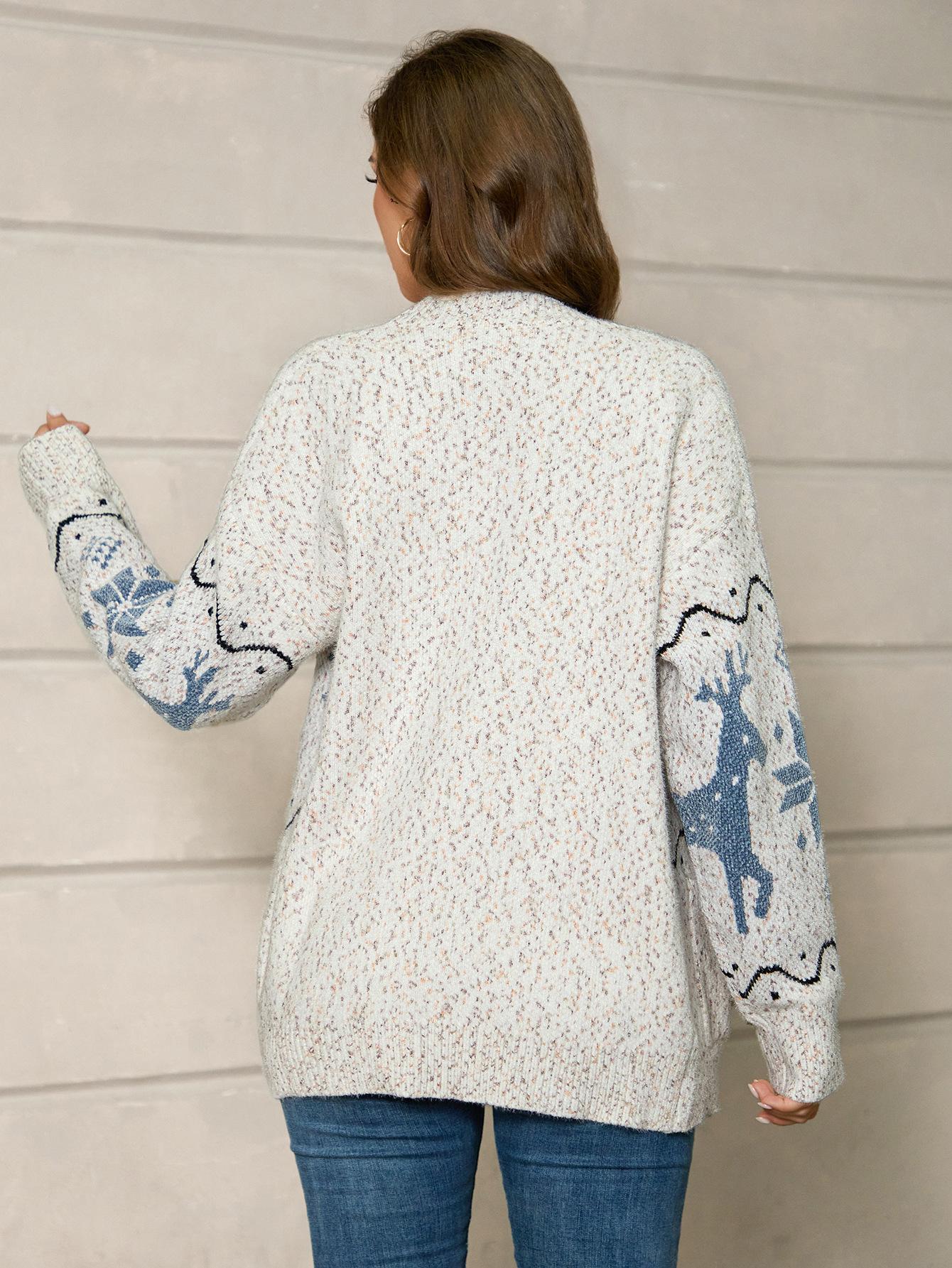 Cárdigan de Chenilla de Primavera y Otoño Comercio Exterior Transfronterizo Suéter de Mujer Jacquard de Alce Casual Chaqueta de Punto con Bolsillo de Solapa Pantalones para Mujer