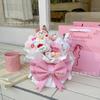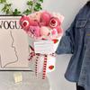 Wo078-2 heads strawberry bear bouquet + gift bag greeting card light string, Wo078-smiley strawberry bear bouq...