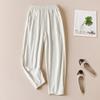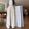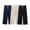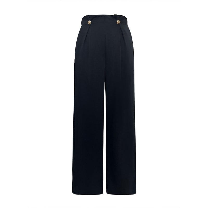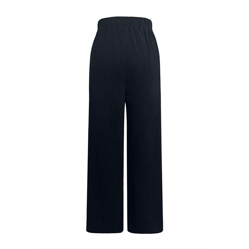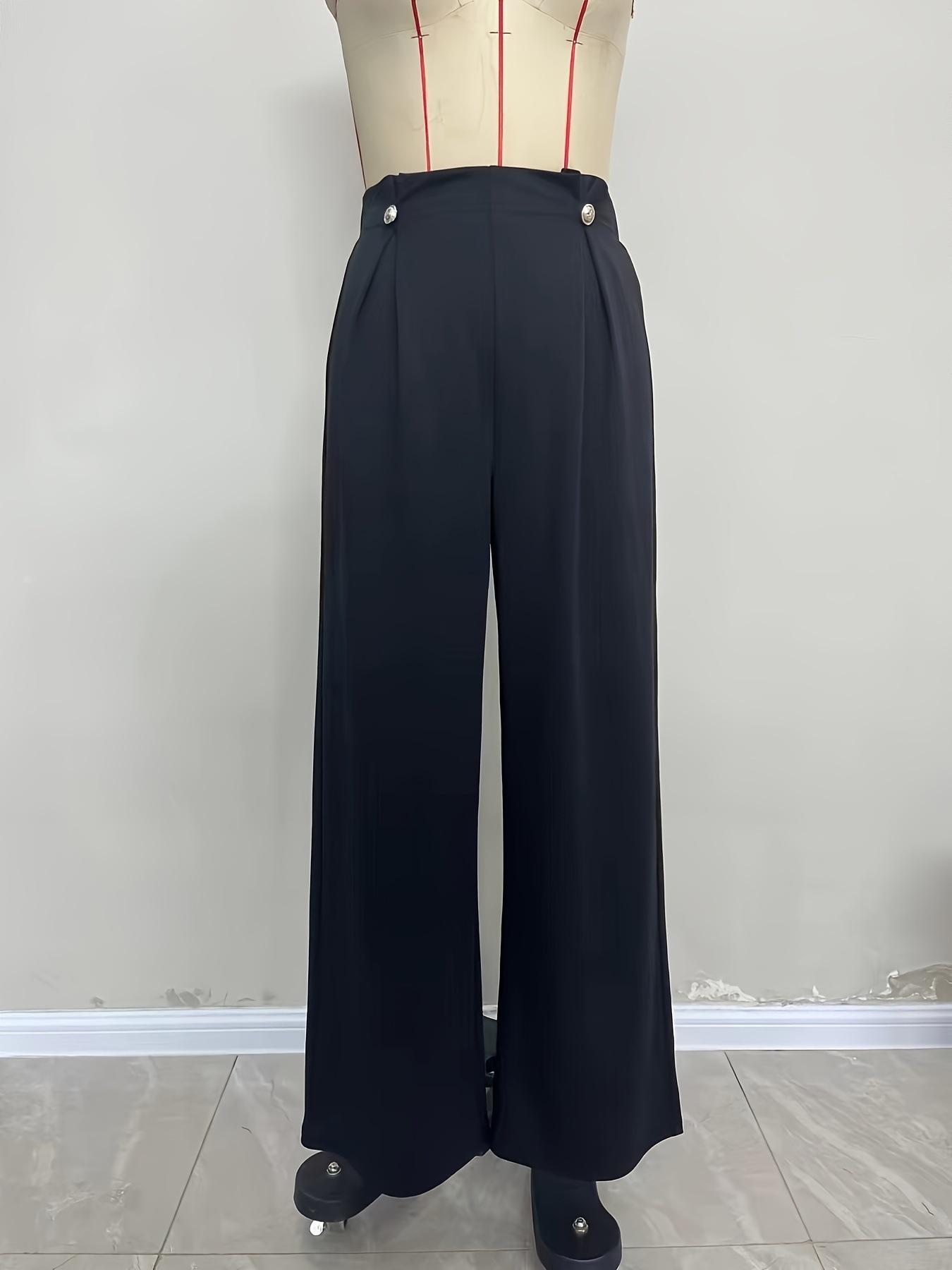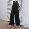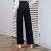 2024 Nuevo Elegante Color Sólido Botón Tejido Elástico Pantalones Pierna Ancha Moda Combinable Pantalones de Mujer Pantalones Rectos Ropa de Mujer