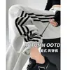 Pantalones deportivos microacampanados a rayas blancas y negras americanas para mujer en primavera y otoño, tiro alto, look adelgazante, estilo holgado, pantalones de pierna ancha, pantalones deportivos casuales