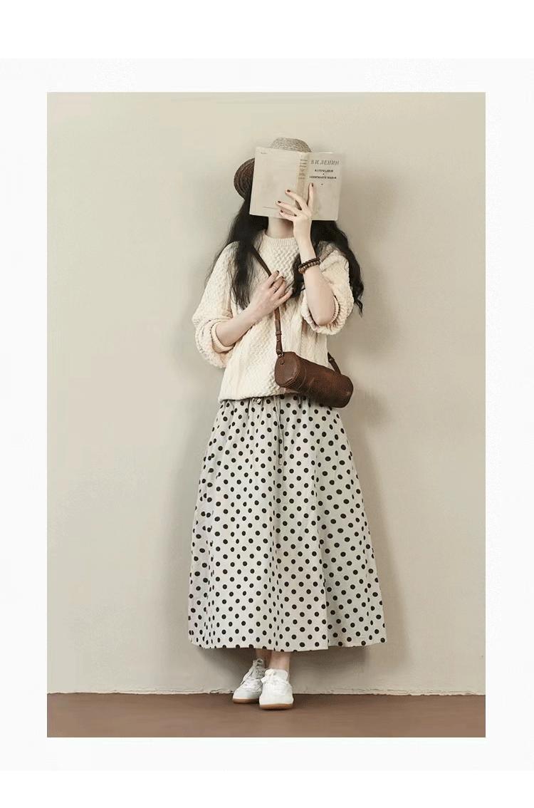 2024 Verano Nuevo Artístico Casual Suelto Falda Paraguas Grande Falda A Lunares Ondulada