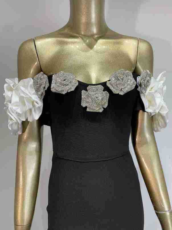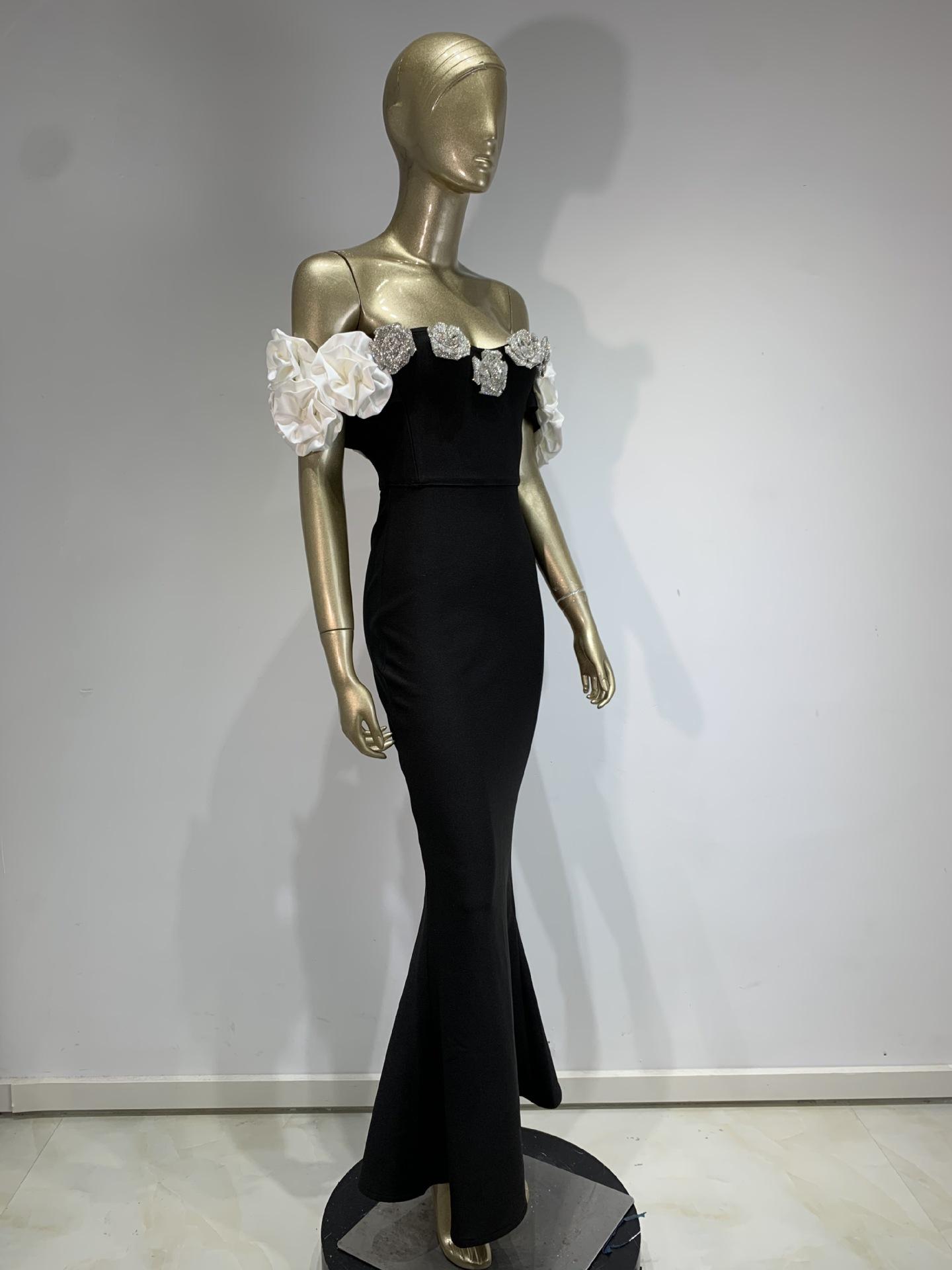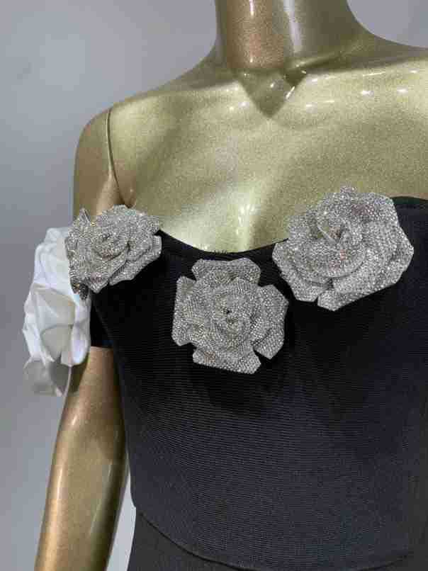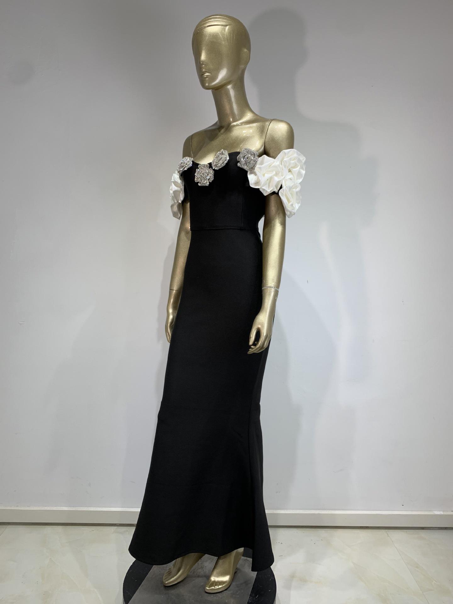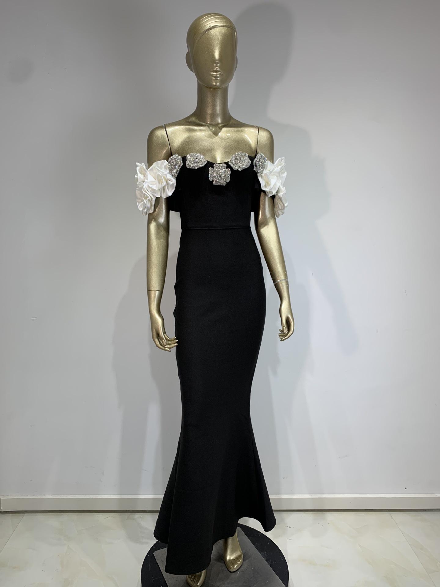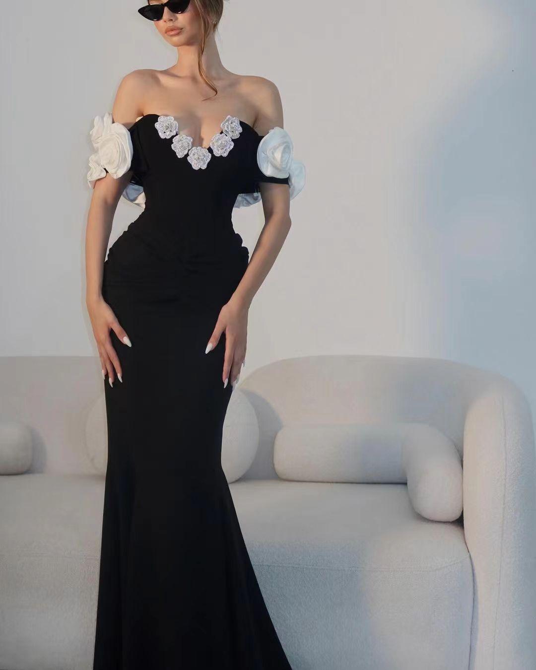 Comercio exterior transfronterizo Nuevo vestido de noche Moda europea y americana Elegante sin tirantes Cuello en V Calcomanía Vestido de vendaje Vestido de fiesta