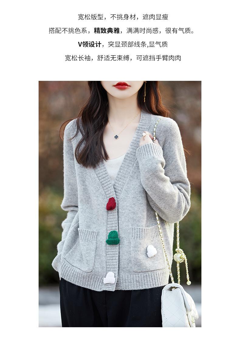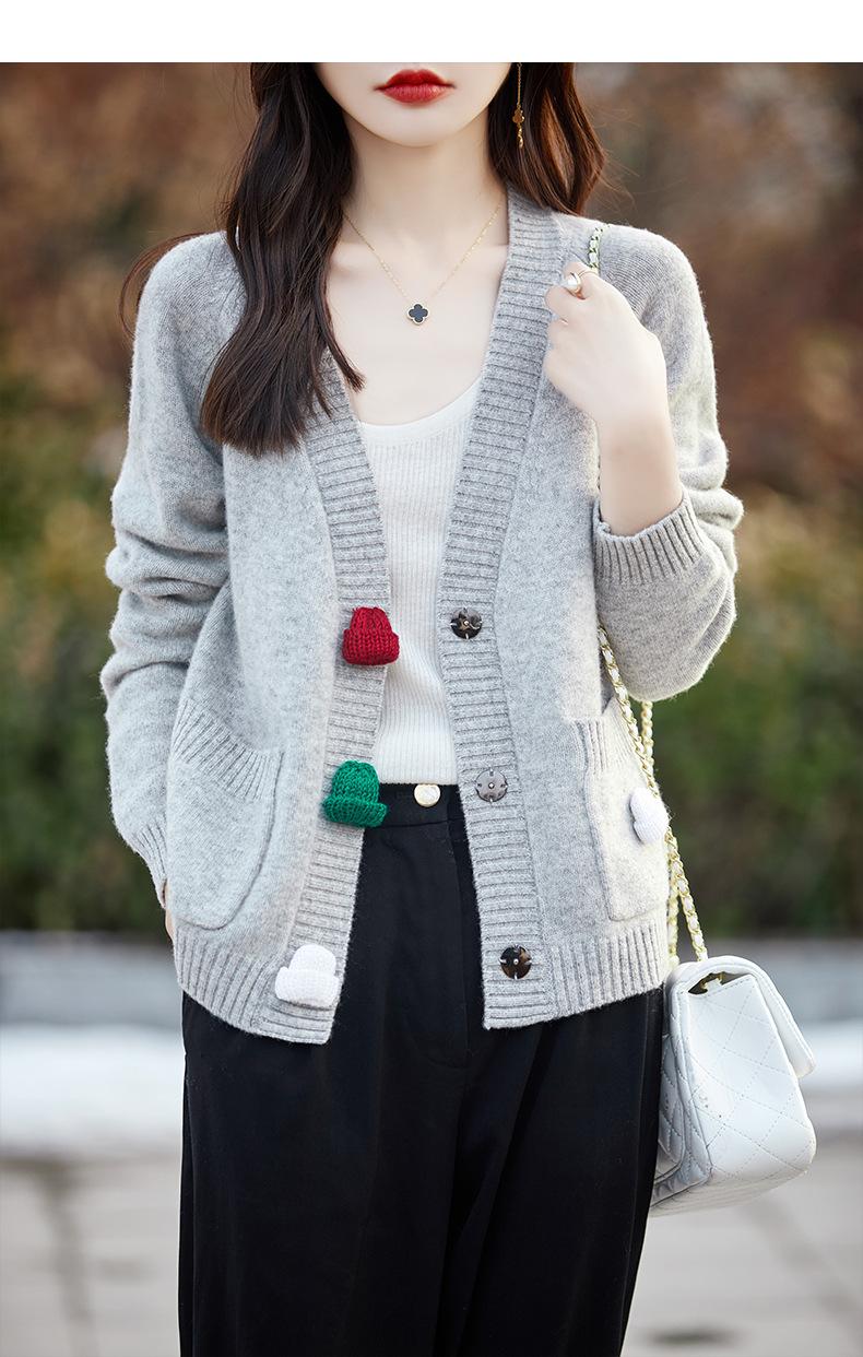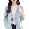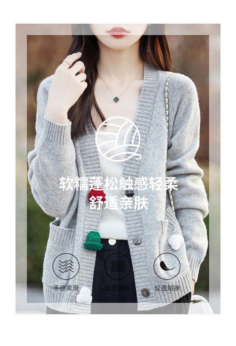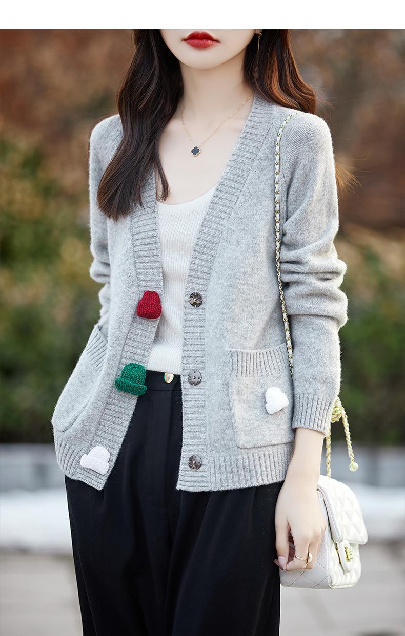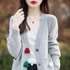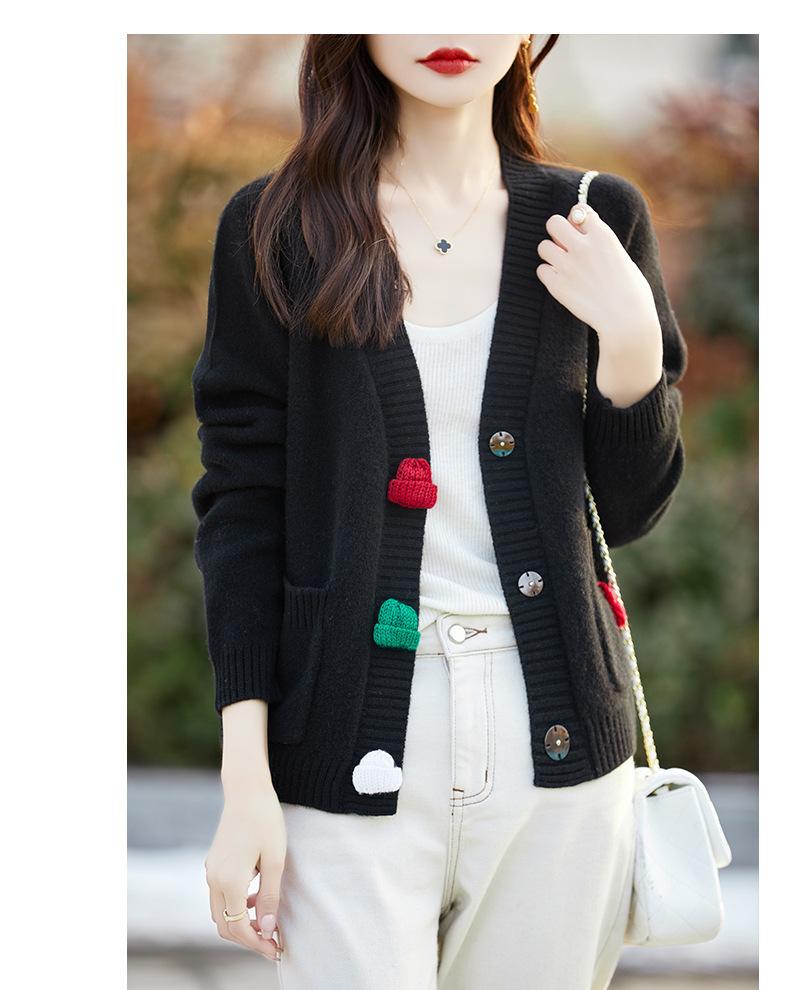 Cárdigan de lana nueva para mujer, otoño e invierno 2024, cuello en V, bolsillo, bordado, manga larga, chaqueta holgada de punto de cachemira.