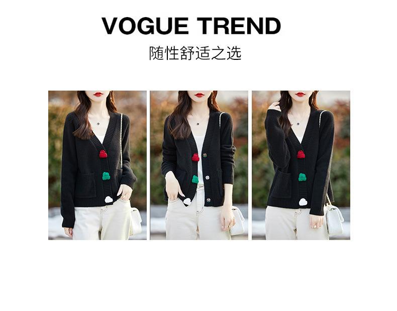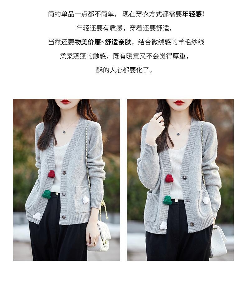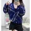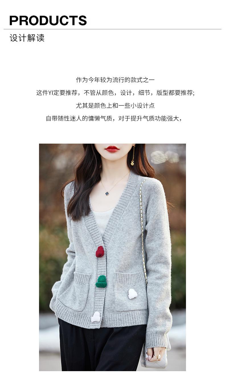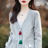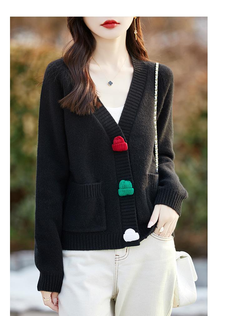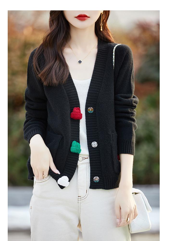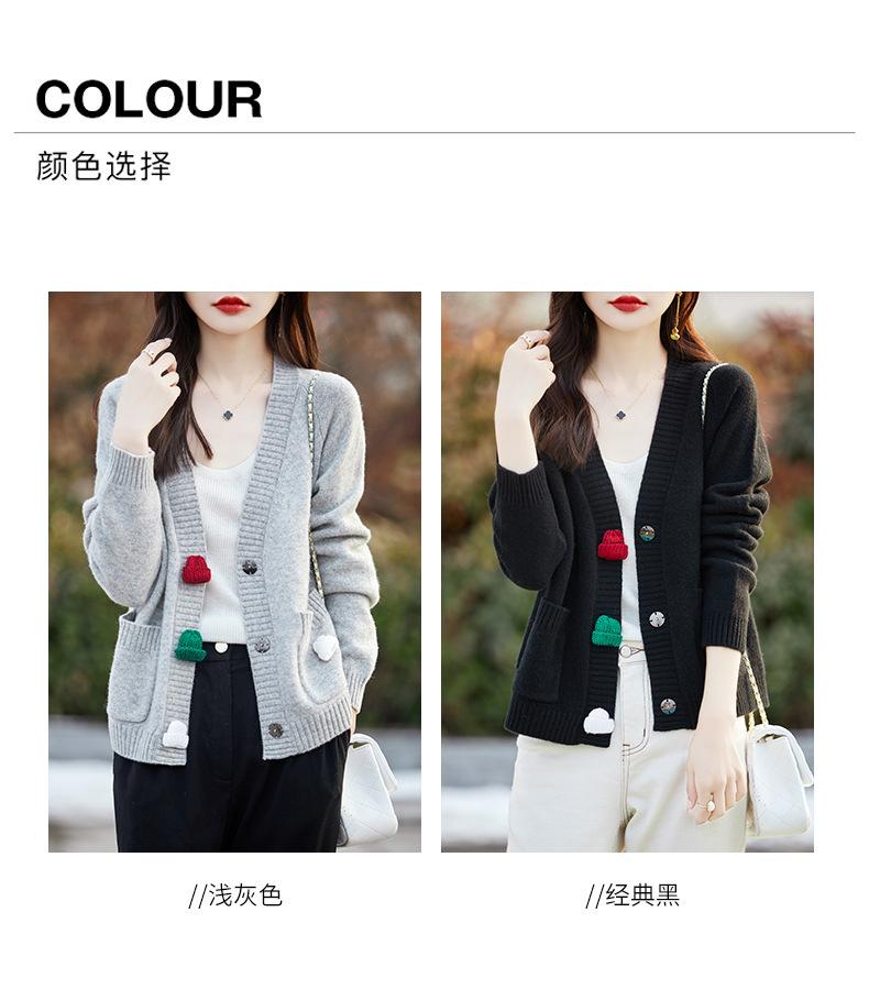 Cárdigan de lana nueva para mujer, otoño e invierno 2024, cuello en V, bolsillo, bordado, manga larga, chaqueta holgada de punto de cachemira.