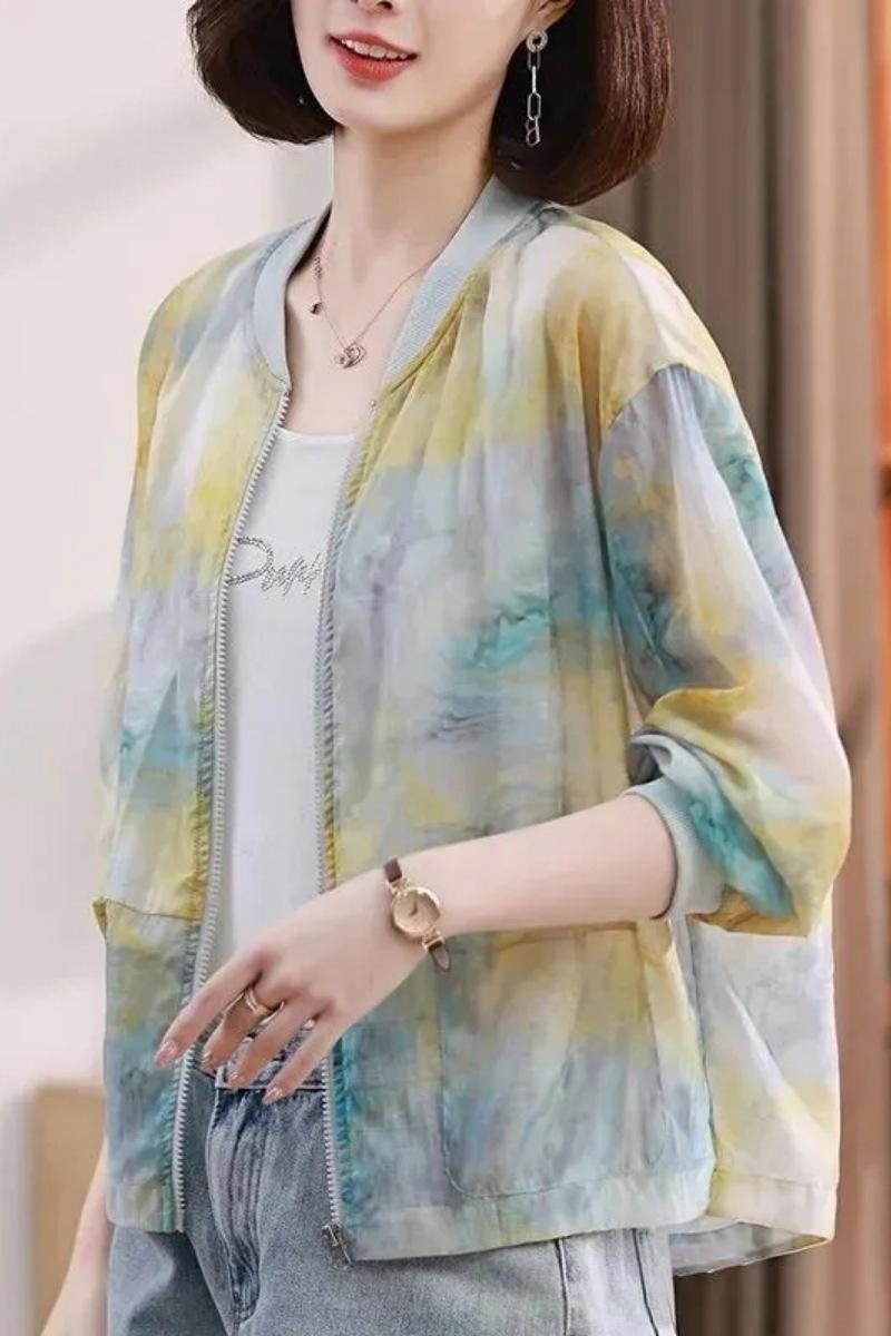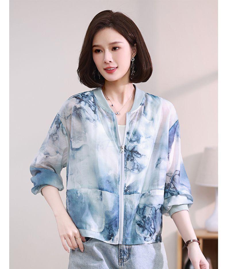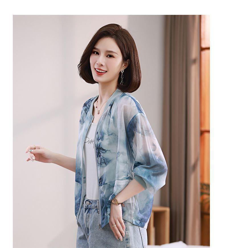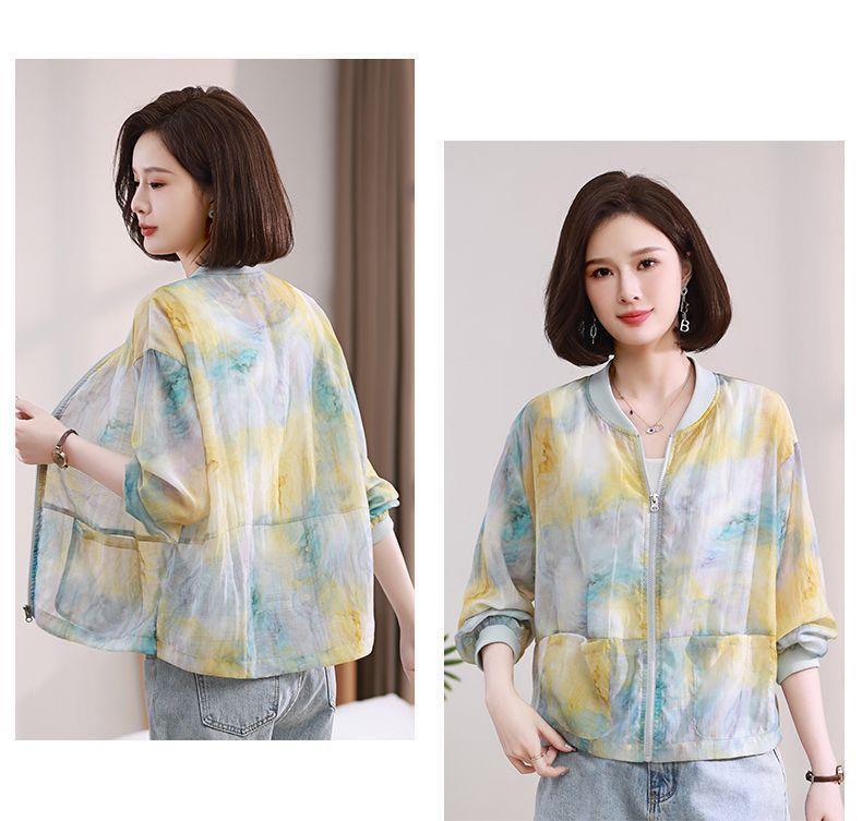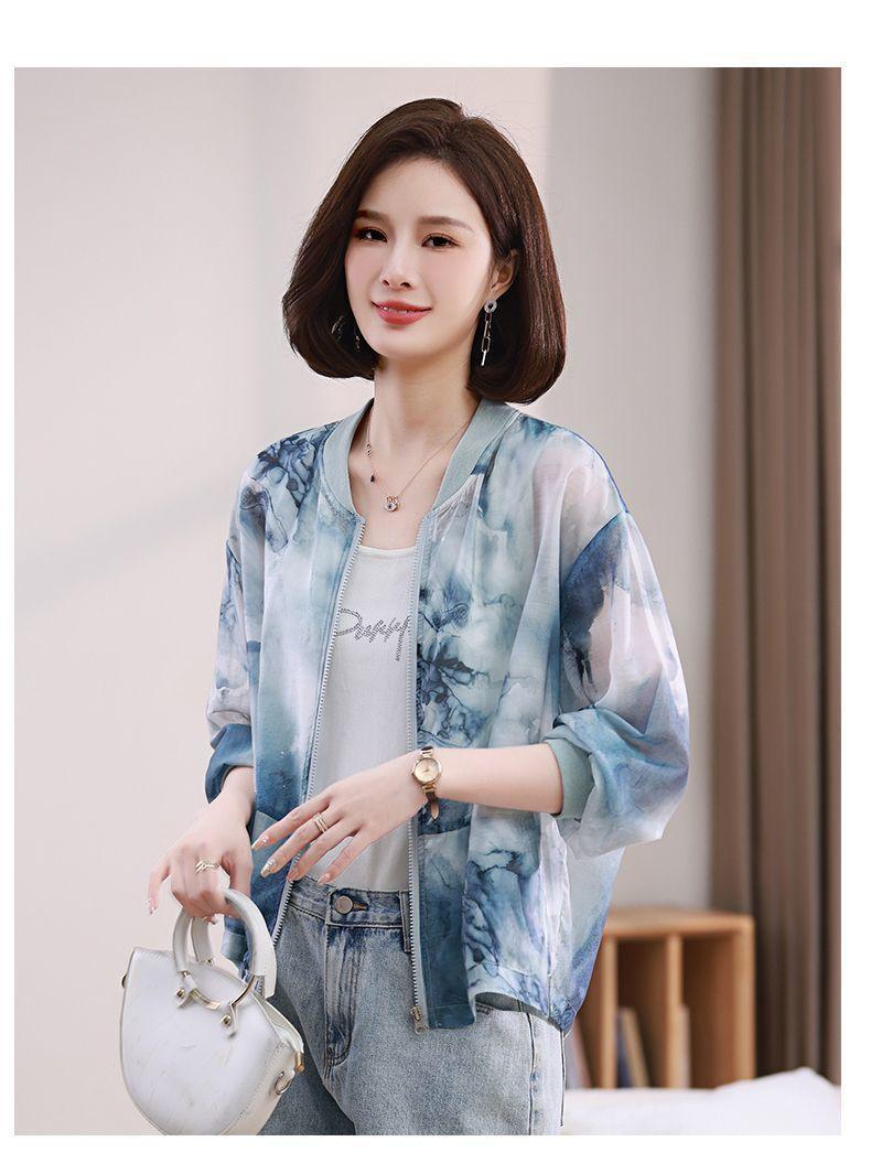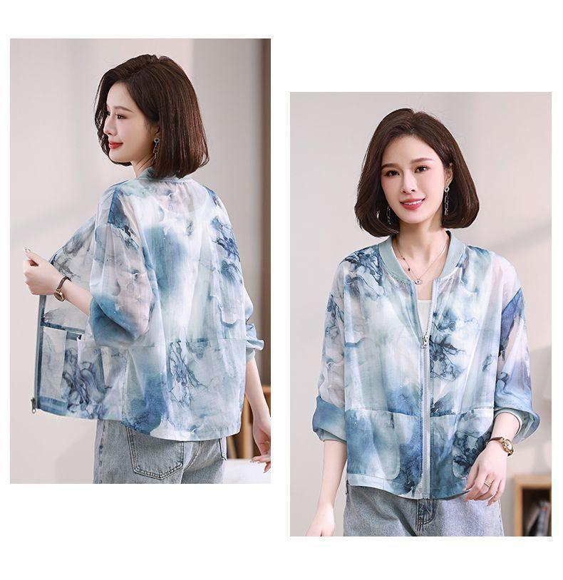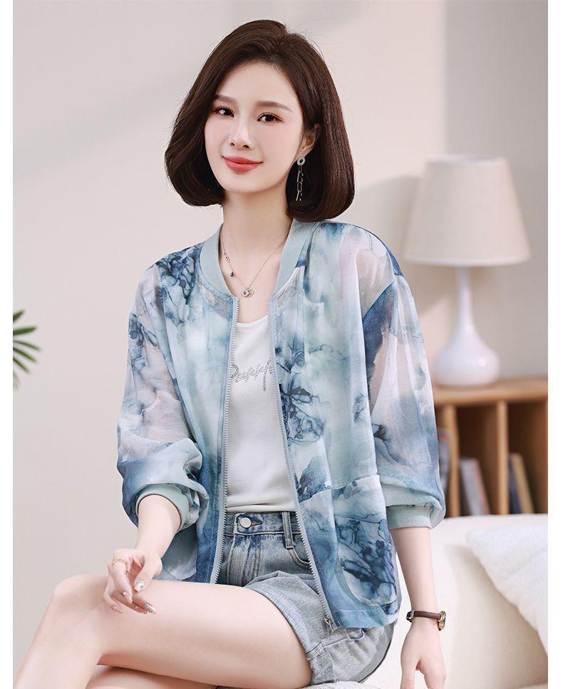 Ropa de Protección Solar Estampada de Chifón para Mujer Primavera y Verano 2025 Nuevo Anti-Uv Transpirable Cómodo Casual Manga Larga Pequeño Abrigo Exterior