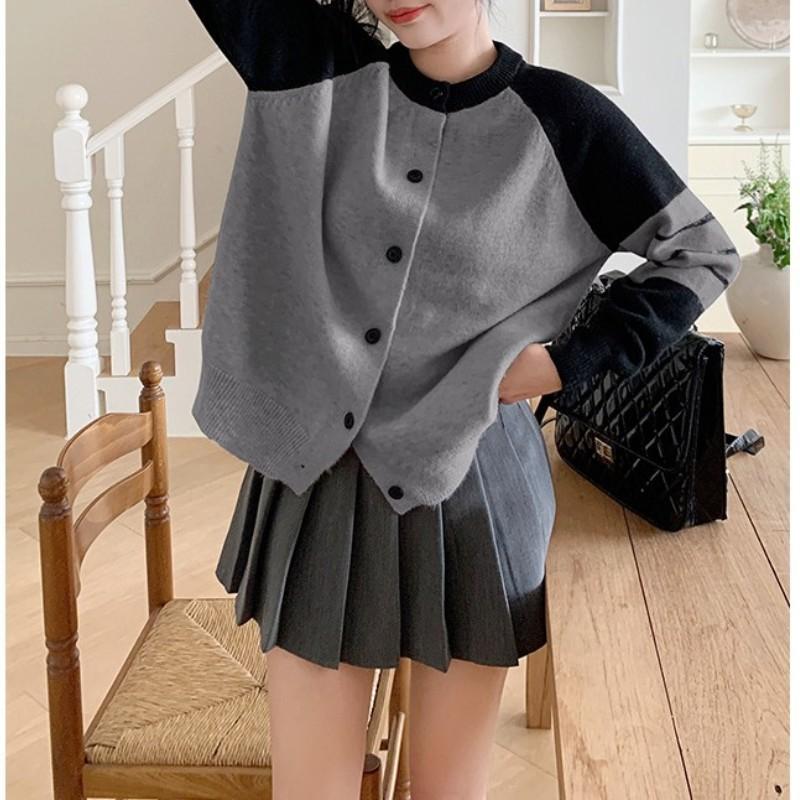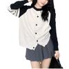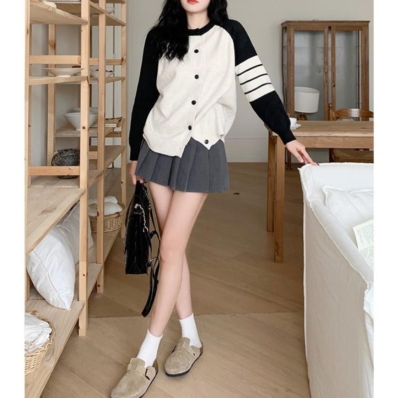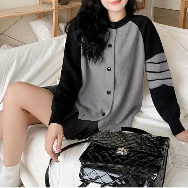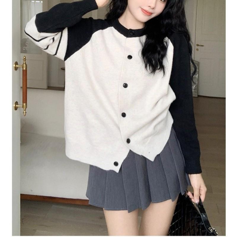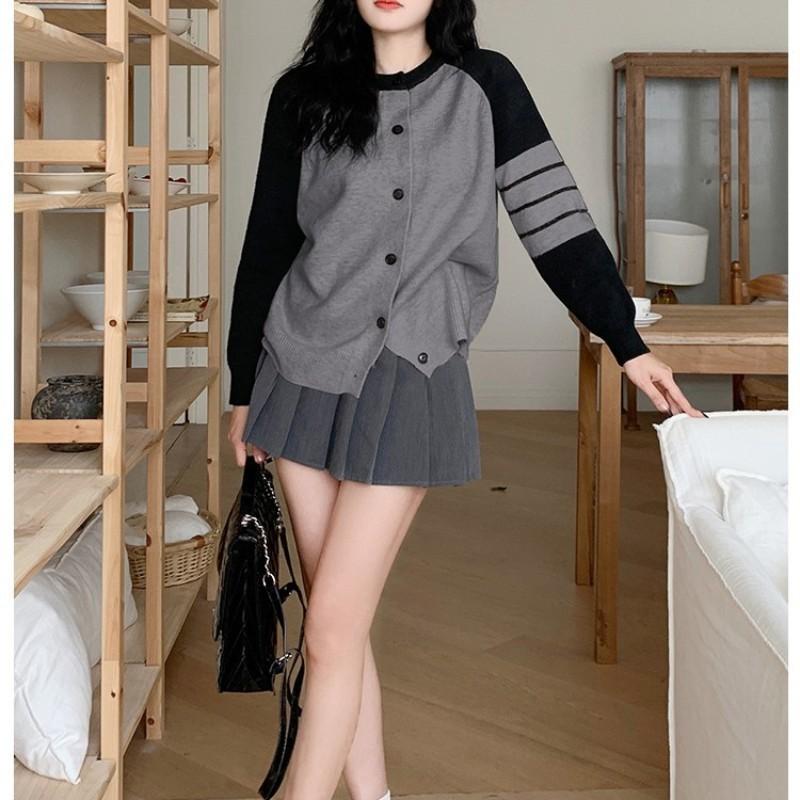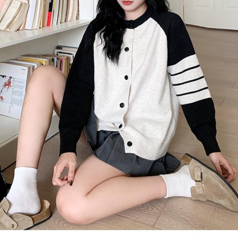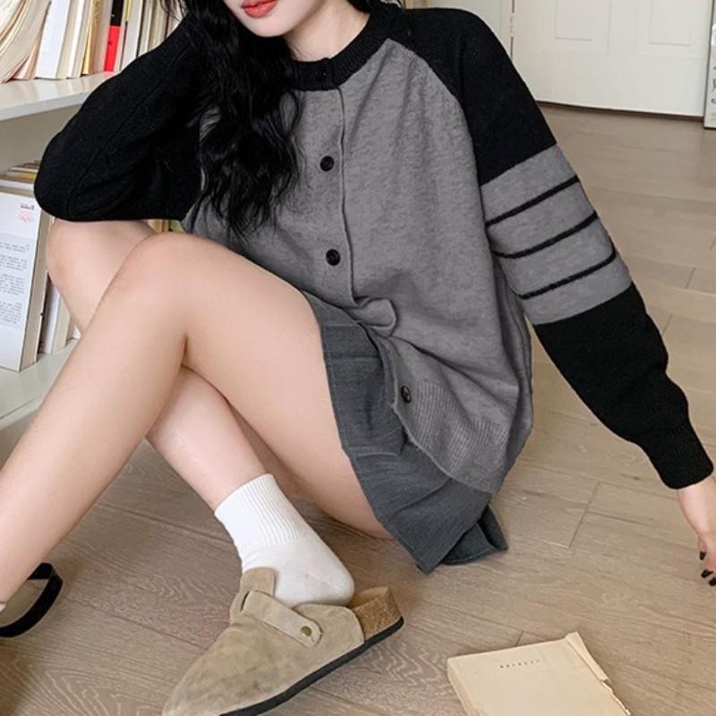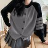 Cárdigan de Punto de Cuello Redondo para Mujer 2025 Otoño e Invierno Nuevo Top de Color en Contraste Suéter Holgado Casual con Bloques de Color a Rayas Ropa Exterior para Mujer