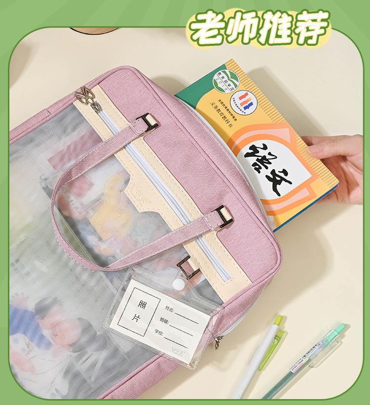Bolsa de Malla Transparente A4, Bolsa de Tutoría de Doble Capa, Bolso Tote, Bolsa para Libros, Bolsa para Documentos con Almacenamiento con Cremallera y Ranura para Tarjetas