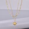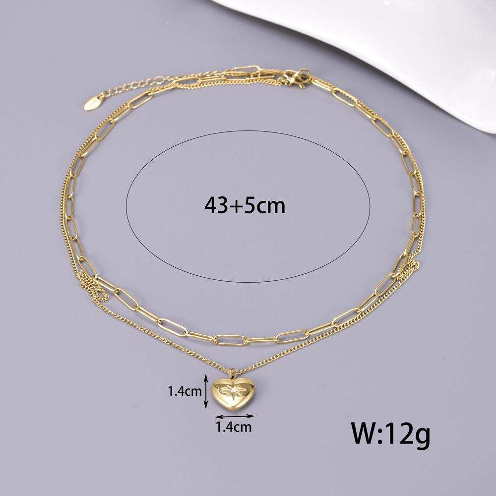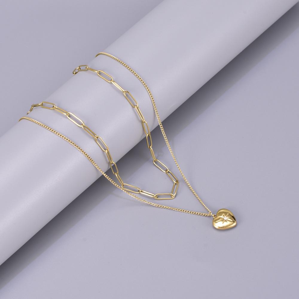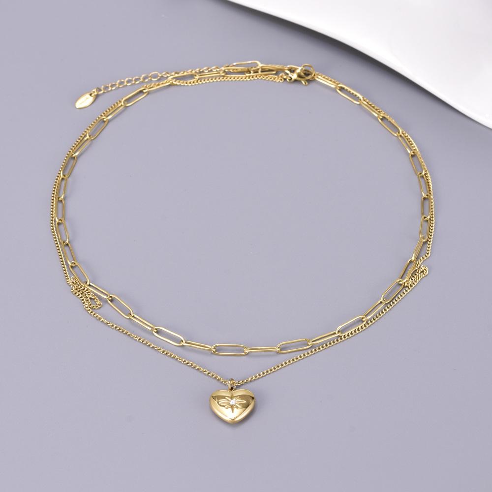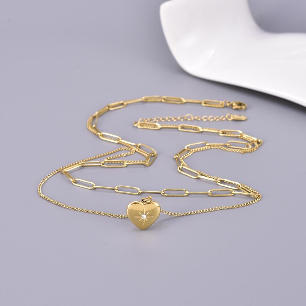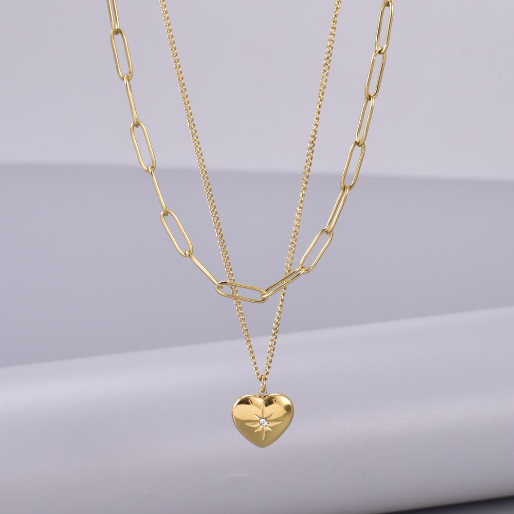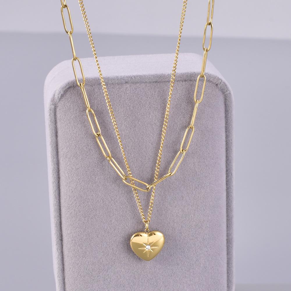 Collar con colgante de circonita con incrustaciones de estrella de hombre en forma de corazón doble L30, joyería europea y americana, chapado en acero de titanio y oro de 18 quilates.