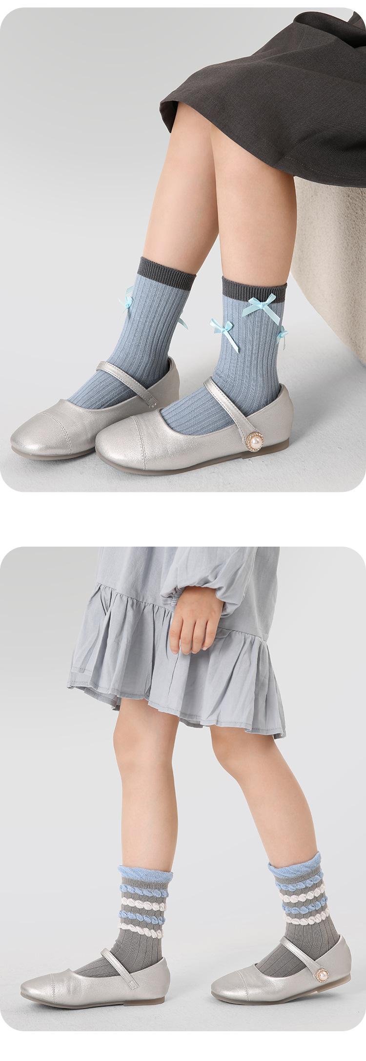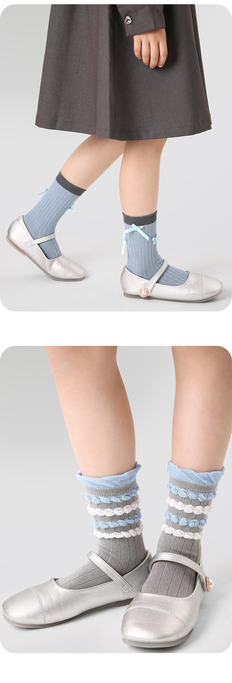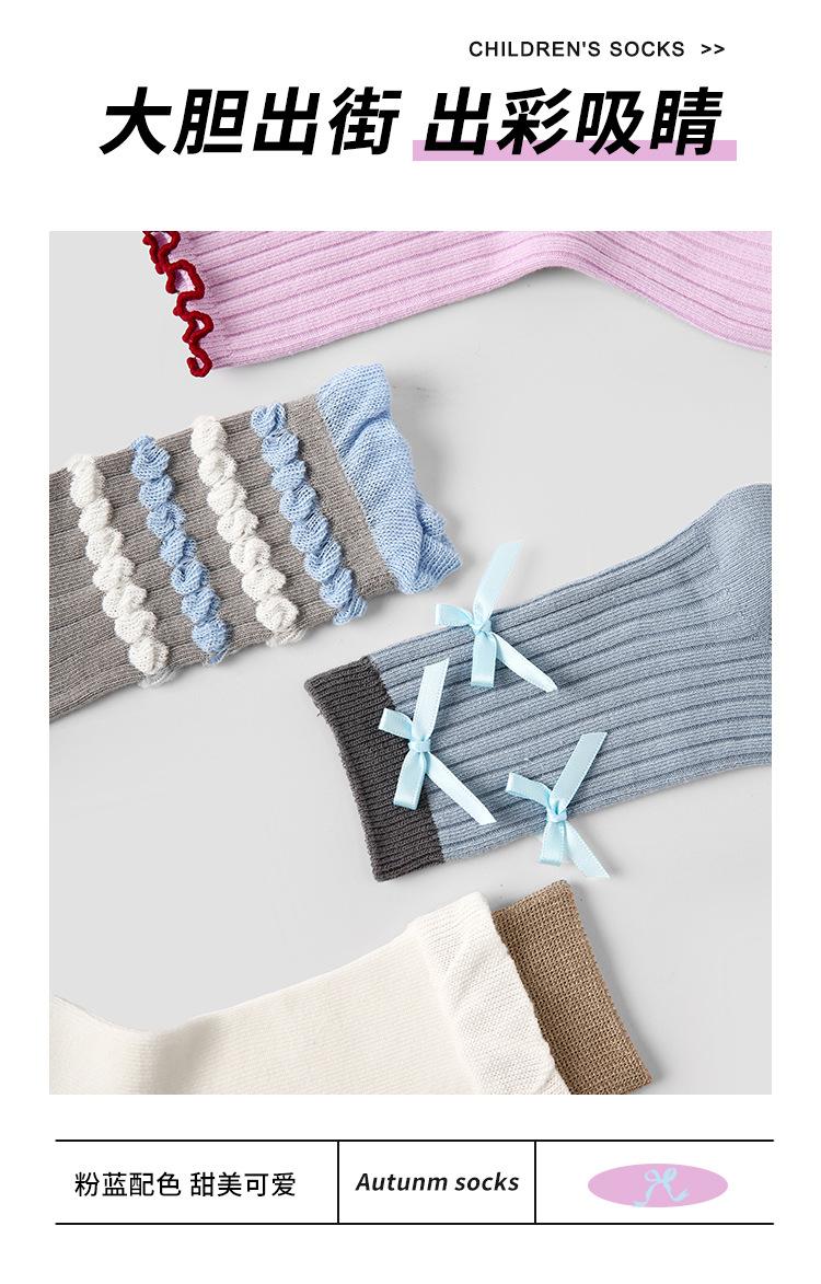 Calcetines para niños ZYZ al por mayor otoño color sólido combinan con todo doble aguja calcetines de tubo para niños doble boca Luo lazo encaje calcetines