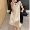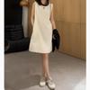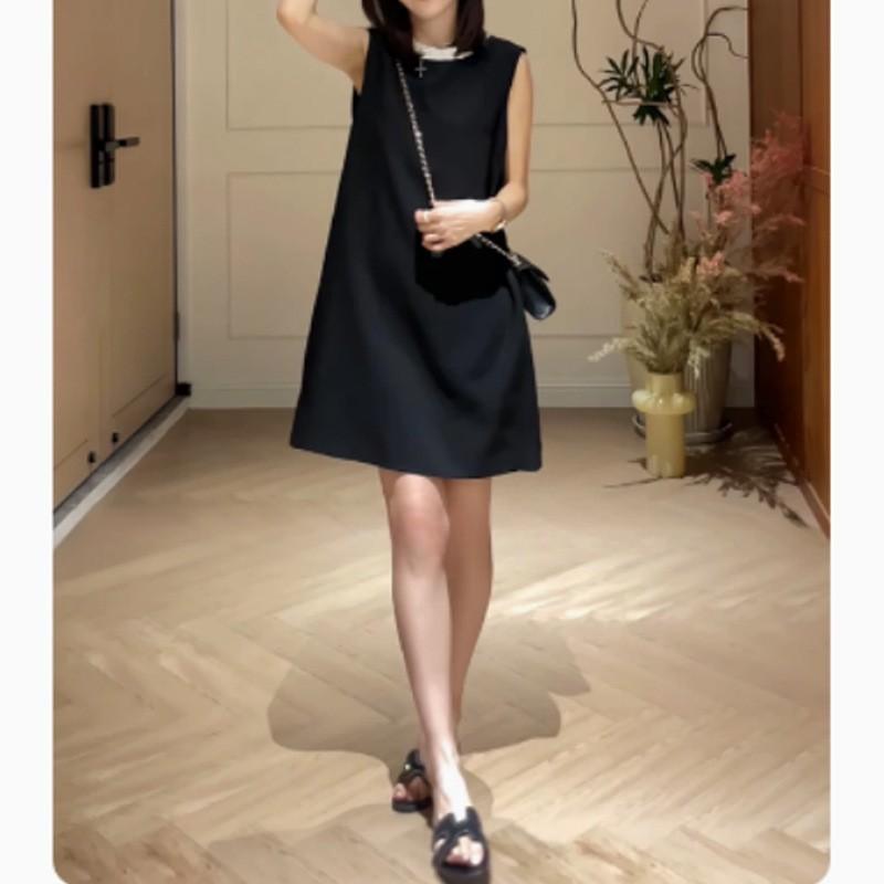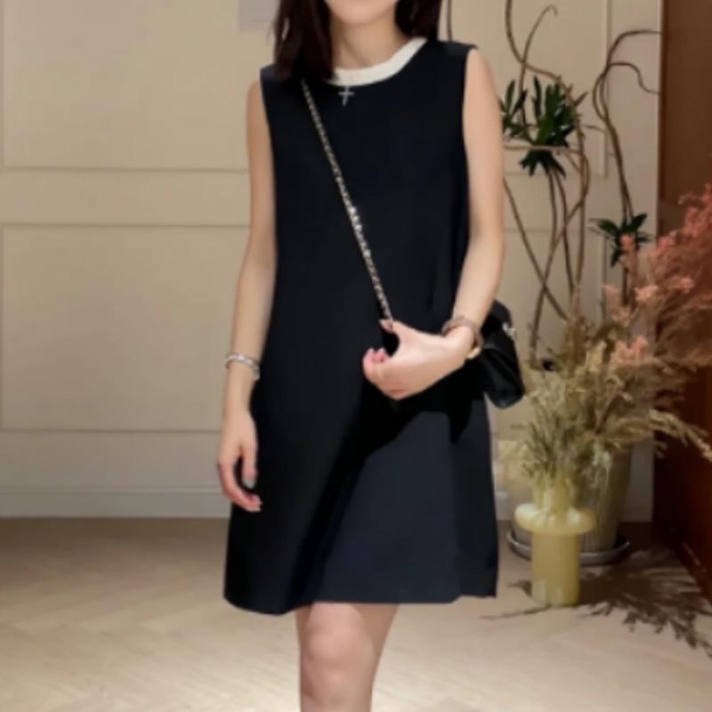 Vestido francés de cuello redondo con bloques de color, estilo fragante pequeño para mujer, verano, estilo japonés, nuevo, holgado, con efecto adelgazante, sin mangas, tipo chaleco, falda corta