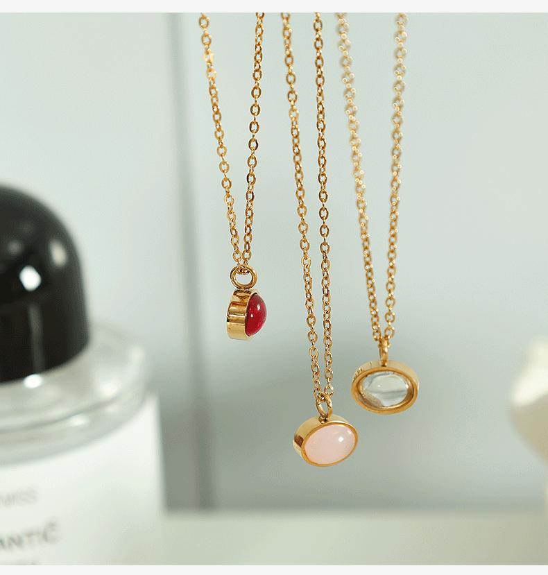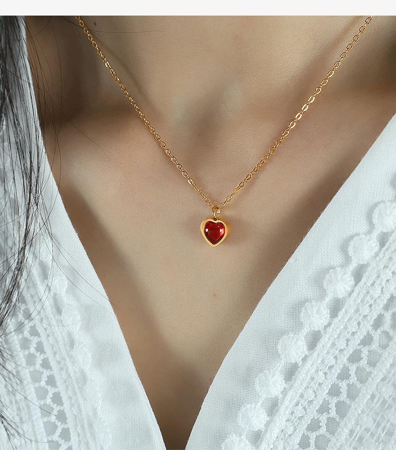 Collar francés retro de ágata roja con cadena de clavícula de acero y titanio, diseño de lujo ligero y sencillo, temperamento que combina con todo, nuevos accesorios