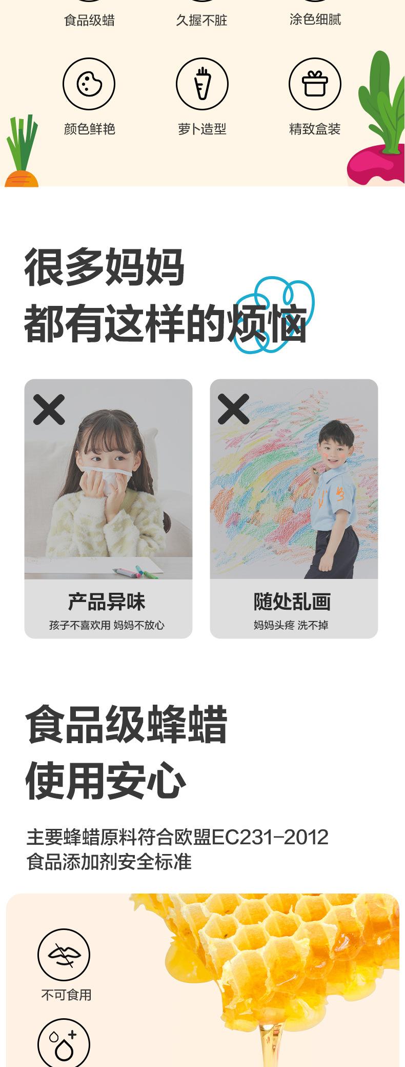 food grade⭐No Dirty Hands] 12 Color Carrot Crayon Food Grade