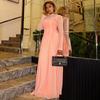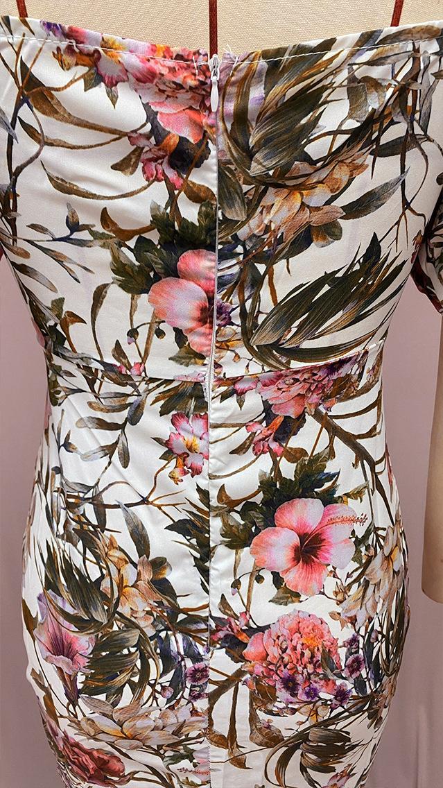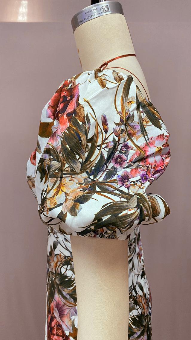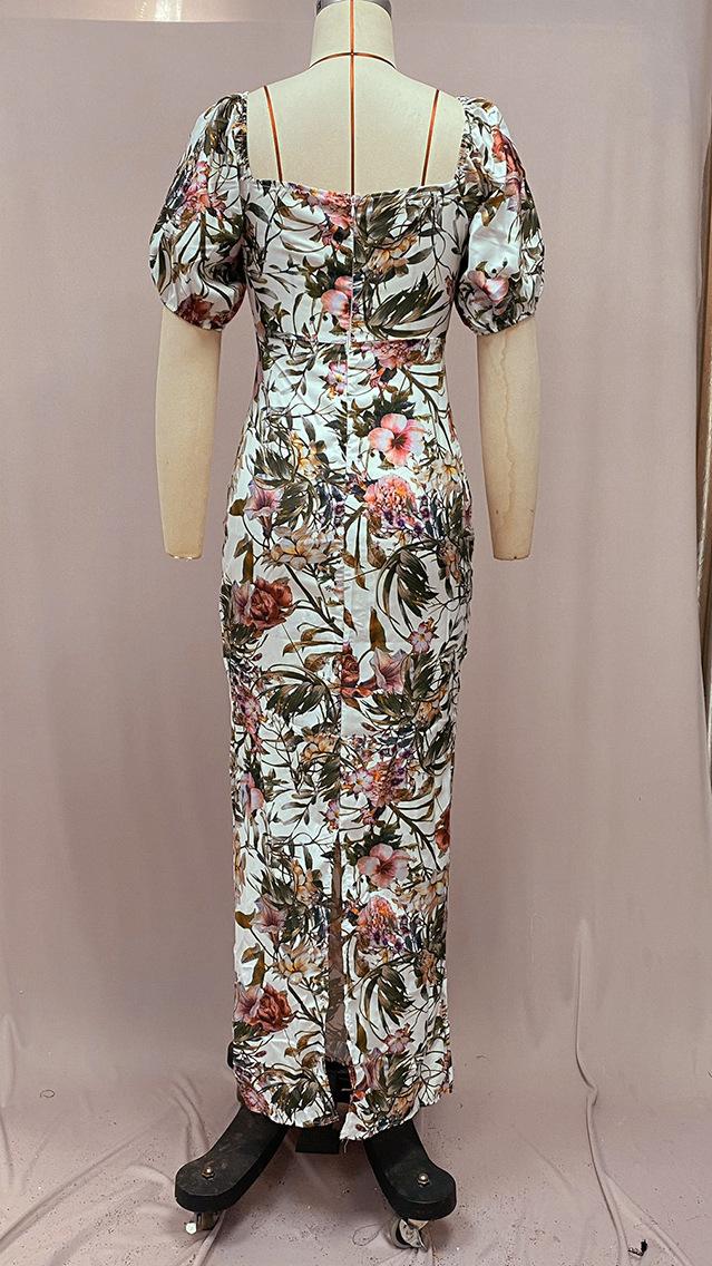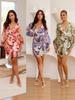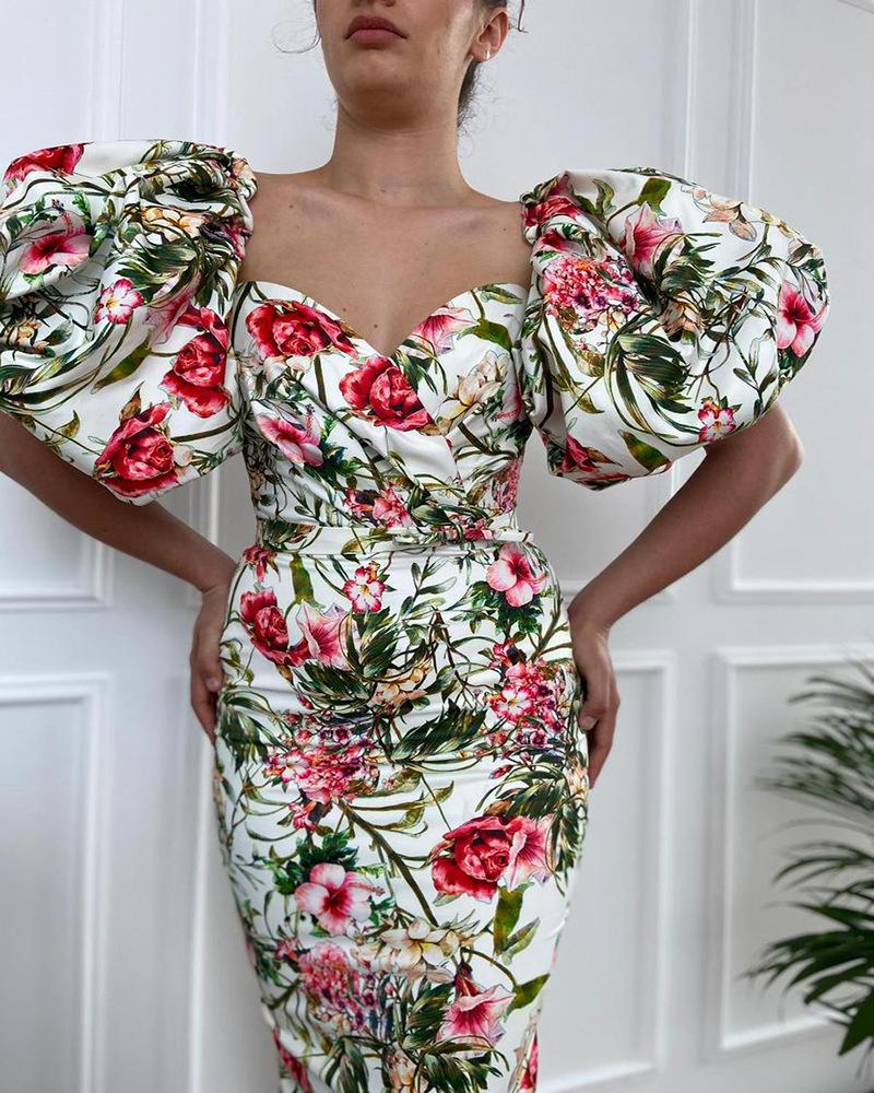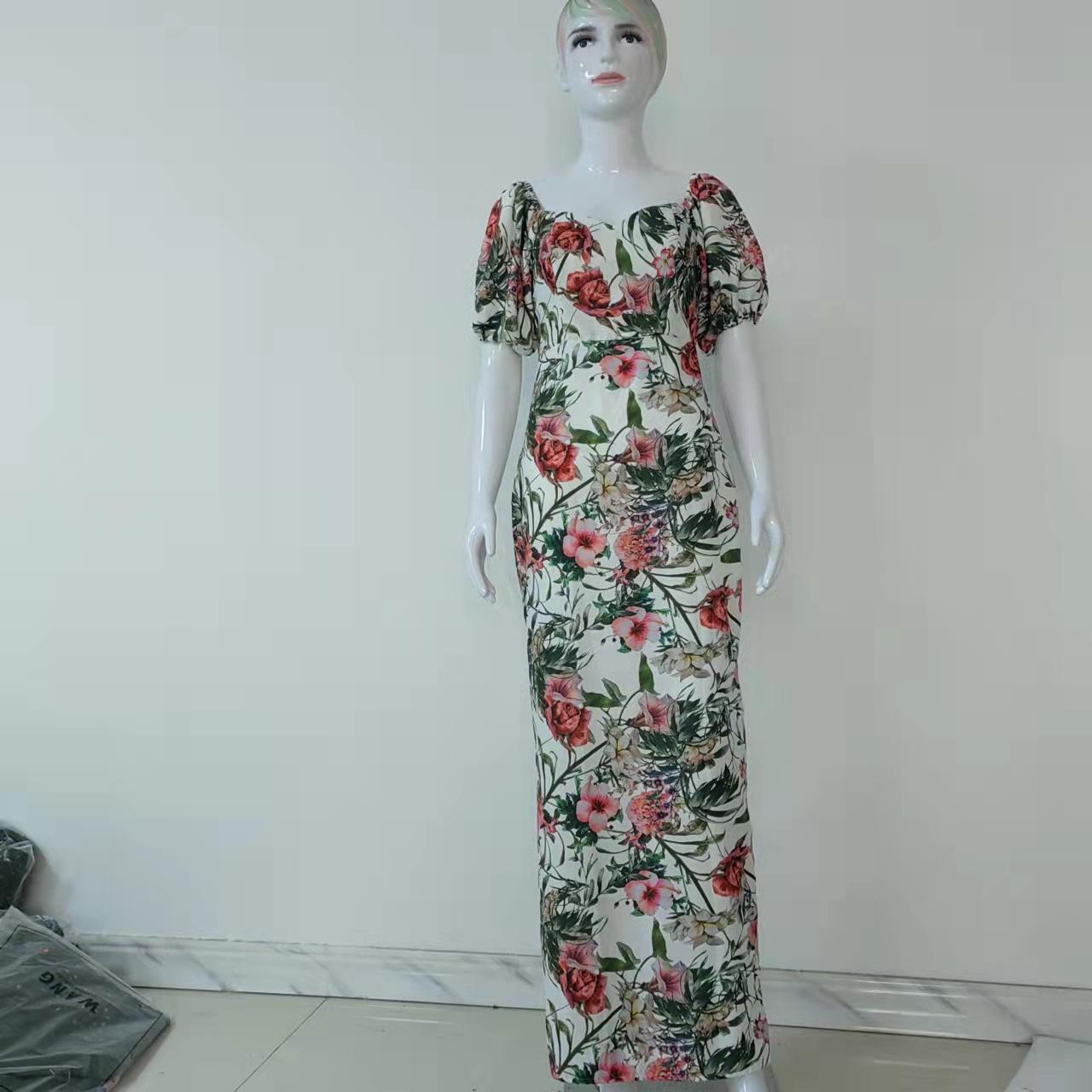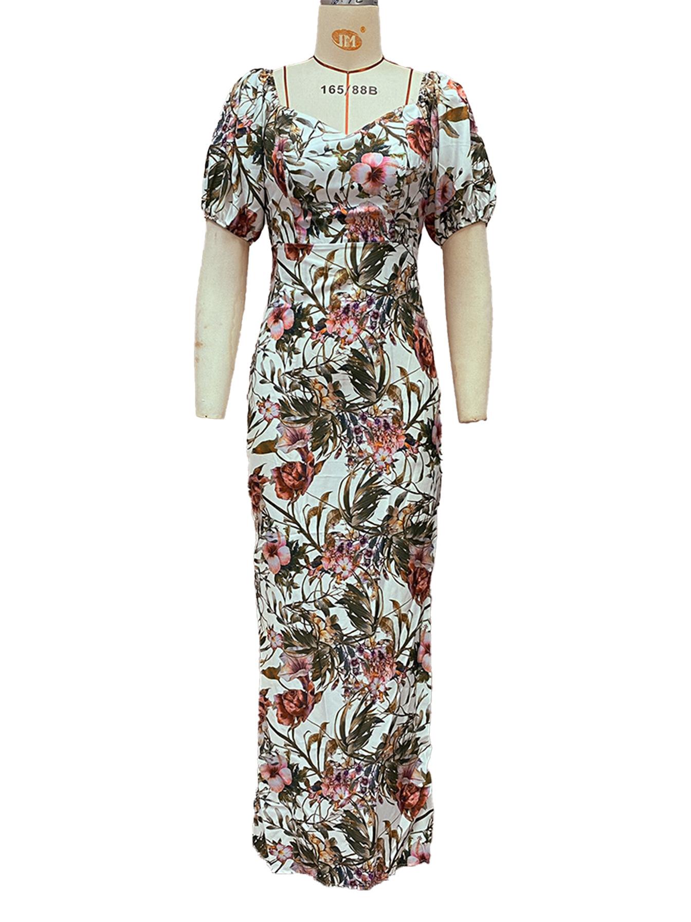 2025 Nuevo Vestido Europeo y Americano para Mujer Transfronterizo con Cuello en V de Gasa Estampada de Cintura Alta y Corte Slim Vestido de Manga Corta para Socialité
