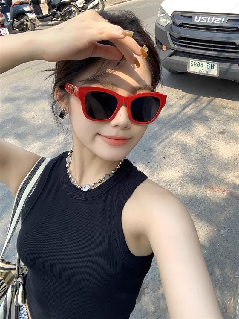 Compra Gafas de sol cuadradas rojas retro de estilo coreano para mujer, estilo Spice Girls, para fotografiar, gafas de sol anti-UV de alta gama y combinables. al por mayor en Joom.pro