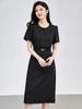 2423402-Vestido de mujer nuevo, de moda, profesional, femenino, con cintura ajustada y textura de calidad.