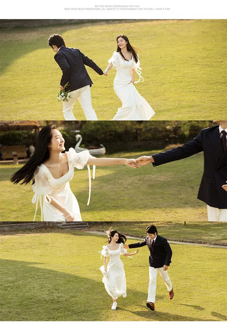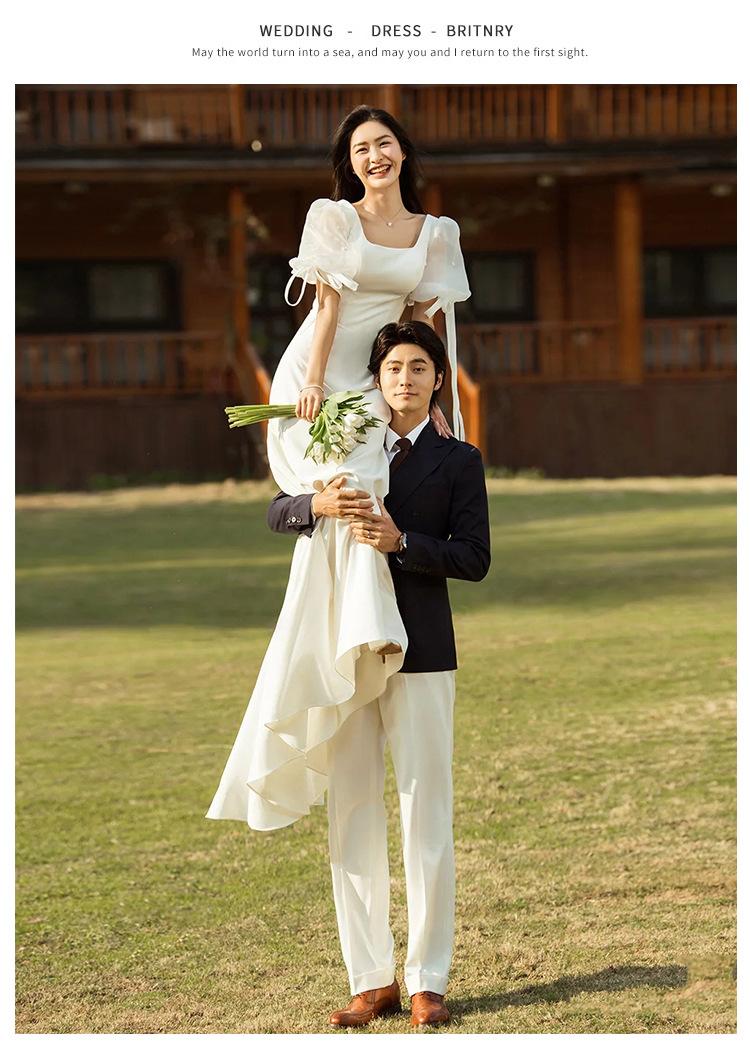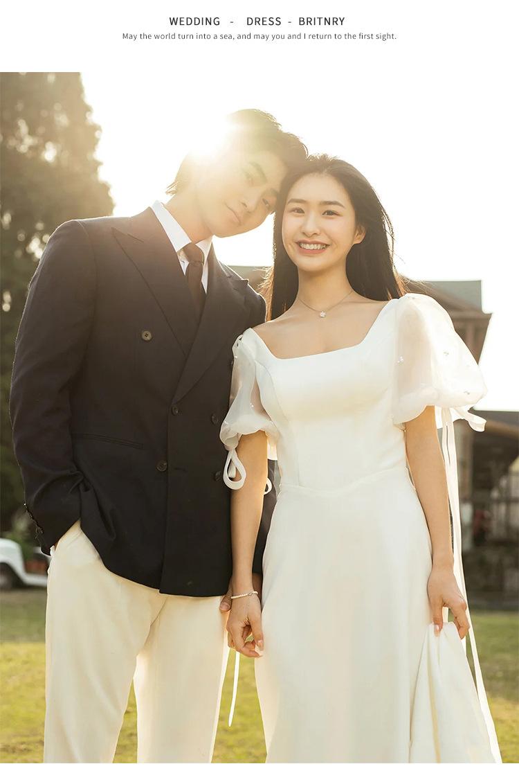 Vestido de Novia Ligero Francés 2025 Nuevo Satén Nupcial Elegante Cola Pequeña Sencillo Elegante Super Hada Fotografía de Viaje Salir Gasa Verano