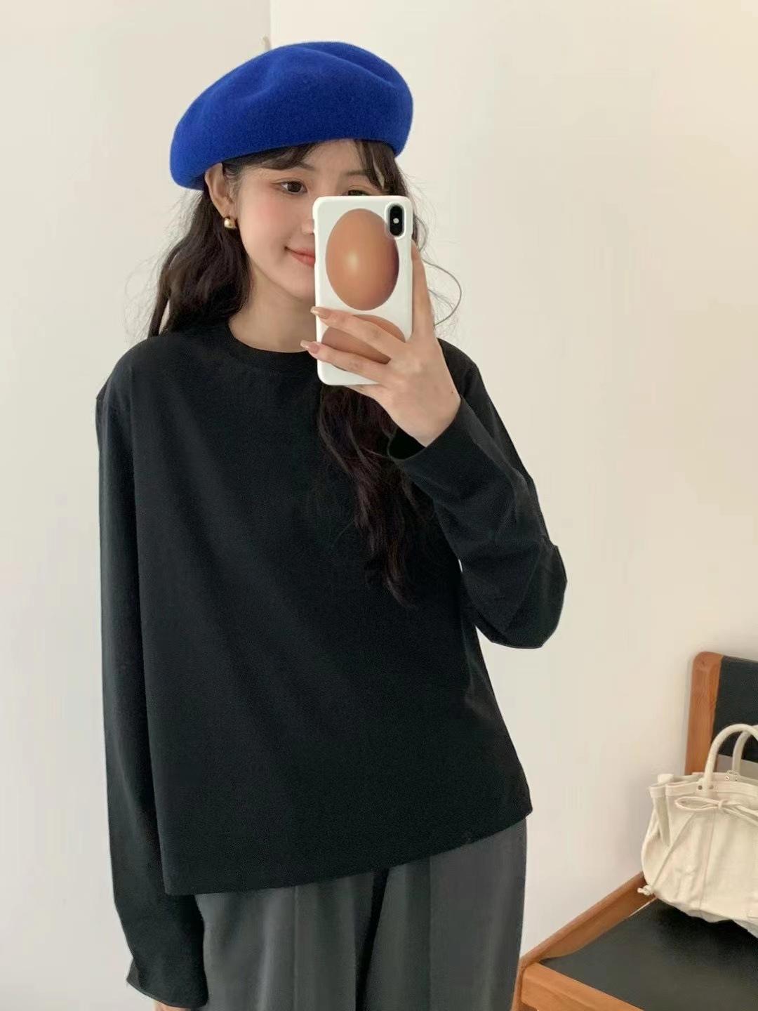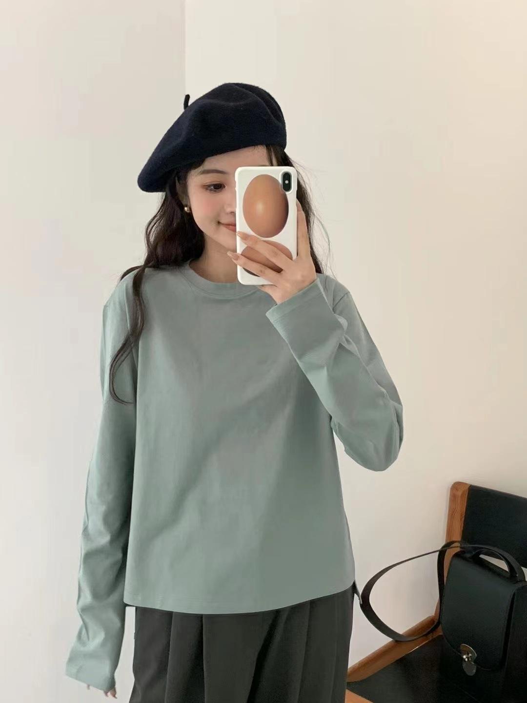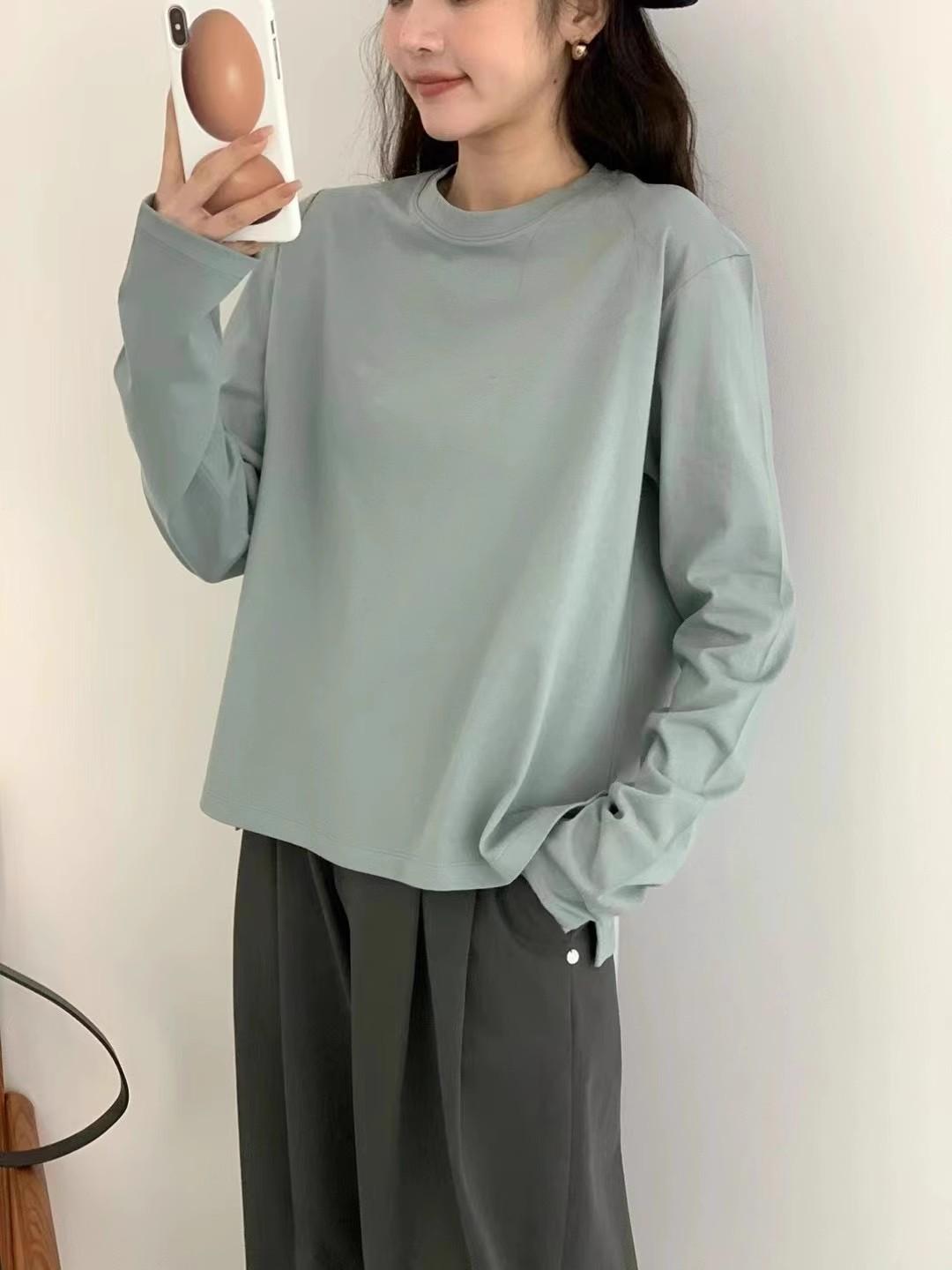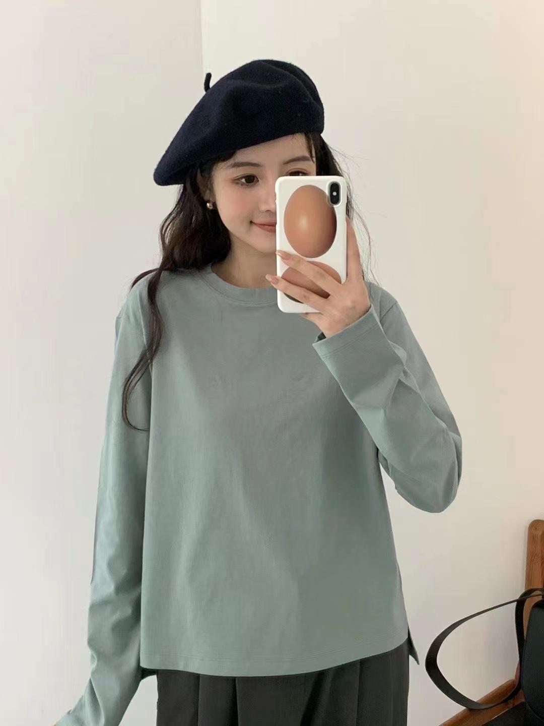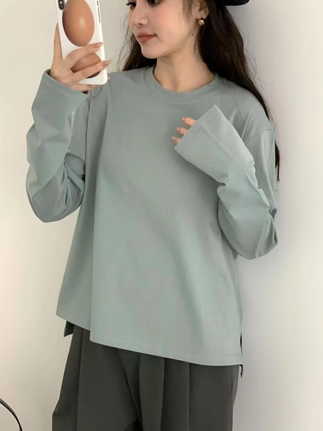 Playera básica de color puro de manga larga para mujer, holgada, primavera 2025, bajo alto, casual, sencilla, para capas interiores, huevo