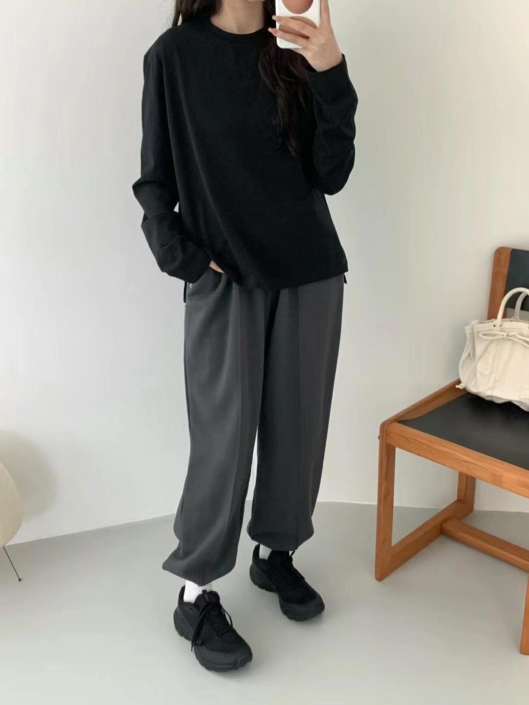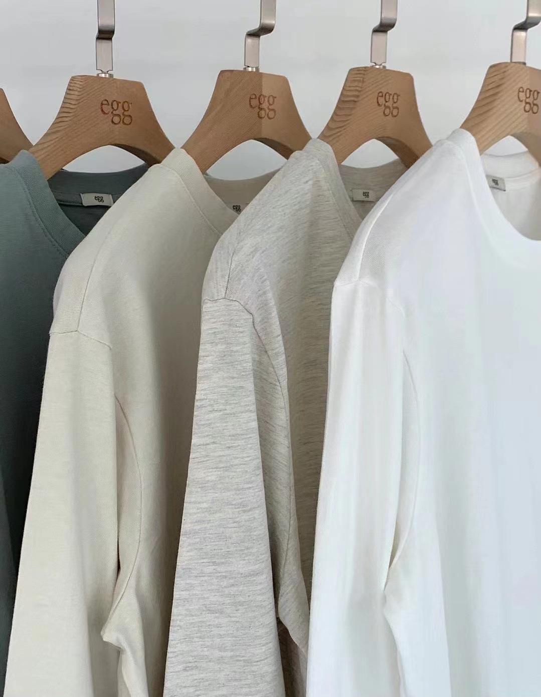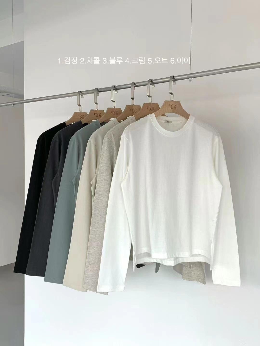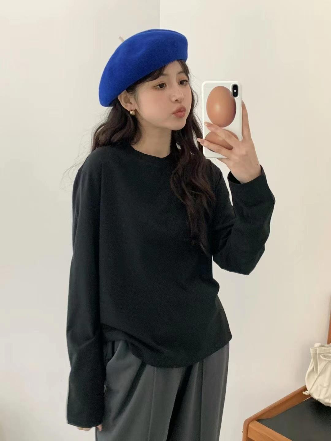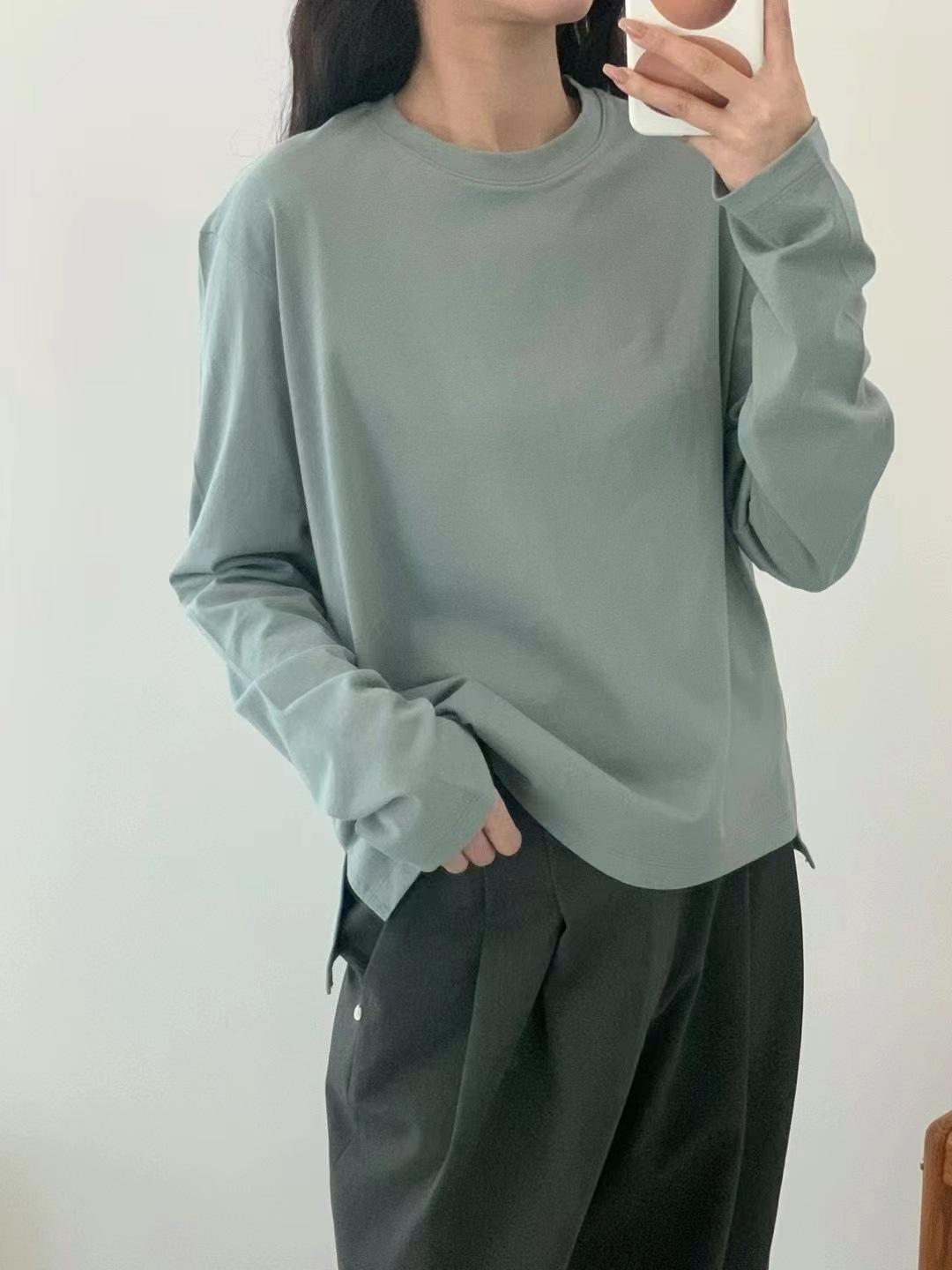 Playera básica de color puro de manga larga para mujer, holgada, primavera 2025, bajo alto, casual, sencilla, para capas interiores, huevo