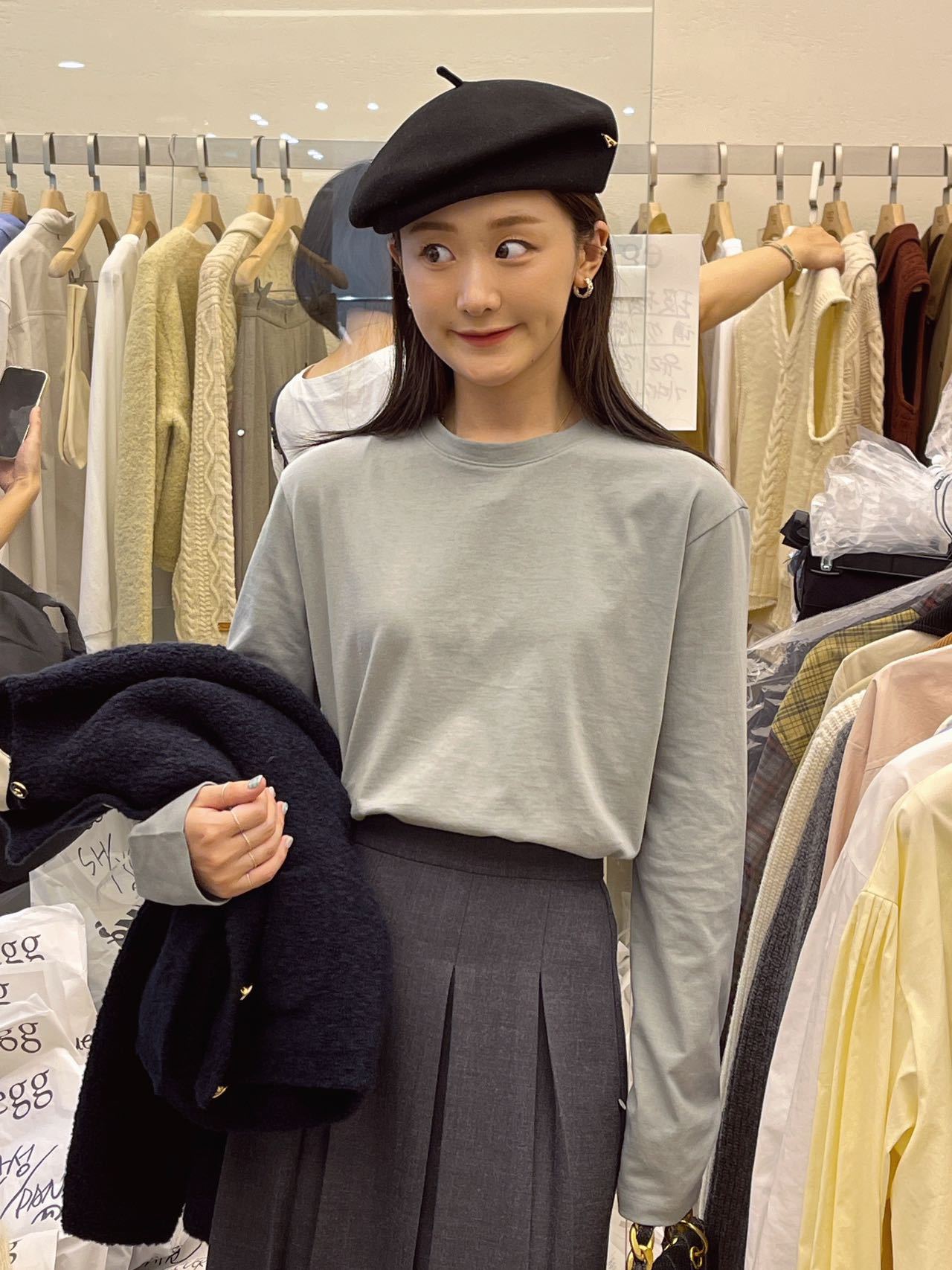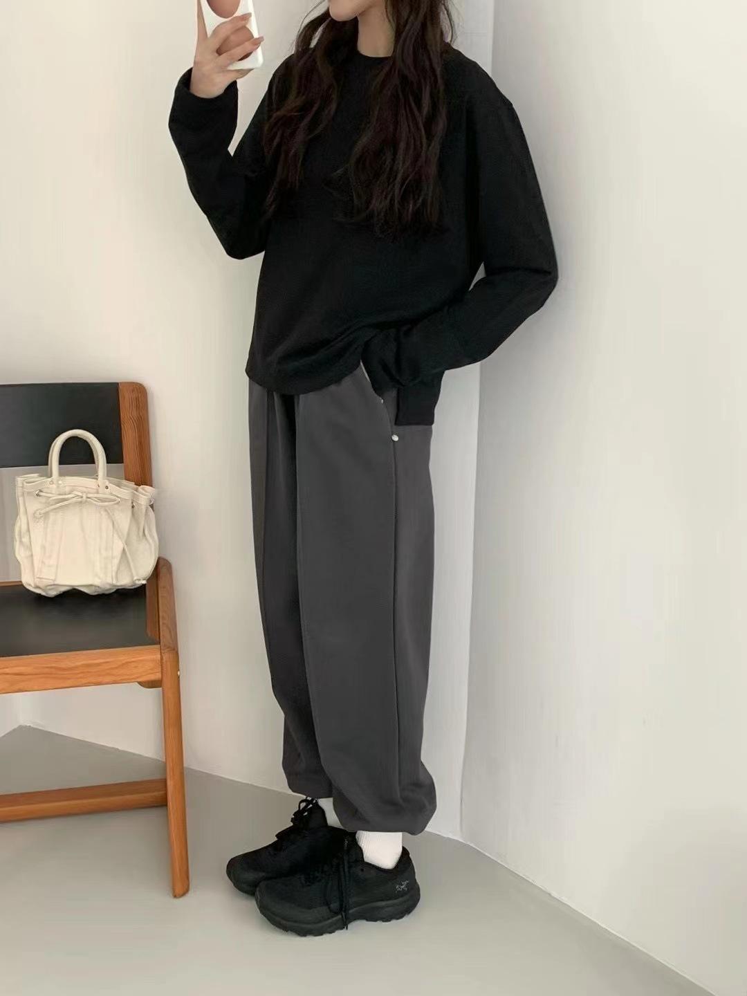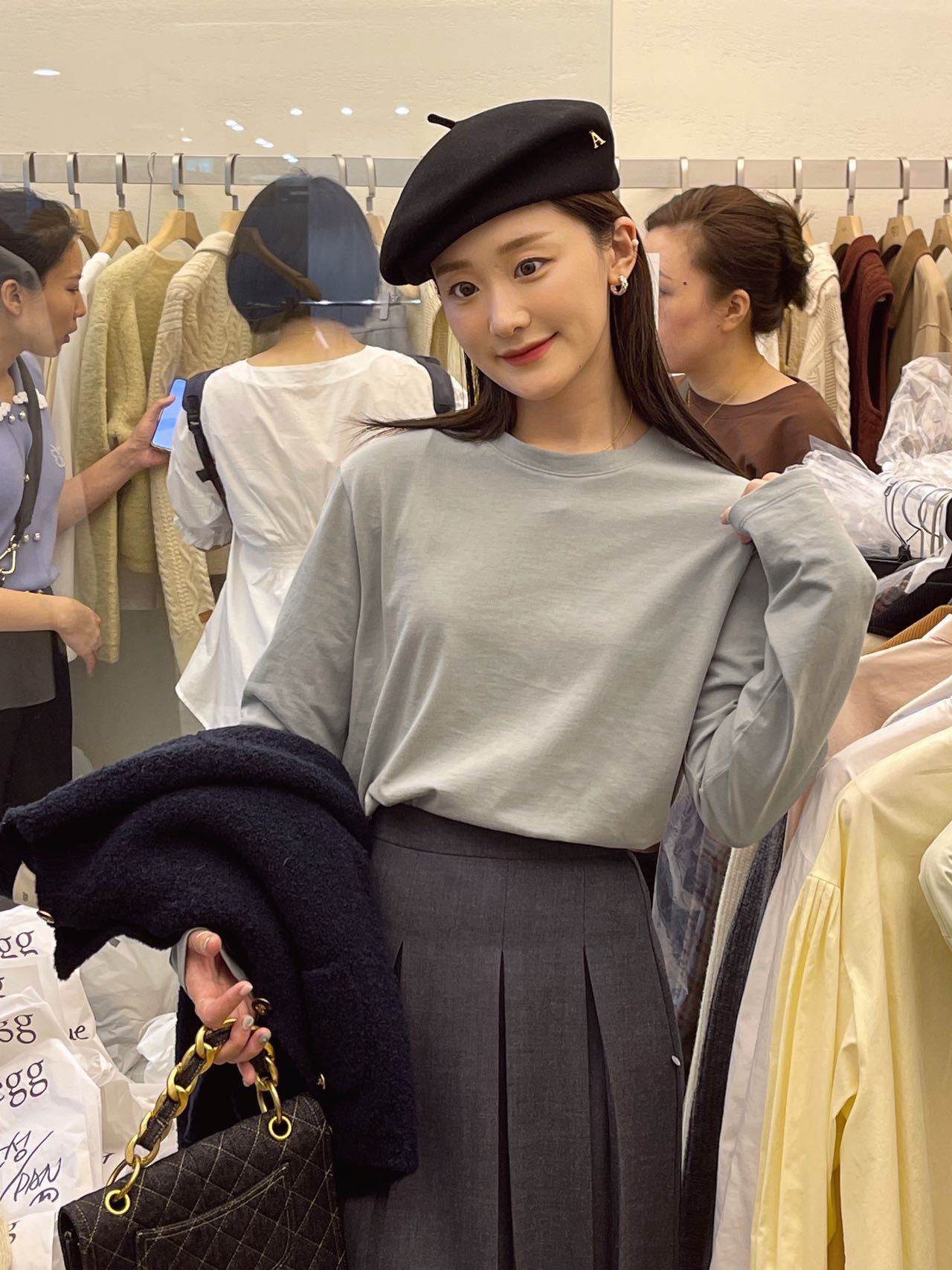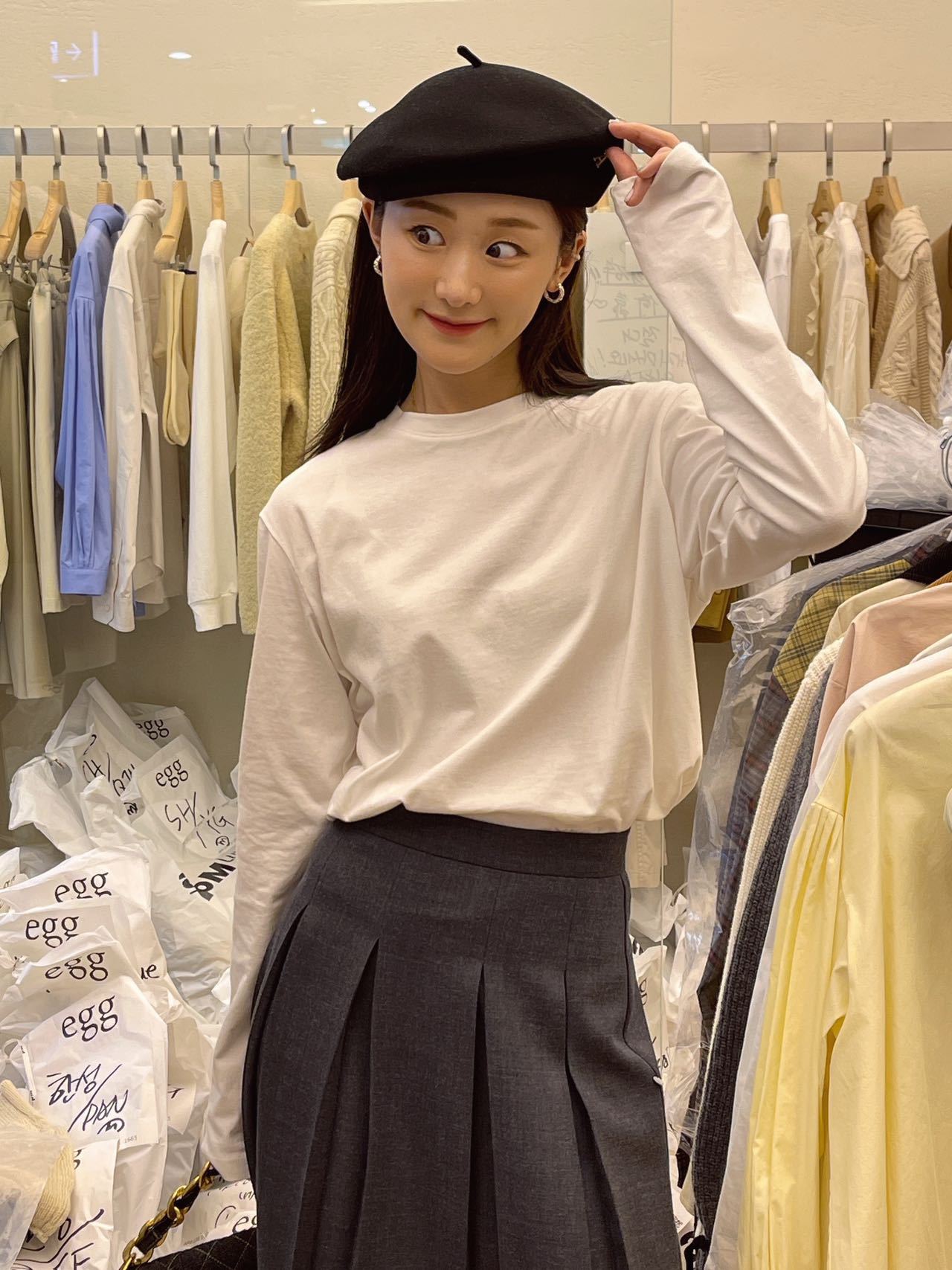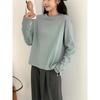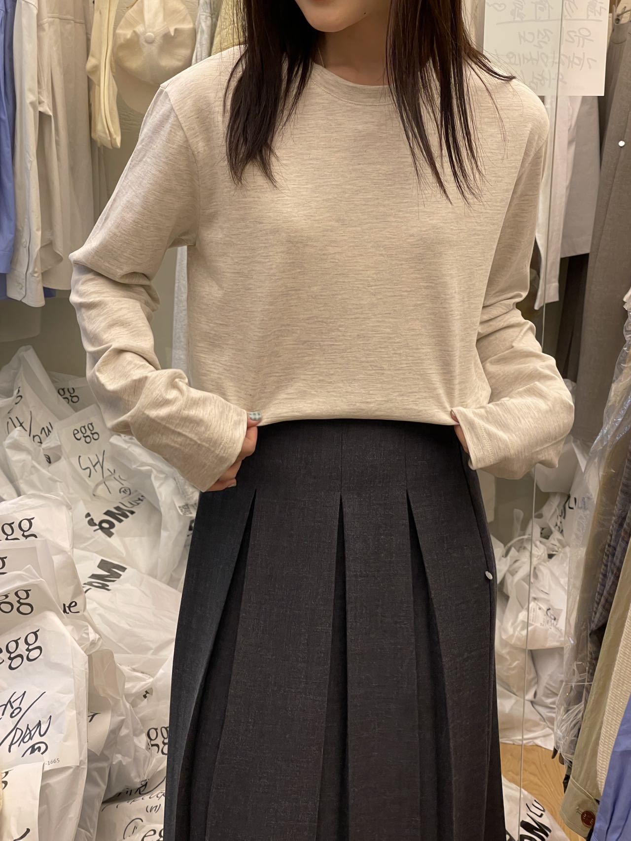 Playera básica de color puro de manga larga para mujer, holgada, primavera 2025, bajo alto, casual, sencilla, para capas interiores, huevo