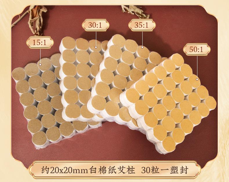15:1 white tissue paper moxa pillars 20*20mm (30 grains plastic sealed)