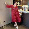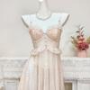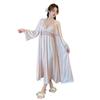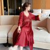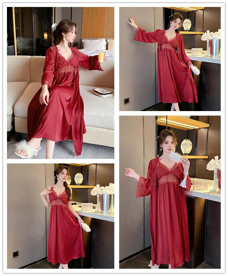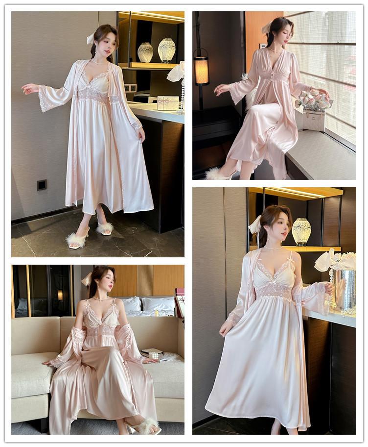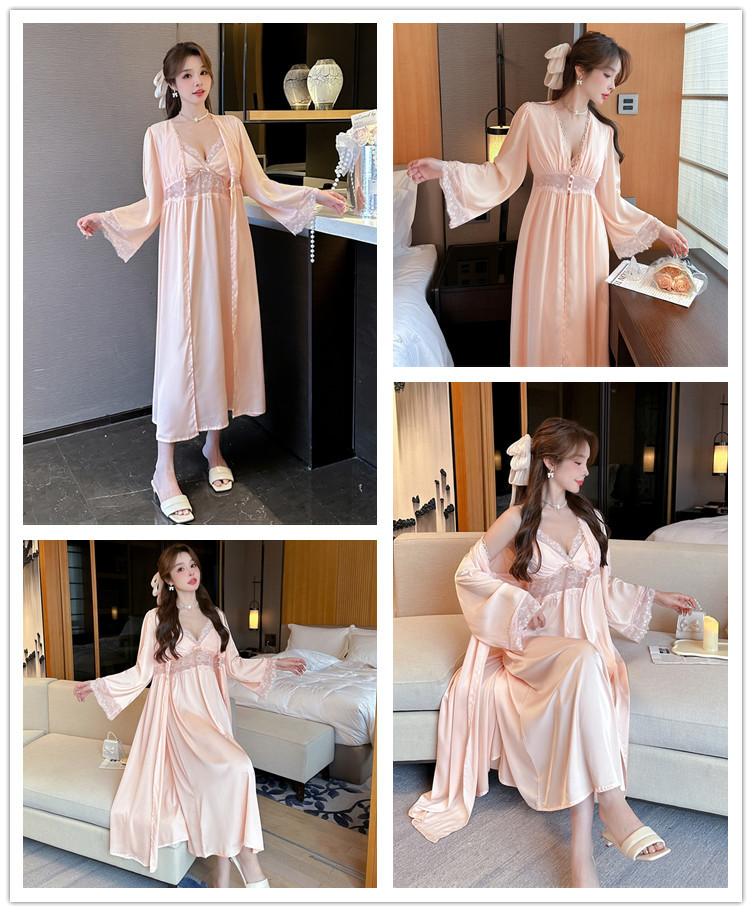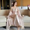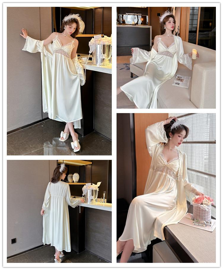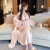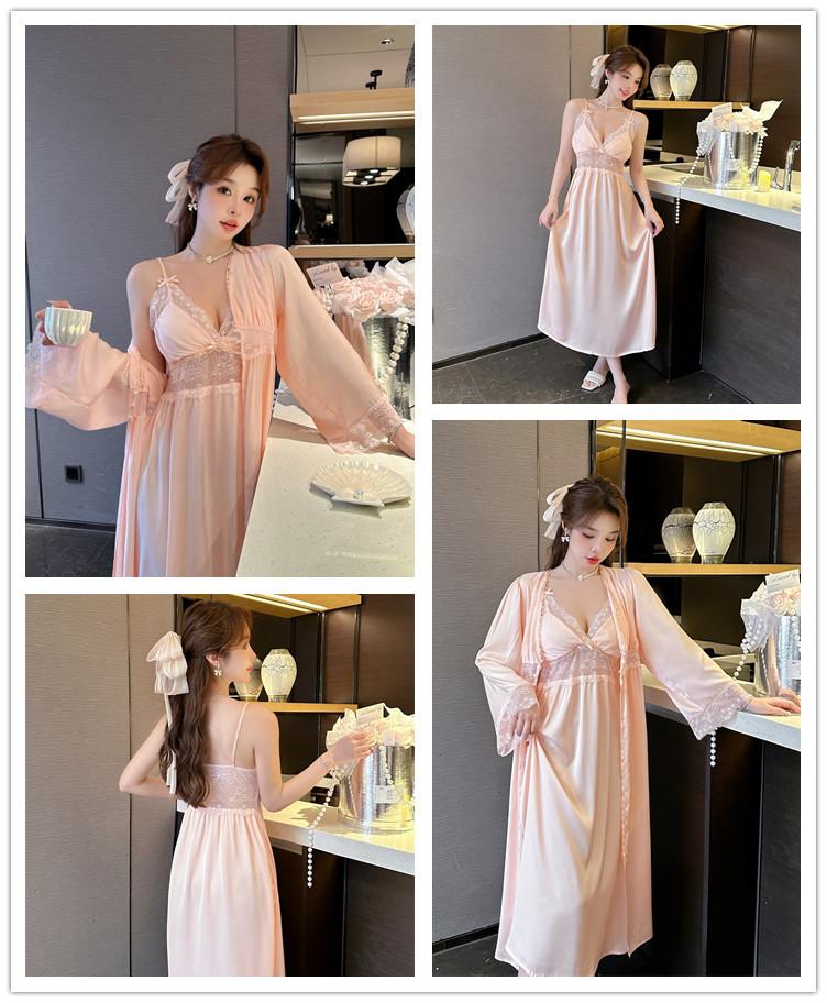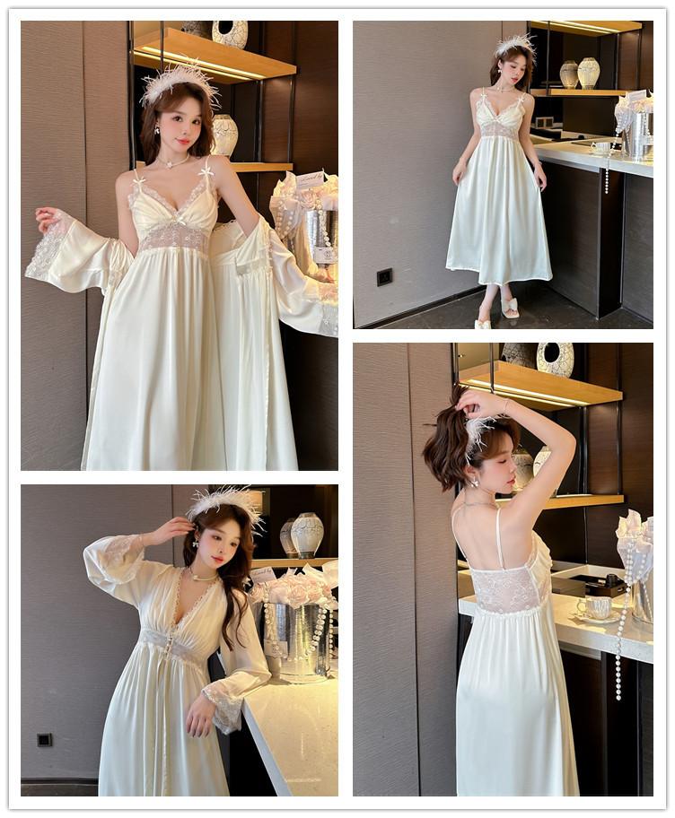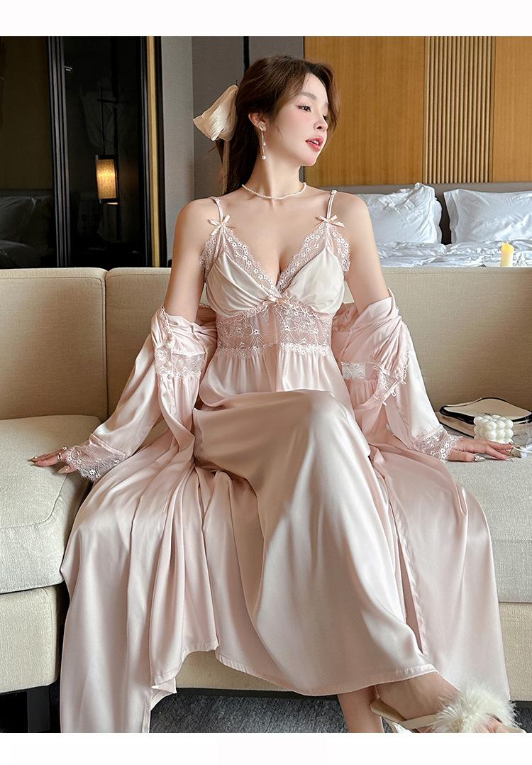 Camisón de tirantes 2024 Nuevo estilo francés Vestido largo hueco Seda de hielo para mujer sexy con almohadilla en el pecho Ropa de casa de dos piezas