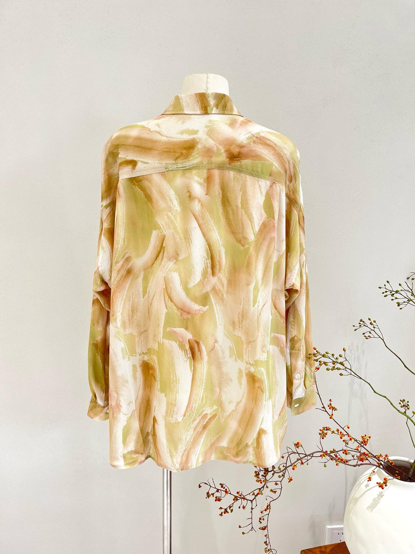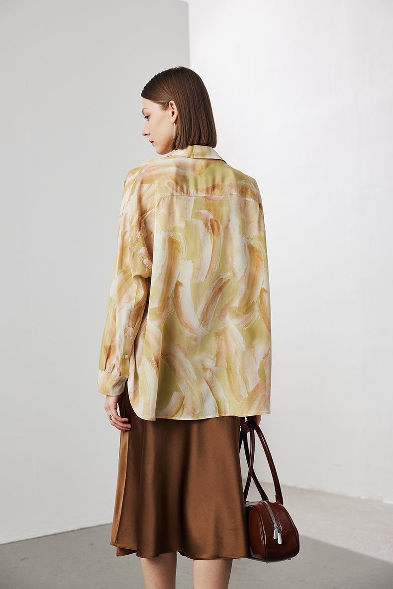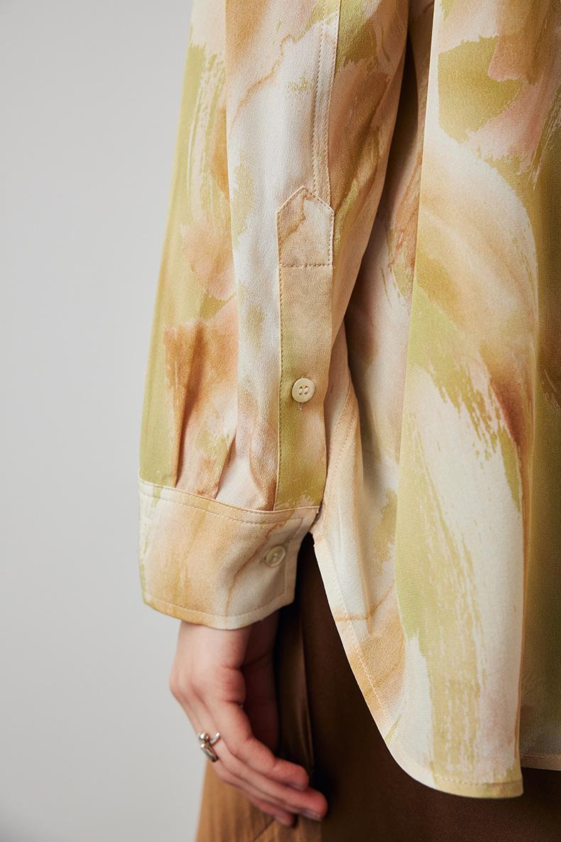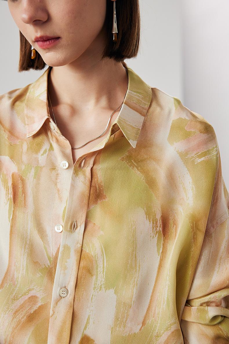Camisa de Seda para Mujer 2025 Primavera y Verano Nueva Estampada Crepé de China Oversize Casual Manga Larga Camisa 100% Seda de Morera