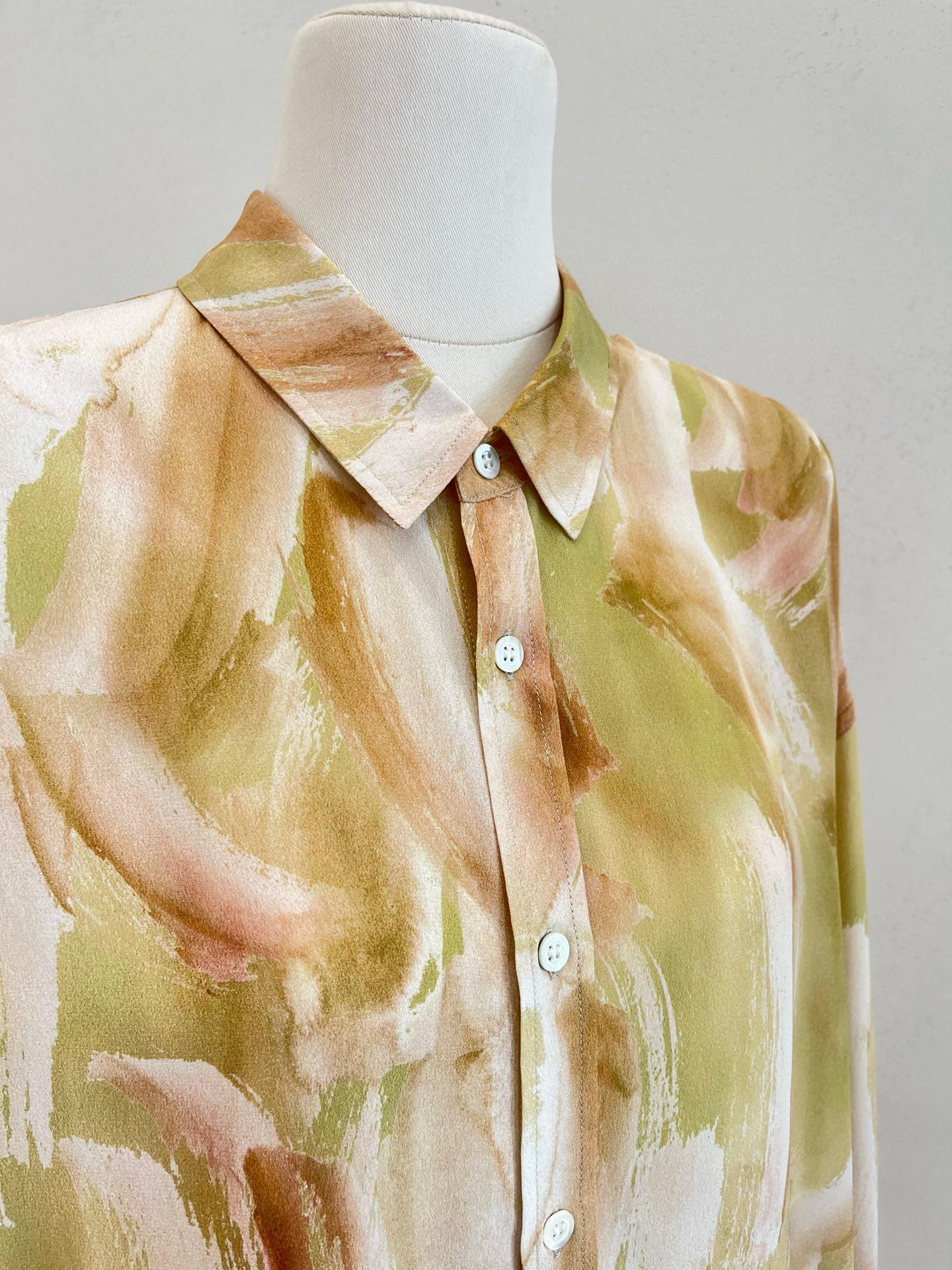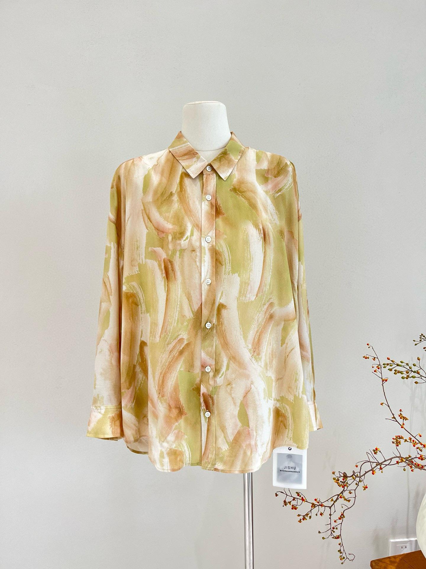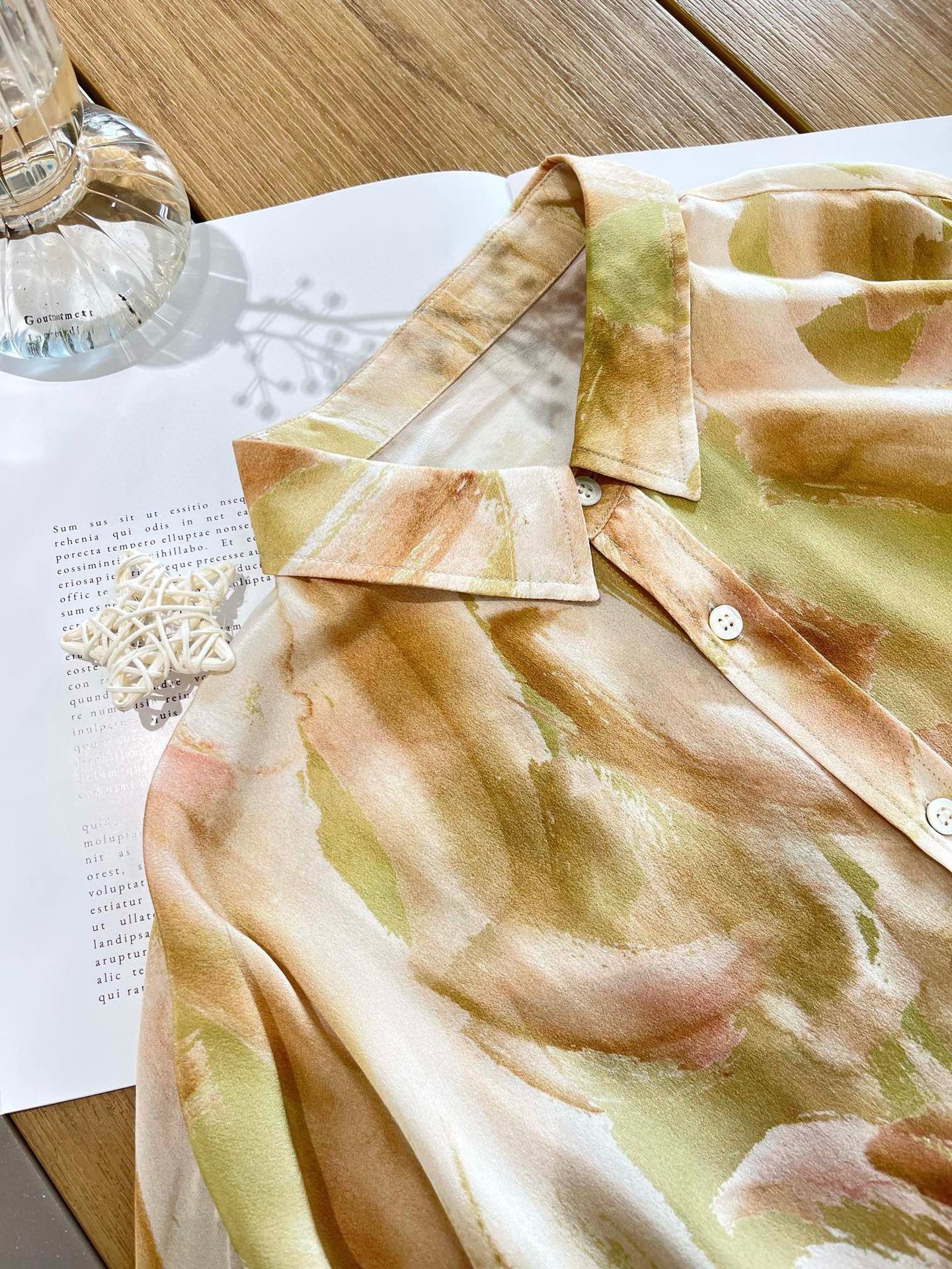 Camisa de Seda para Mujer 2025 Primavera y Verano Nueva Estampada Crepé de China Oversize Casual Manga Larga Camisa 100% Seda de Morera