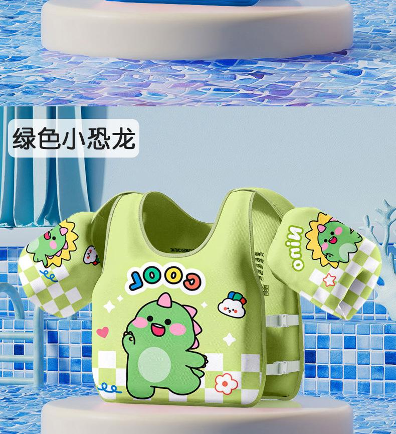 Buoyancy vest-green dinosaur [upgrade thickened inflatable adjustable for 10.00 kg-38.50 kg]]