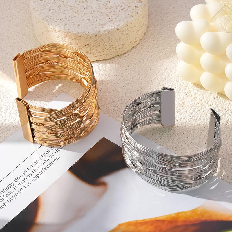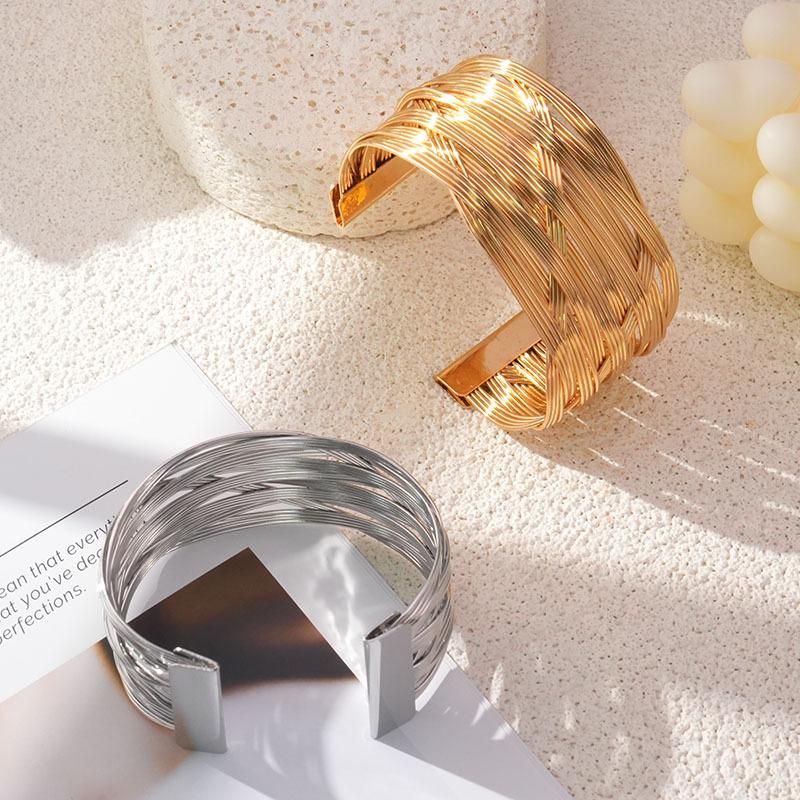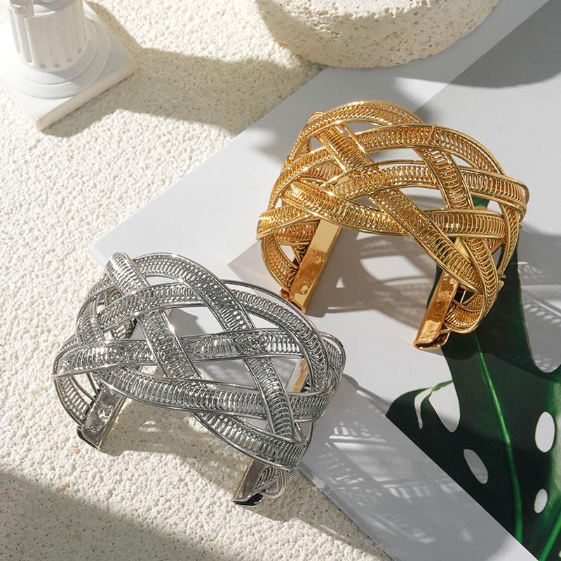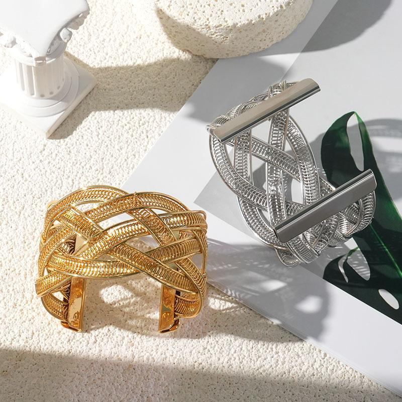 Pulsera Trenzada Cruzada Europea y Americana para Mujer, Pulsera Moderna y de Alta Gama, Pulsera Envolvente Ajustable de Primavera