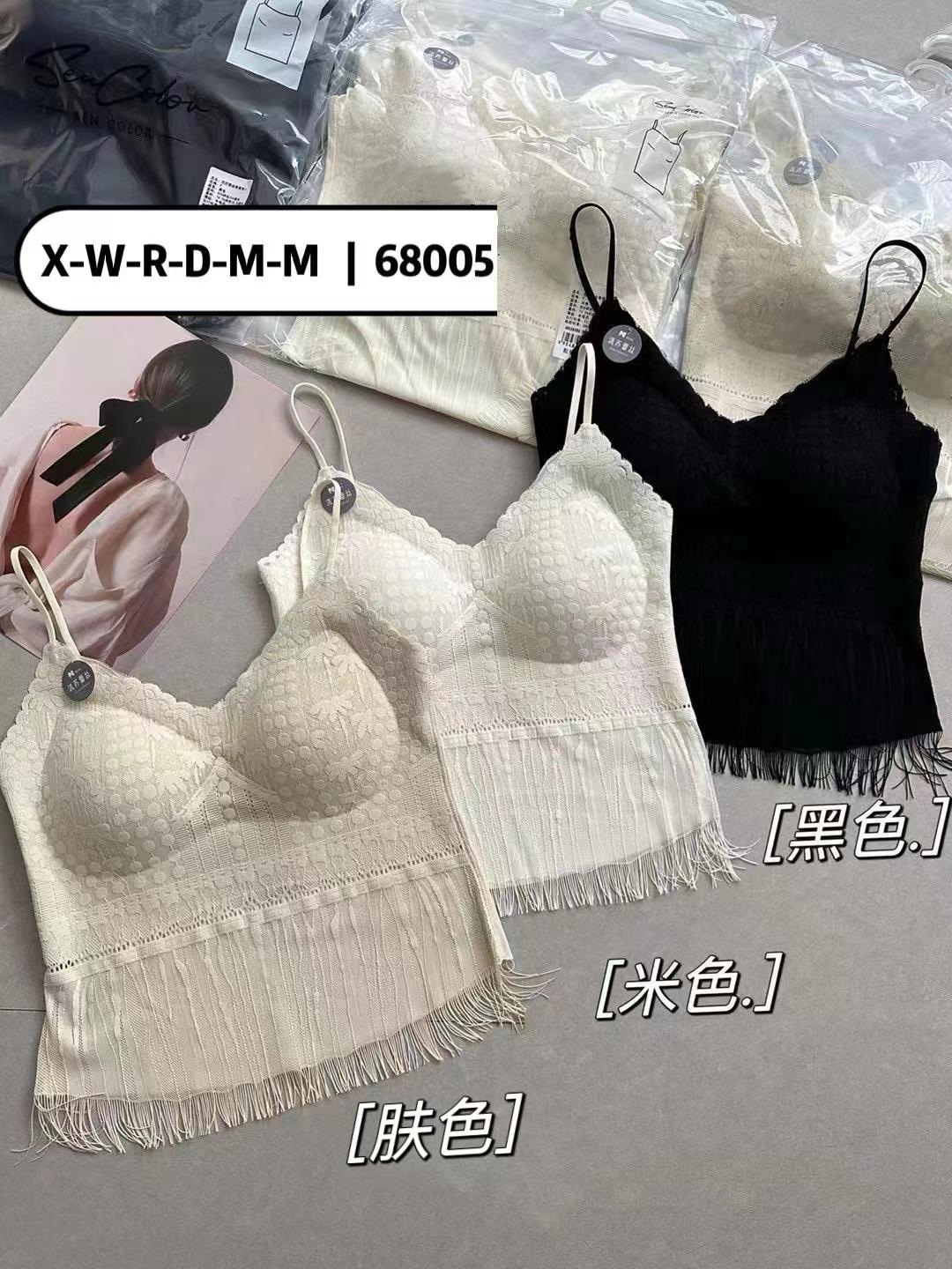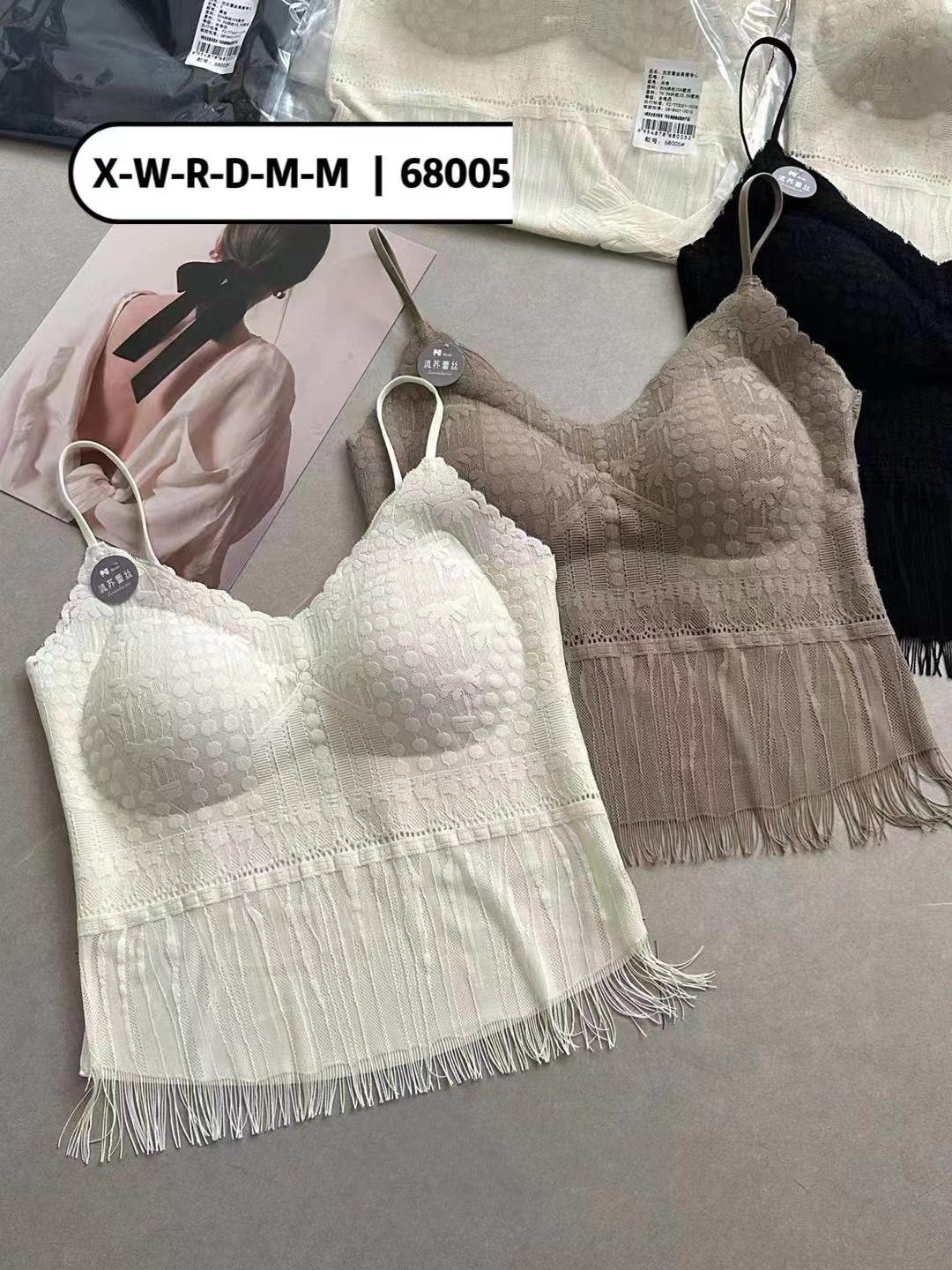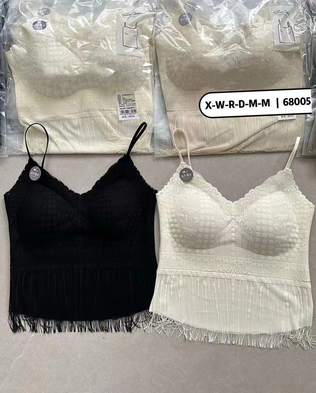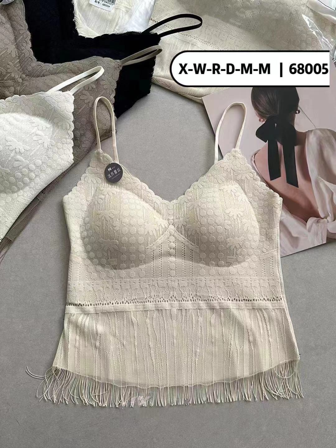 Chaleco reductor sin sujetador con borlas para mujer, top sexy con tirantes de color liso y estampado de lunares con almohadilla para el pecho, 68005