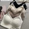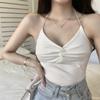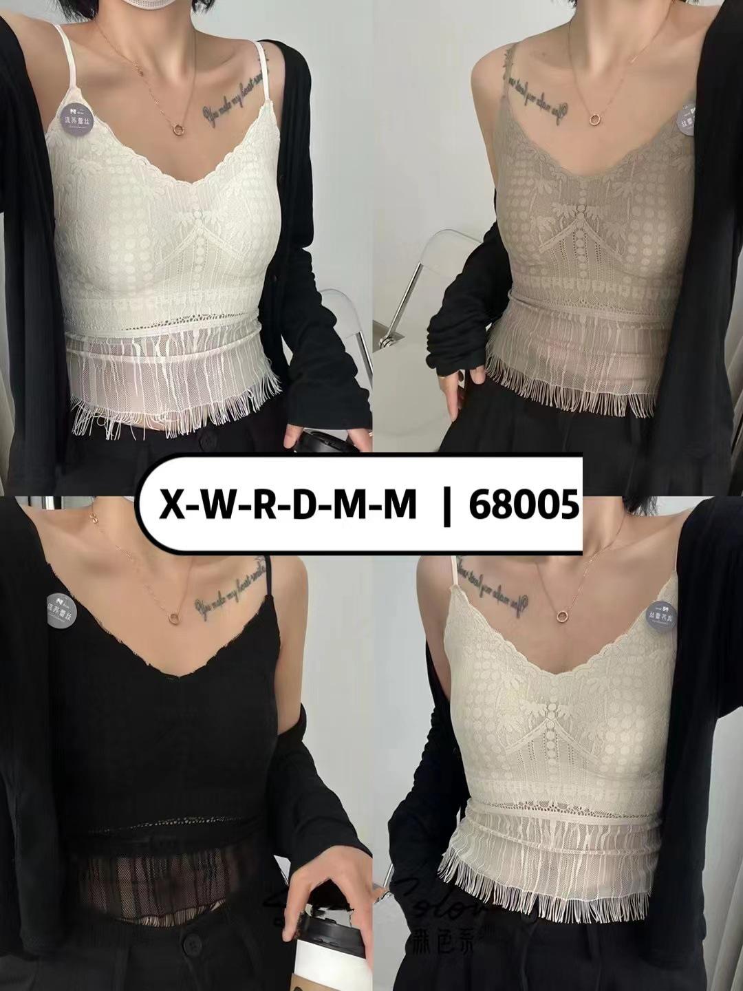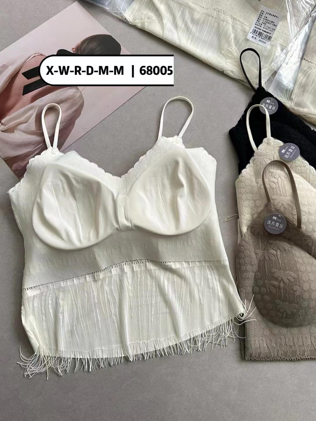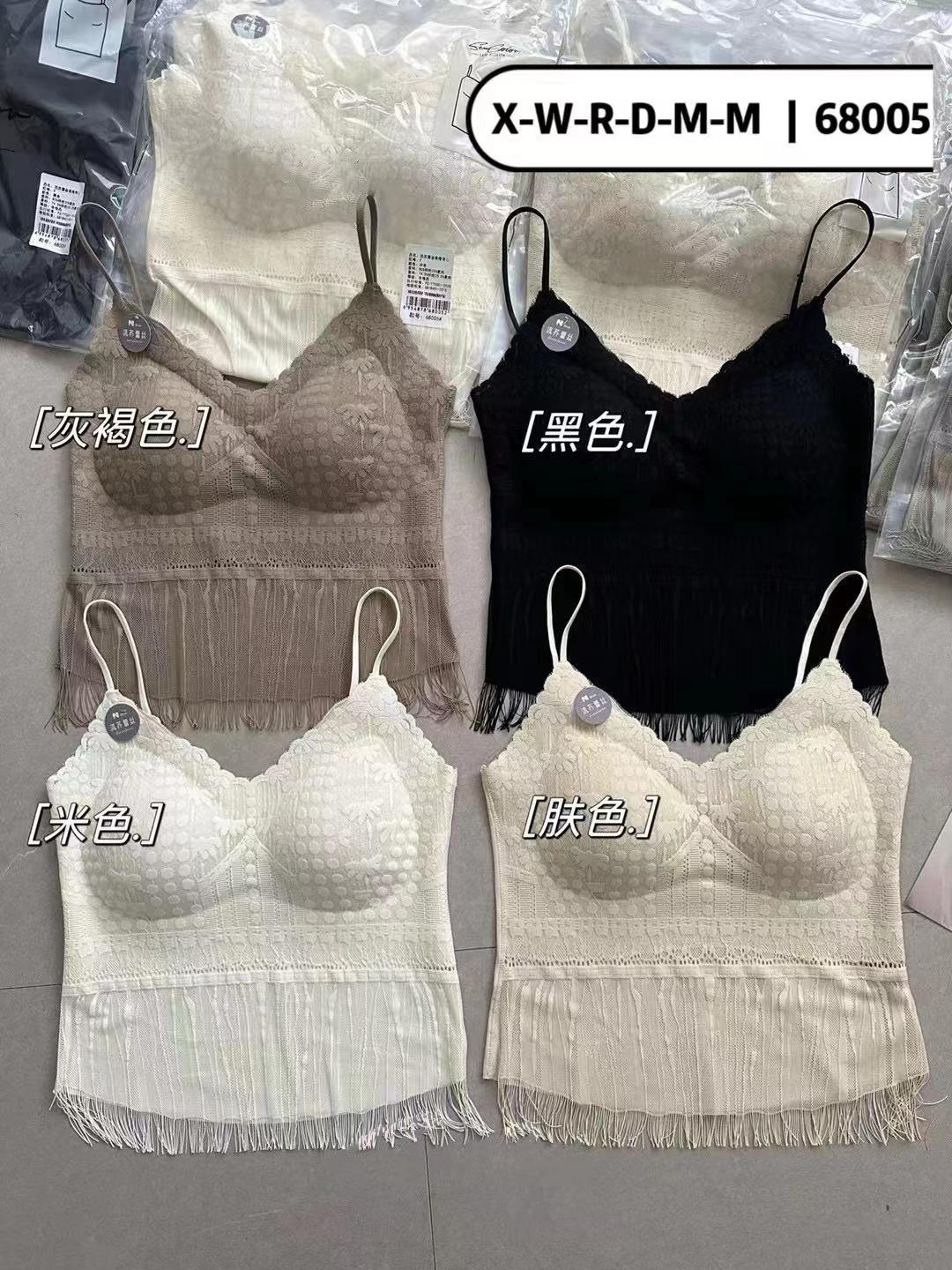 Chaleco reductor sin sujetador con borlas para mujer, top sexy con tirantes de color liso y estampado de lunares con almohadilla para el pecho, 68005