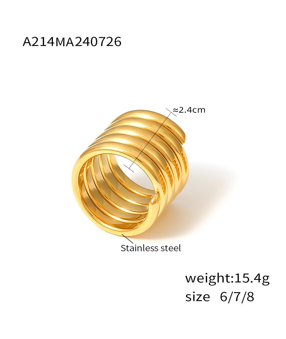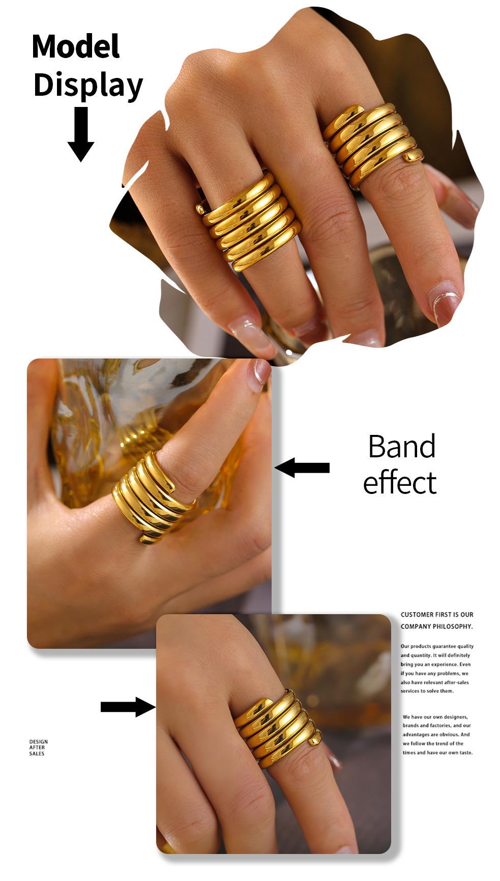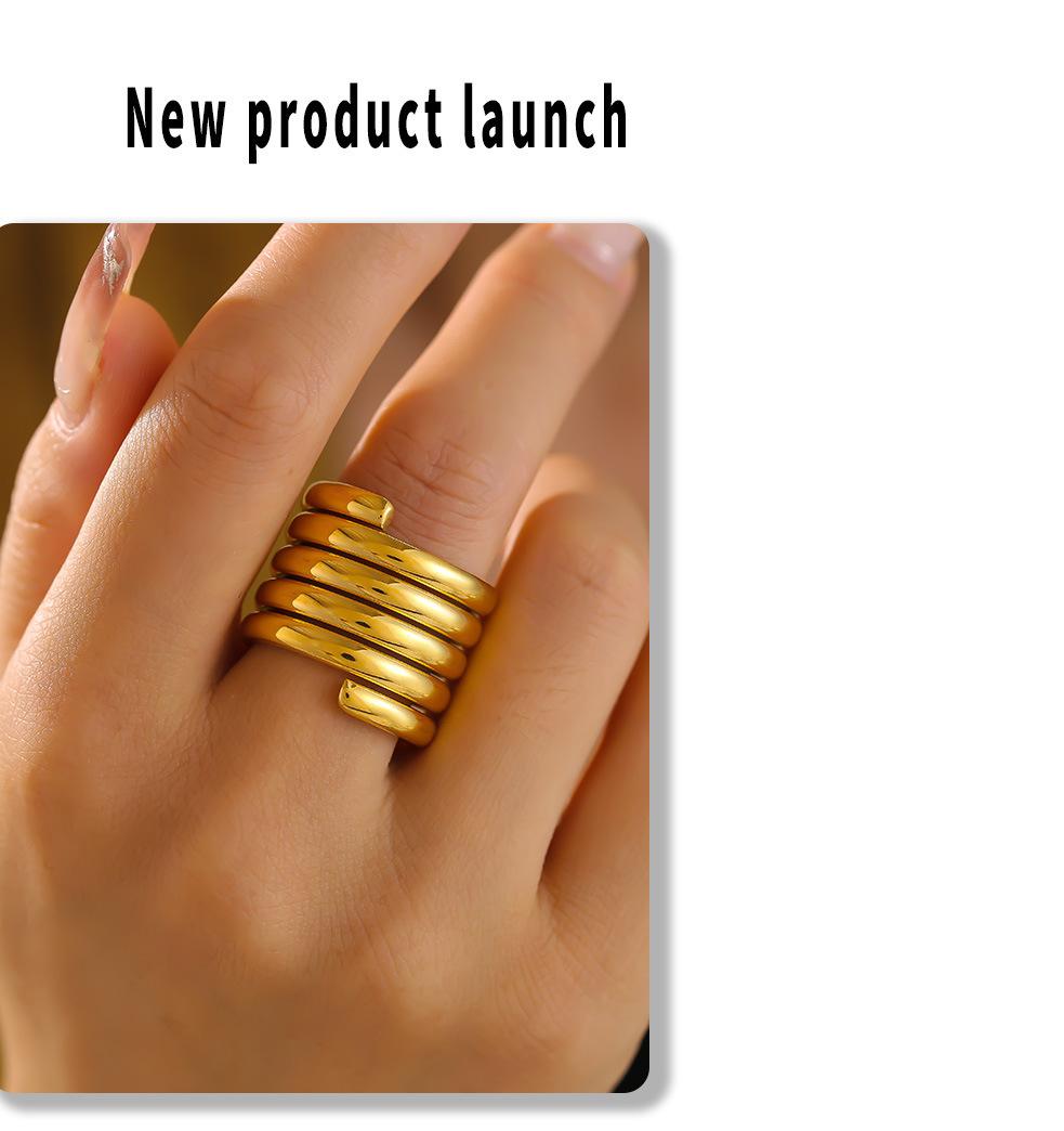 Anillo ancho multicapa con diseño de nicho transfronterizo europeo y americano, ligero y texturizado, chapado en oro de 18 quilates para mujer.