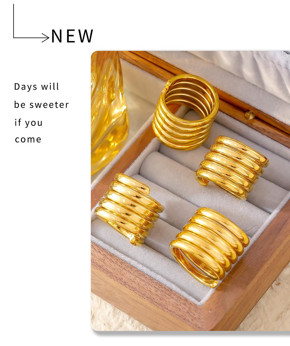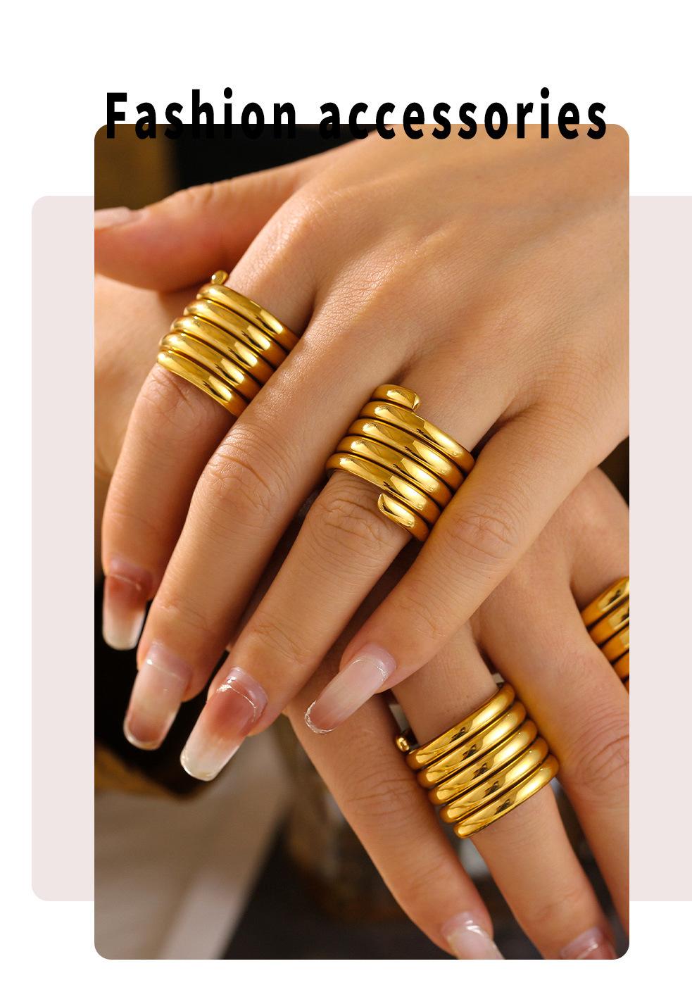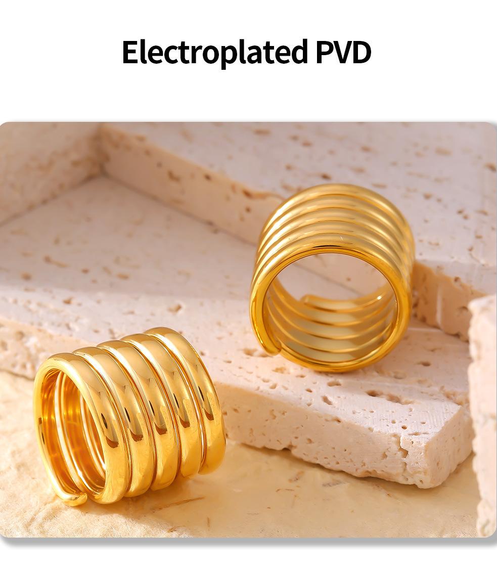 Anillo ancho multicapa con diseño de nicho transfronterizo europeo y americano, ligero y texturizado, chapado en oro de 18 quilates para mujer.