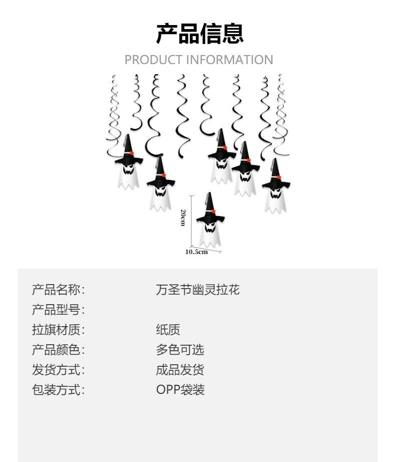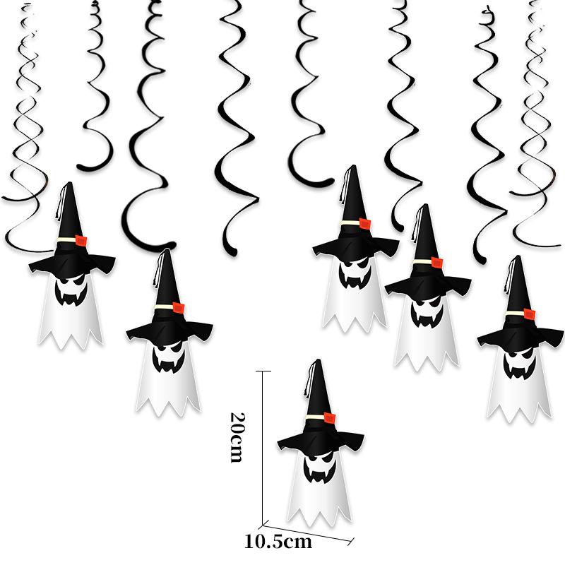 Colgante de pared con diseño de flores de Halloween de Amazon, decoración de terror, festival fantasma, bandera de bruja, colgante en espiral, venta al por mayor