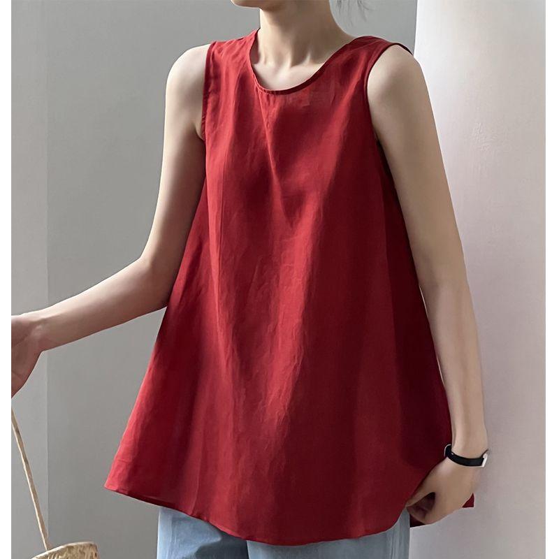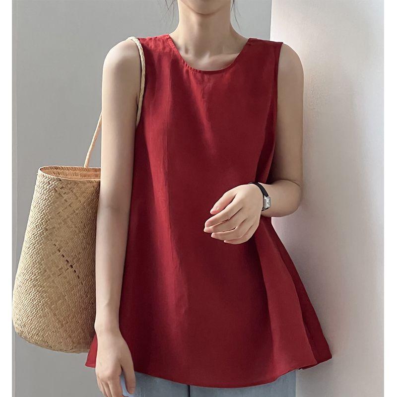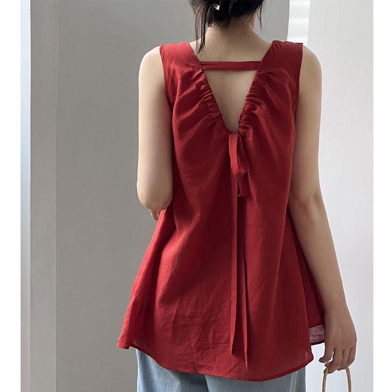 Compra Camisa Coreana con Cordones y Cuello en V para Mujer Verano 2023 Niche Francés Sin Mangas Top Rojo Camisa Estilo Occidental al por mayor en Joom.pro