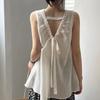Camisa Coreana con Cordones y Cuello en V para Mujer Verano 2023 Niche Francés Sin Mangas Top Rojo Camisa Estilo Occidental