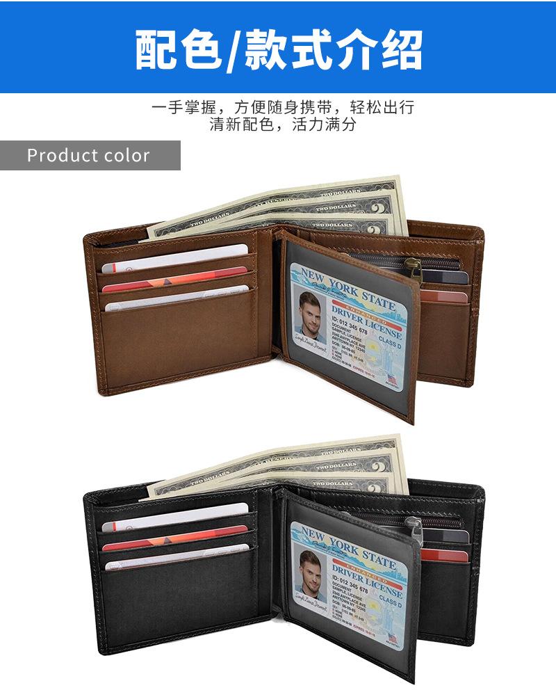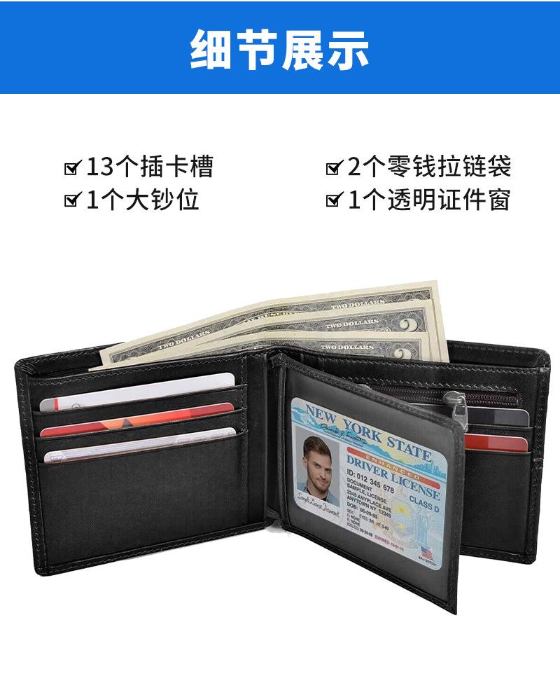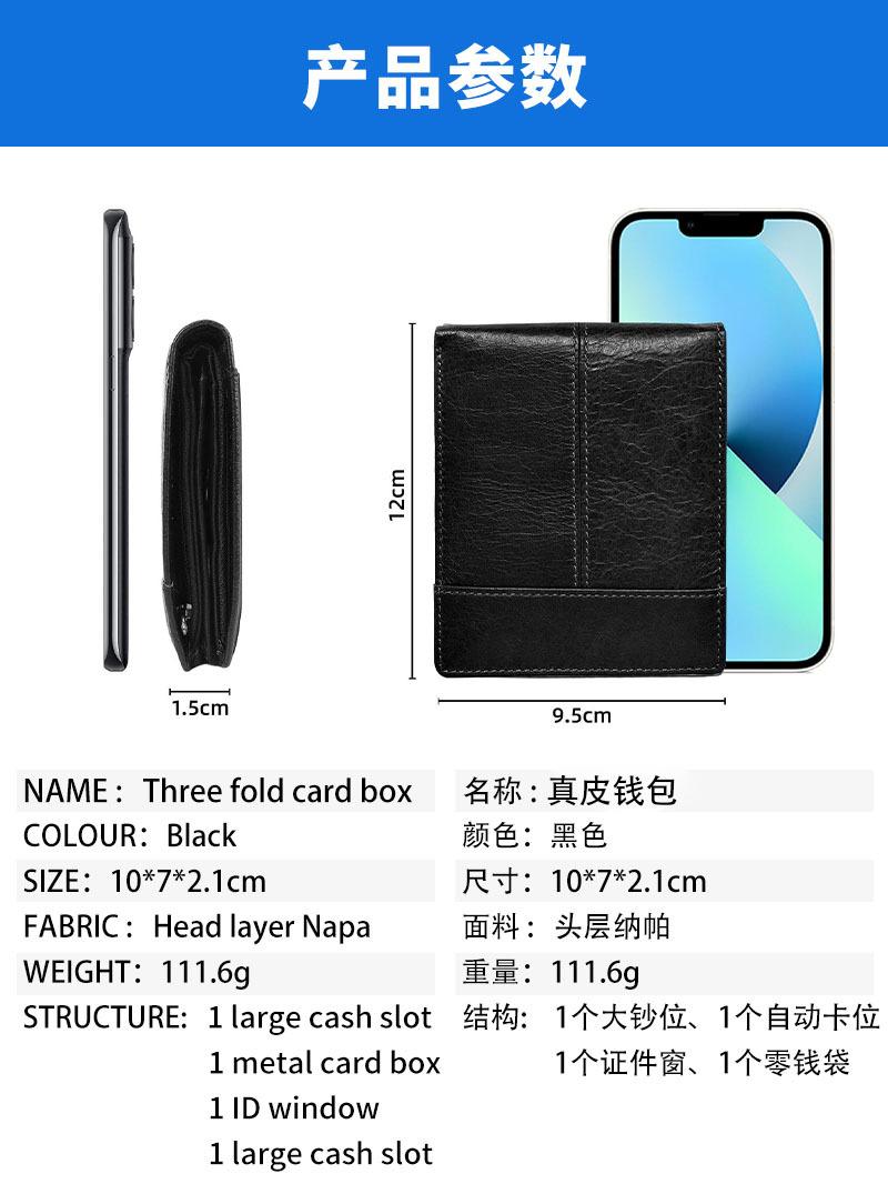 Billetera Multiranura Transfronteriza de Piel de Vacuno de Primera Capa para Hombre Antirrobo RFID Monedero Corto Bifold de Cuero Genuino