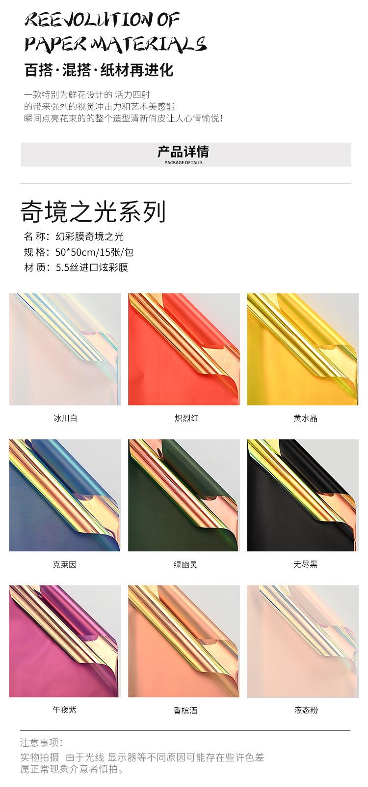 | 1 | Luz de las MaravillasPelícula mágica | 50*50CM/15 hojas | 10 | Bolsa | 100 | 1000 |